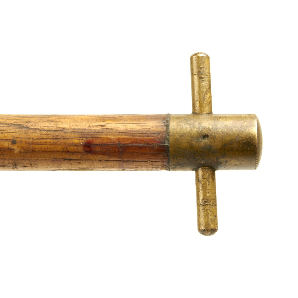 Original Item: These are original WWII era 60mm mortar wood cleaning rods with slotted brass ends for attaching a bore mop. Officially designated "Staff, Cleaning, M9" for the "60 m/m mortar M-2". There are also drill teeth on the end of the rod for removing debris or a bore mop that had gotten stuck.