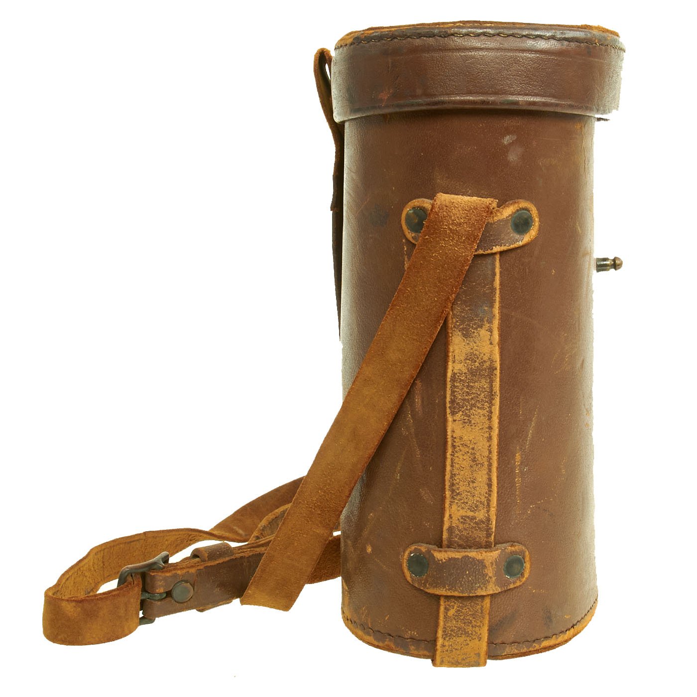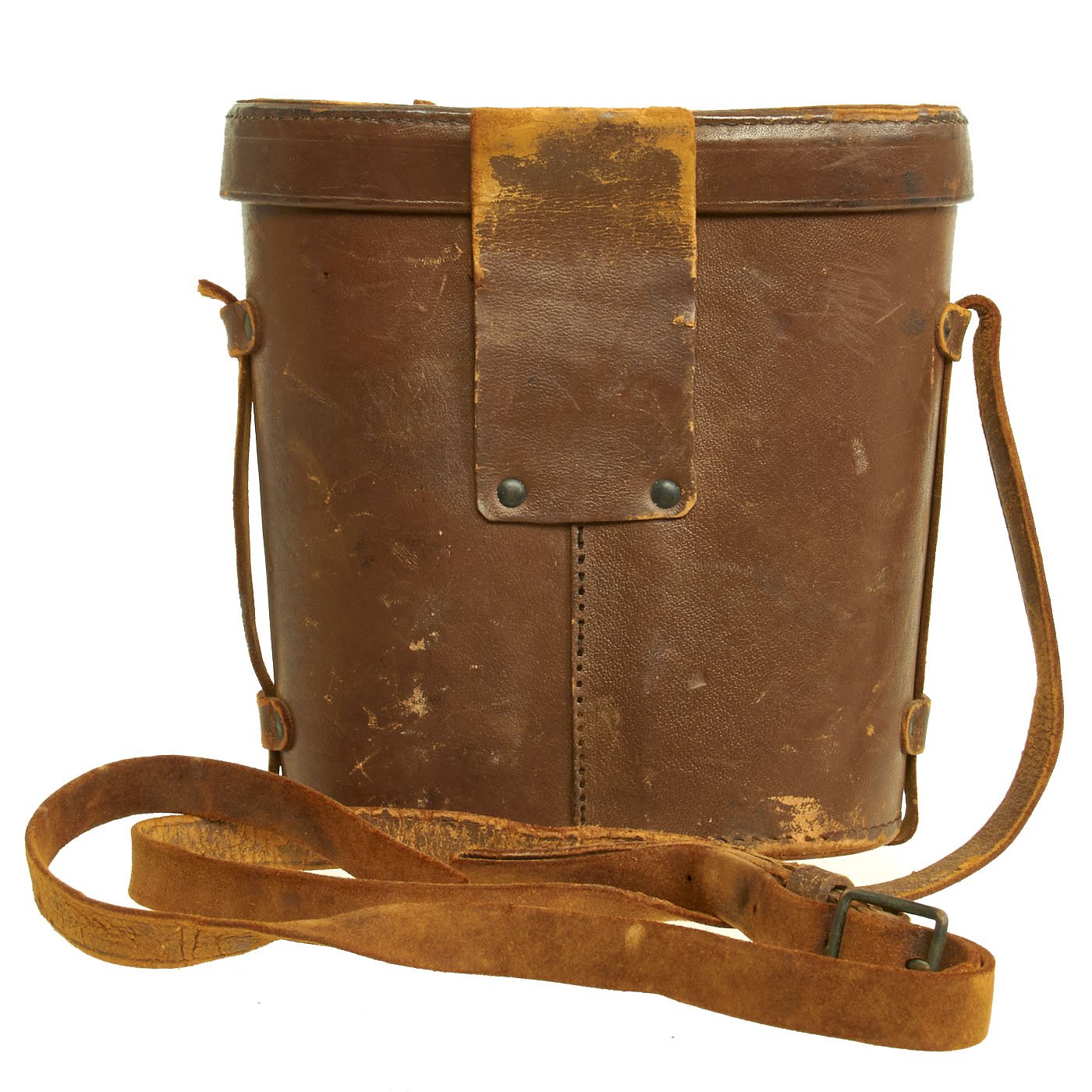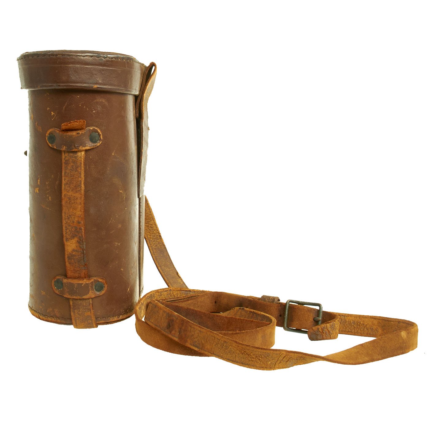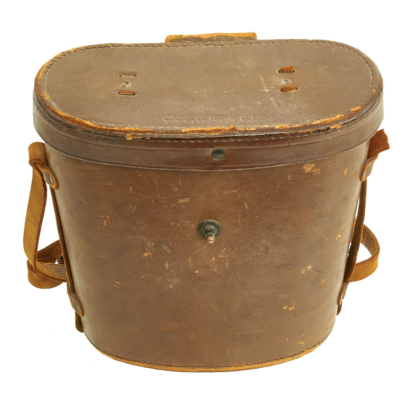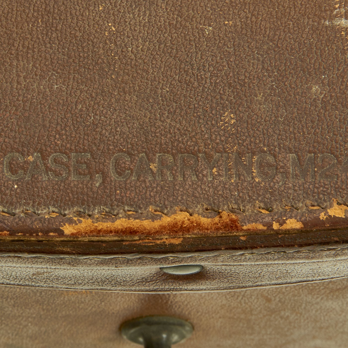 The included leather covered case is marked CASE, CARRYING, M24 on the lid, with stock number D 45874 stamped on the side under the lid. The case is original, but definitely has condition issues. The front closure strap has torn off, and the leather "hinge" on the back has torn in some places, though it still is functional. The shoulder strap is present, but broken just above the case on one side. This is definitely a case that saw a lot of service.