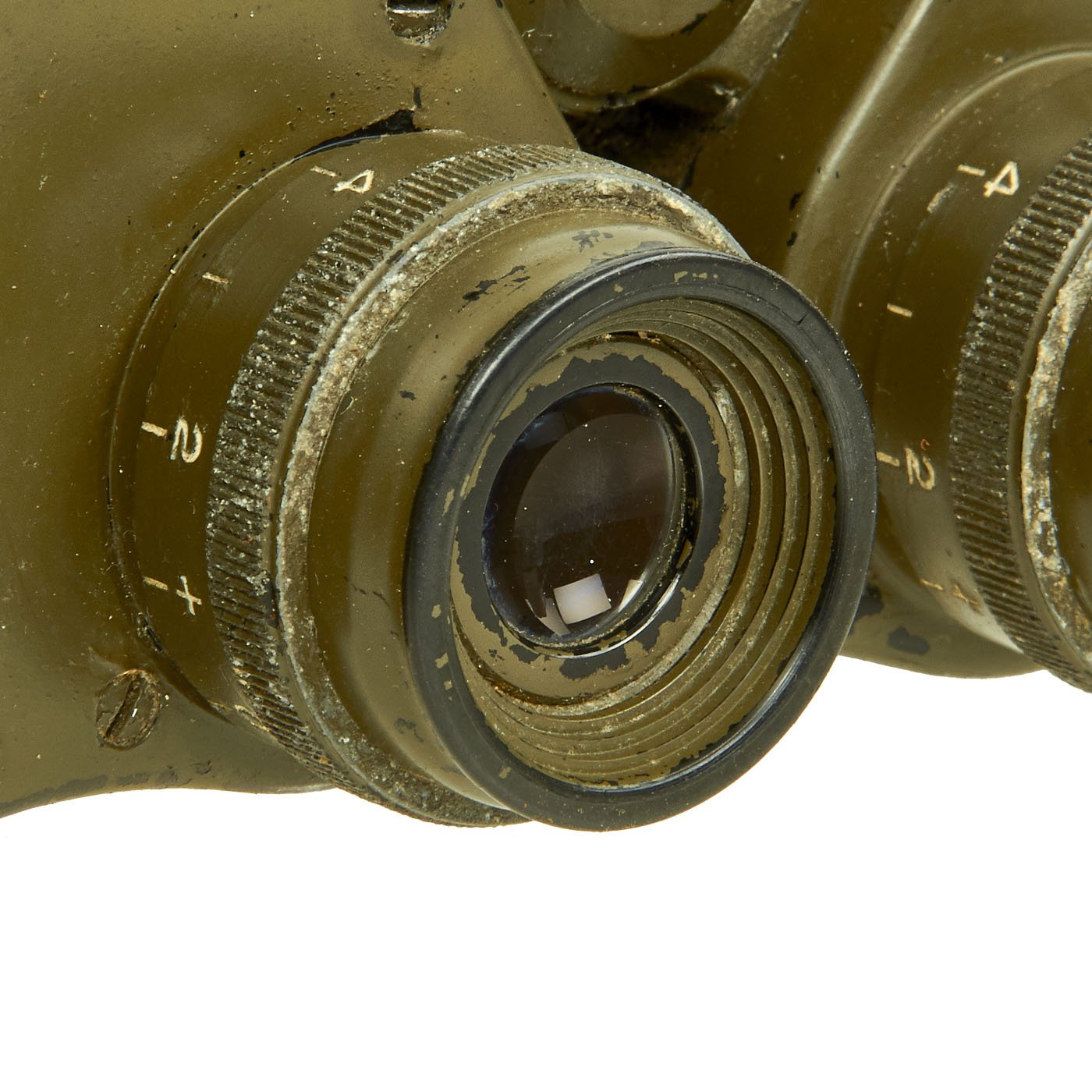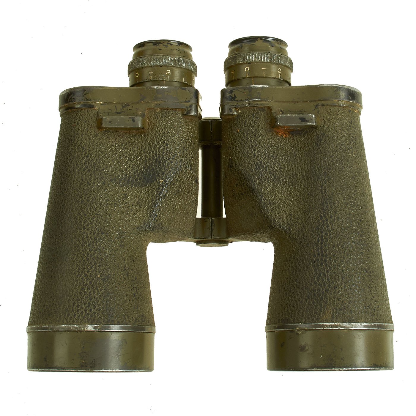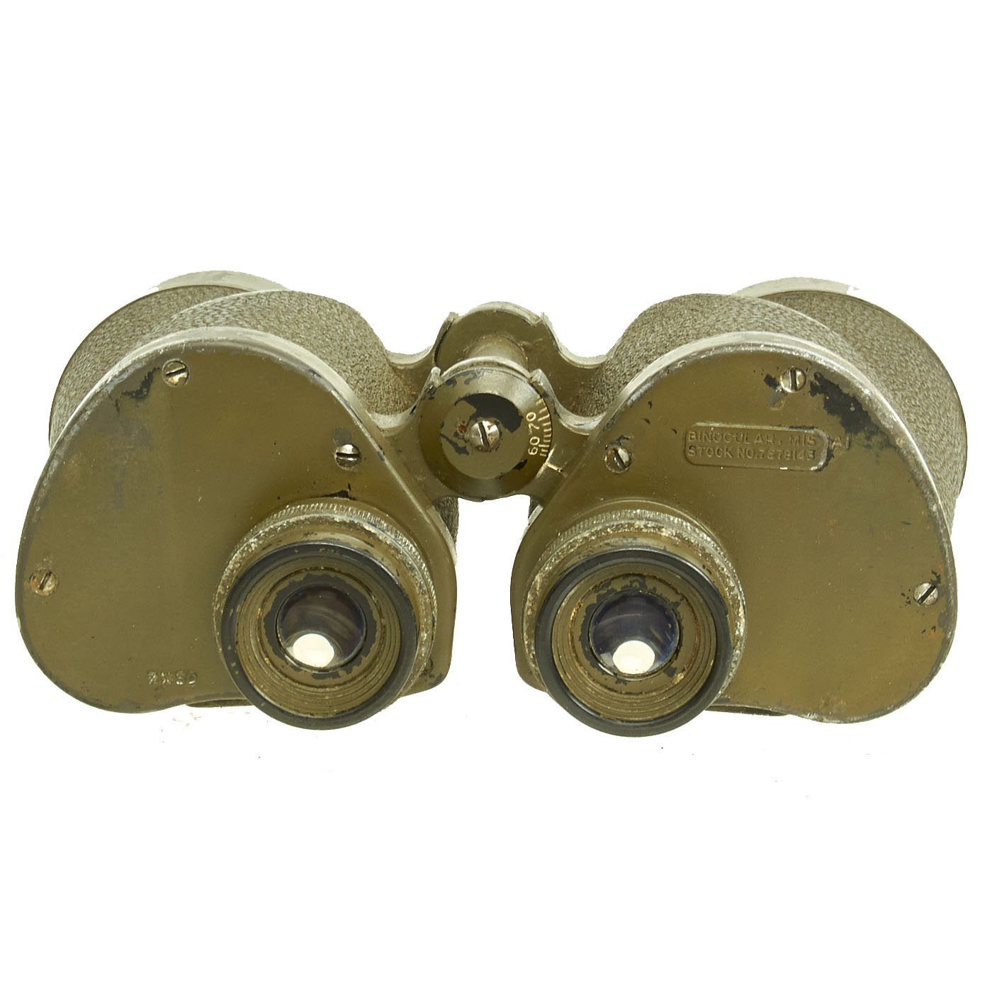 Original Item: Only One Available. This are excellent condition fully functional WWII M15 7x50 binoculars with clear optics. These were originally the standard black finish, but they were repainted during or post war with OD Green paint, for a better camouflage profile. The binoculars are nicely marked on both end plates: