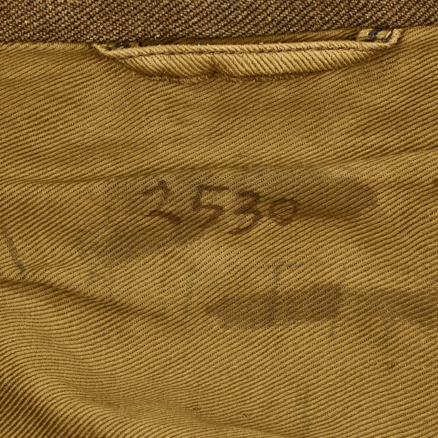 Partial Laundry Number, 2530, is written in the lining of the collar.
