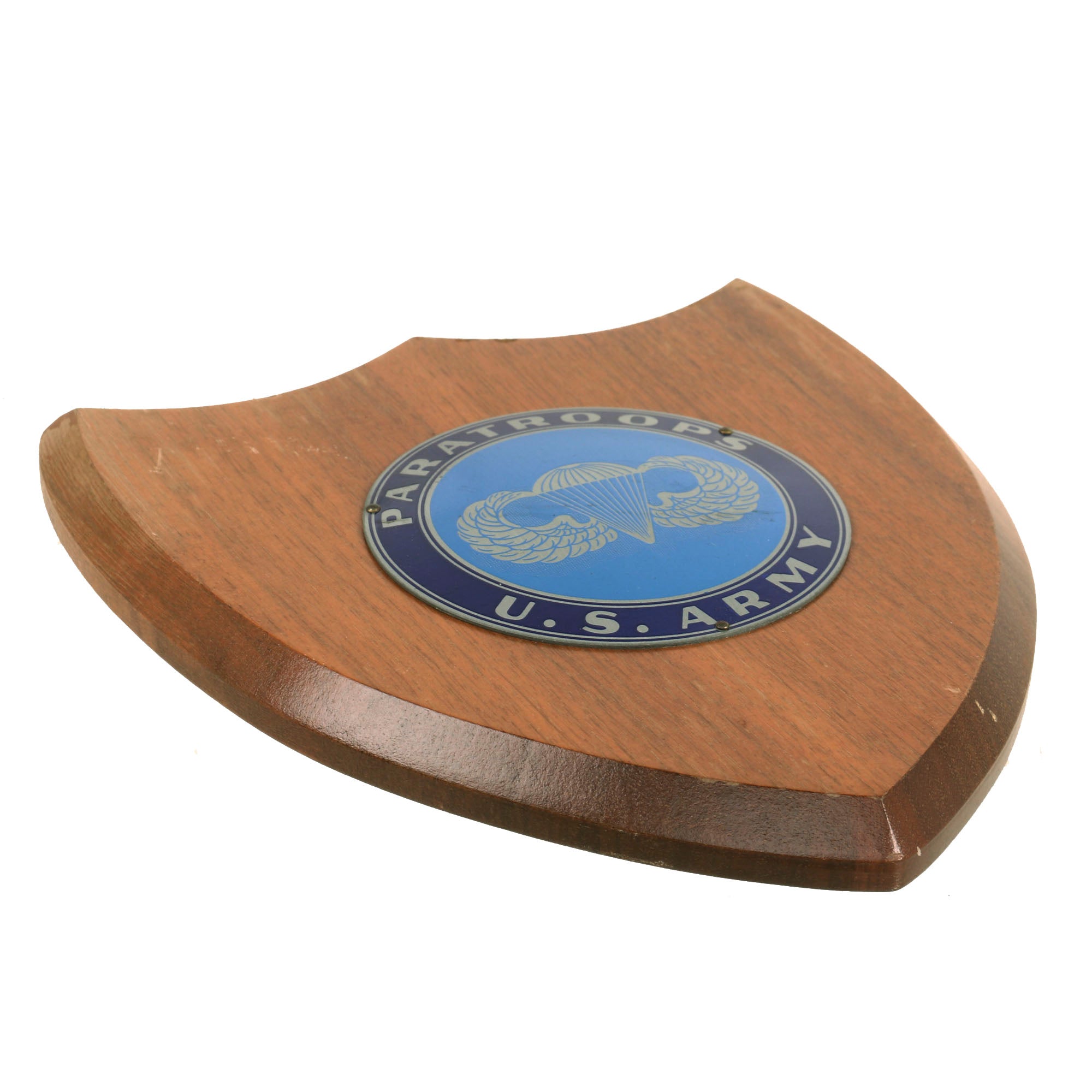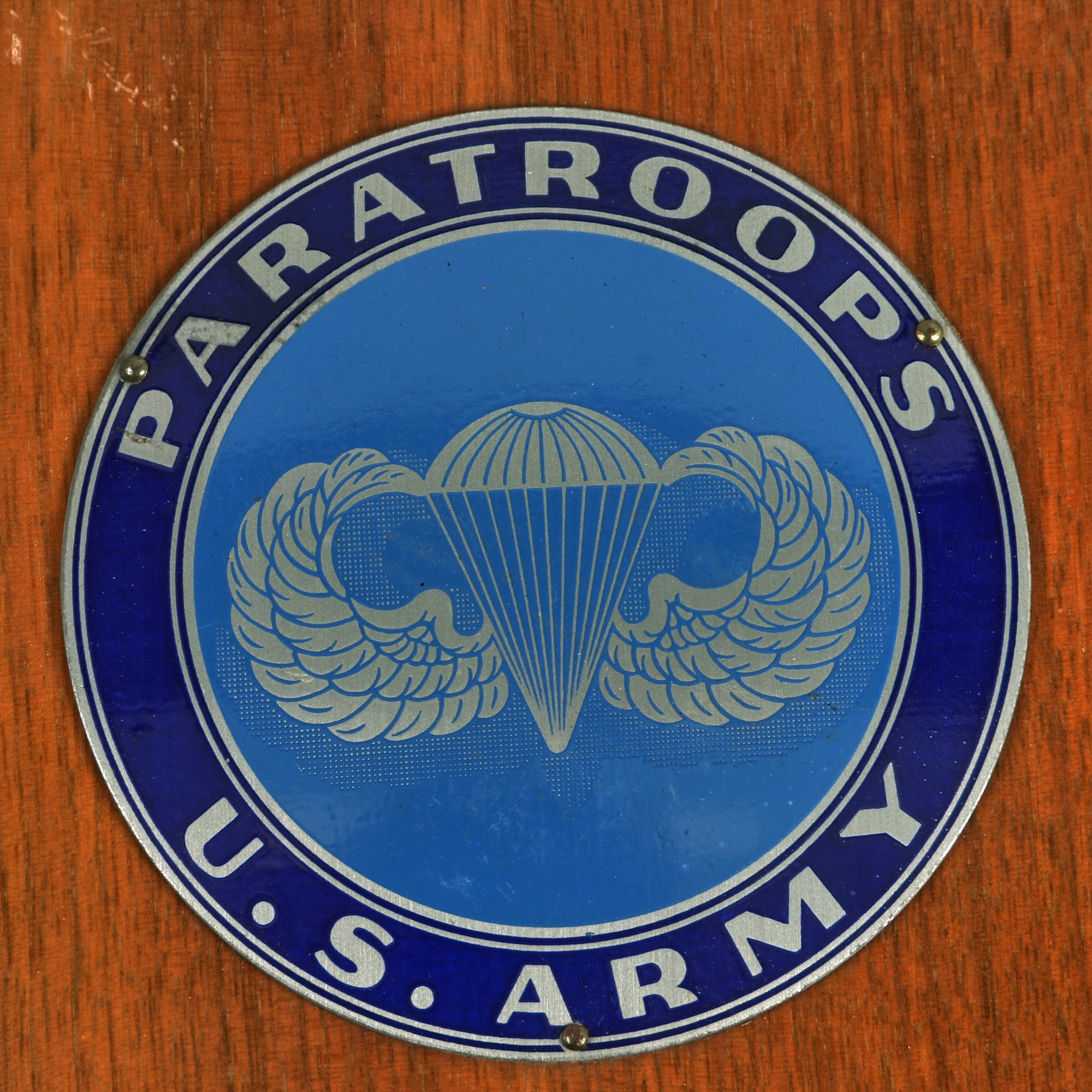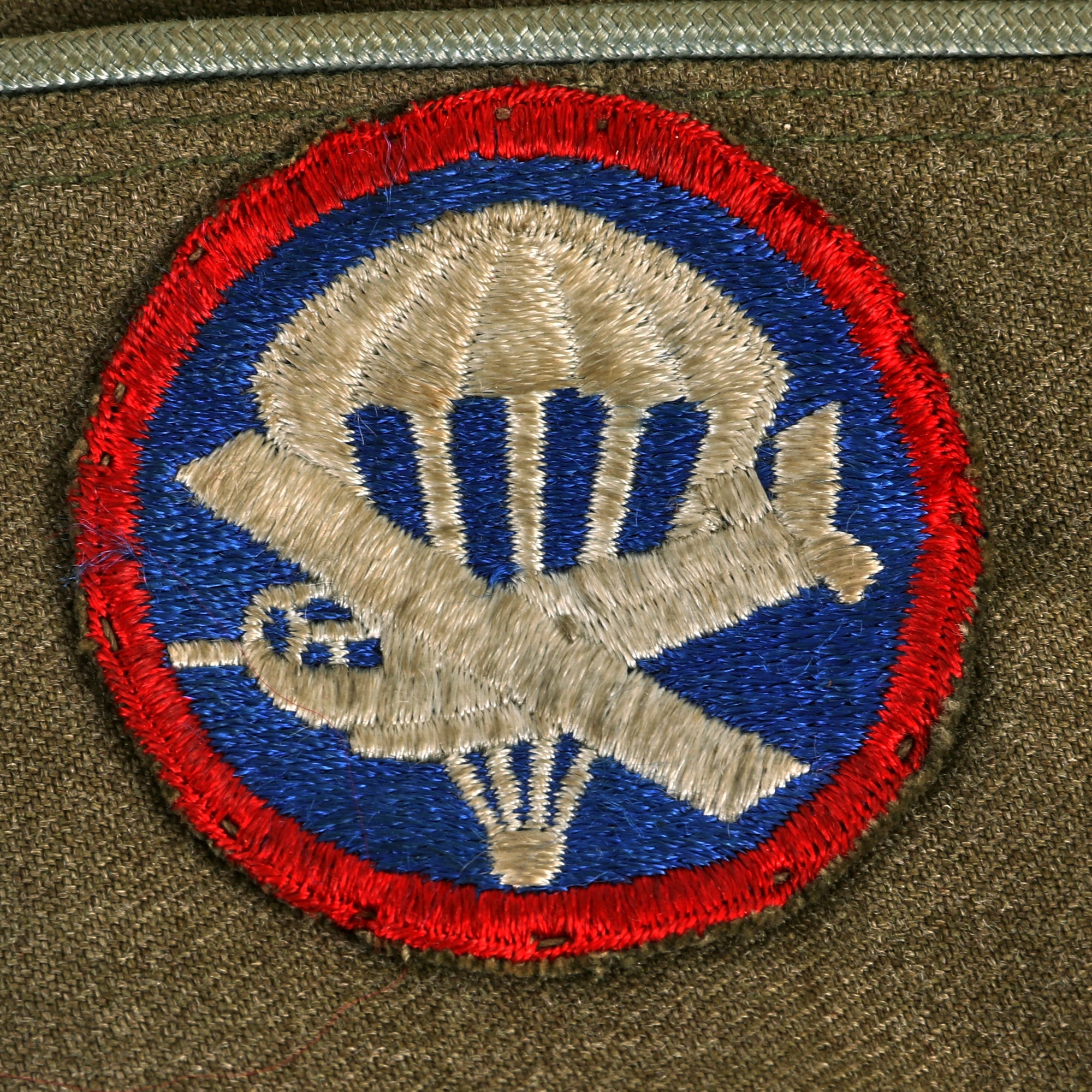 Other items in this lot are (1) overseas cap and a small PARATROOPS US ARMY plaque. The jacket is named on the back lining to JOHN M. COX / 39859932. While we were unable to find his detailed service, we were able to confirm him on the 505th Parachute Infantry Regiment, Regimental Headquarters Company and the link can be found here.