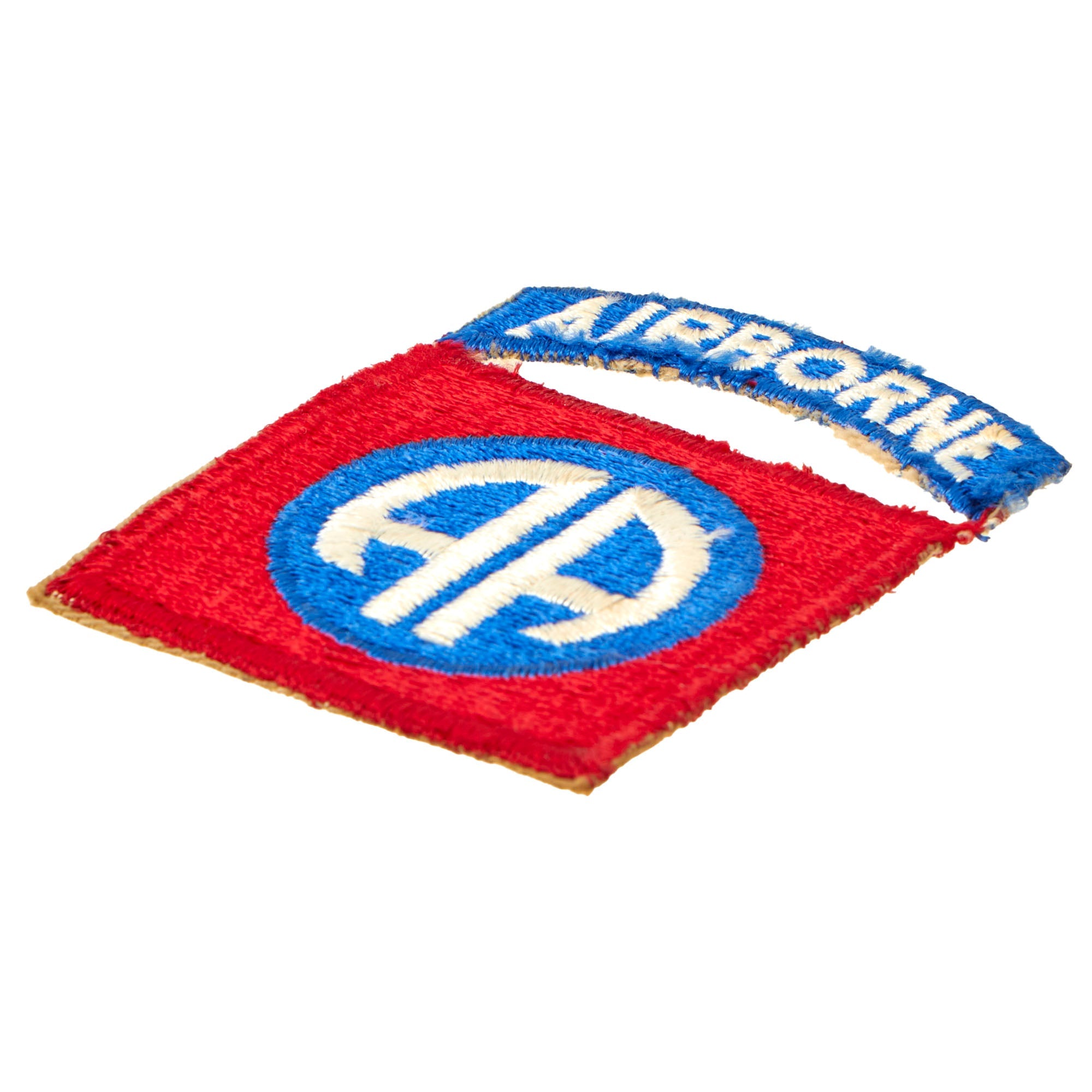 Thousands of people submitted names, but eventually, Mrs. Vivienne Goodwyn’s, “The All American Division” was selected on April 6, 1918. Vivienne felt like the Soldiers of the 82nd represented the best attributes and values of America. To pay tribute to their nickname, 82nd Soldiers began sewing the blue circle that was in the middle of their red square shoulder patch, with the double “AA” for “All American.” Originally, some thought the “AA” on the patch stood for “All Aboard”. When the patch was first authorized, full gold patches were used for officers. Eventually the patch was standardized with the red, white and blue that you can see on this example.