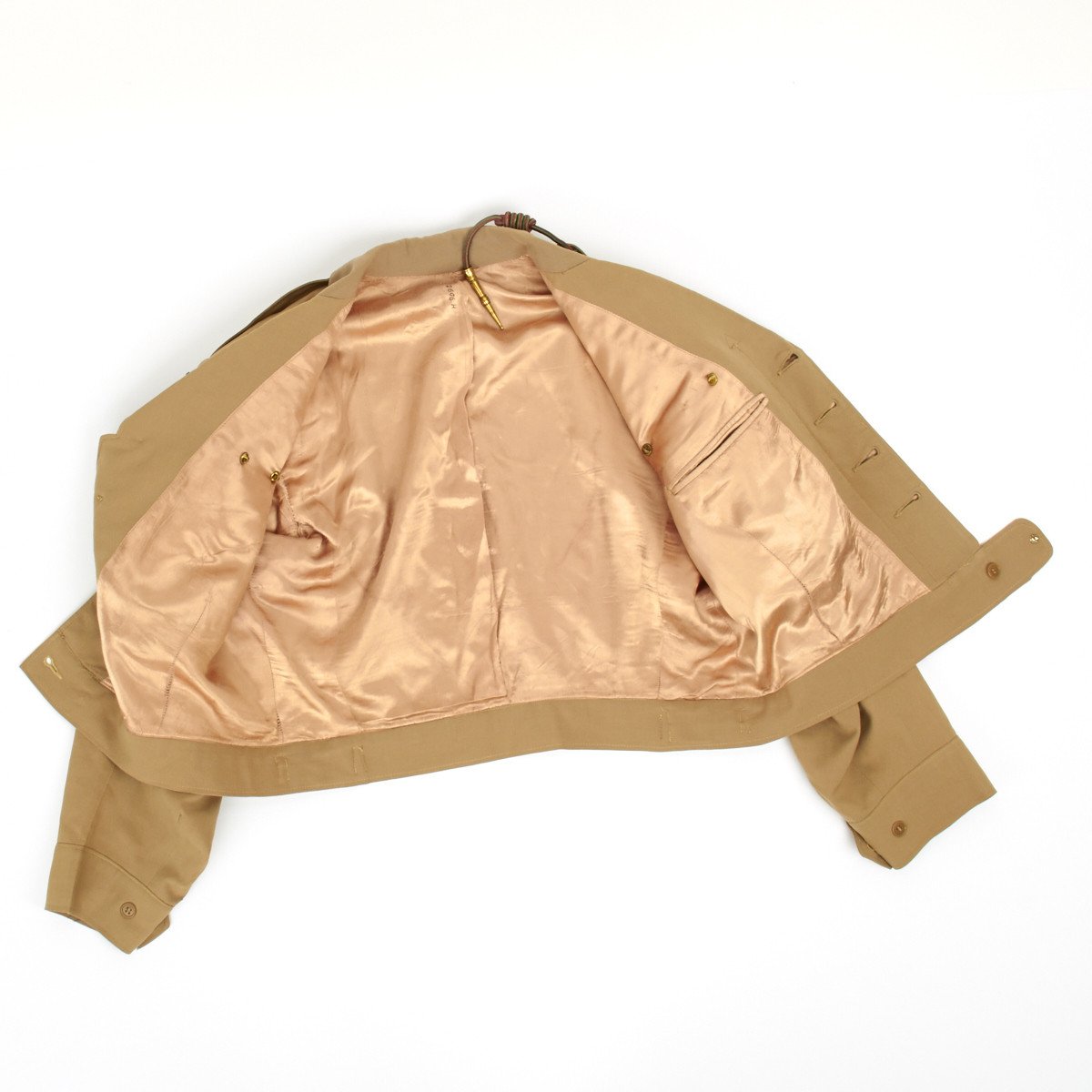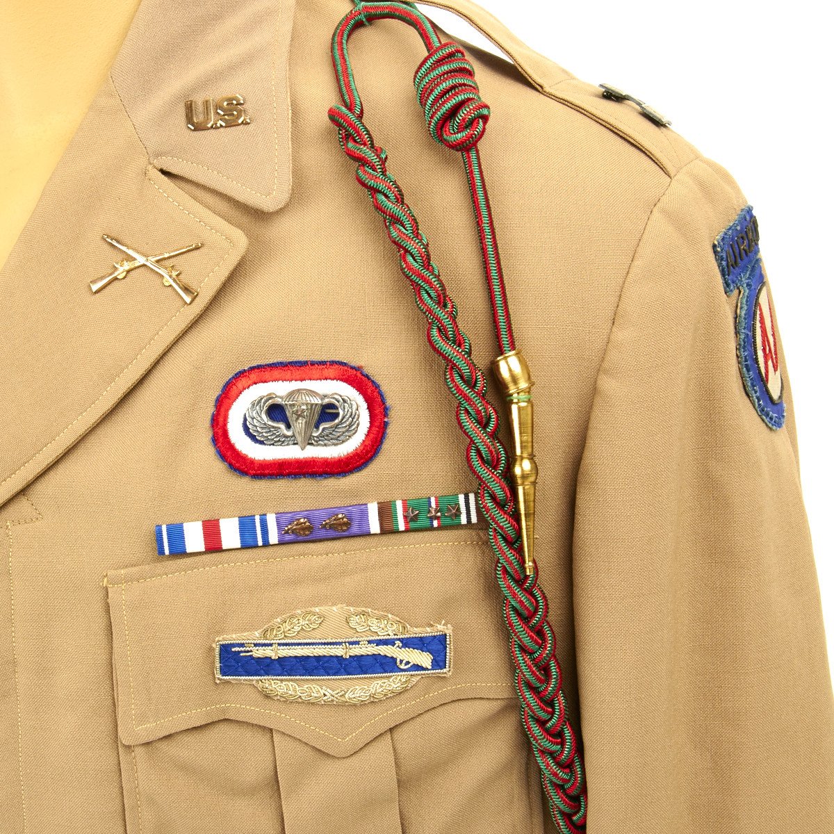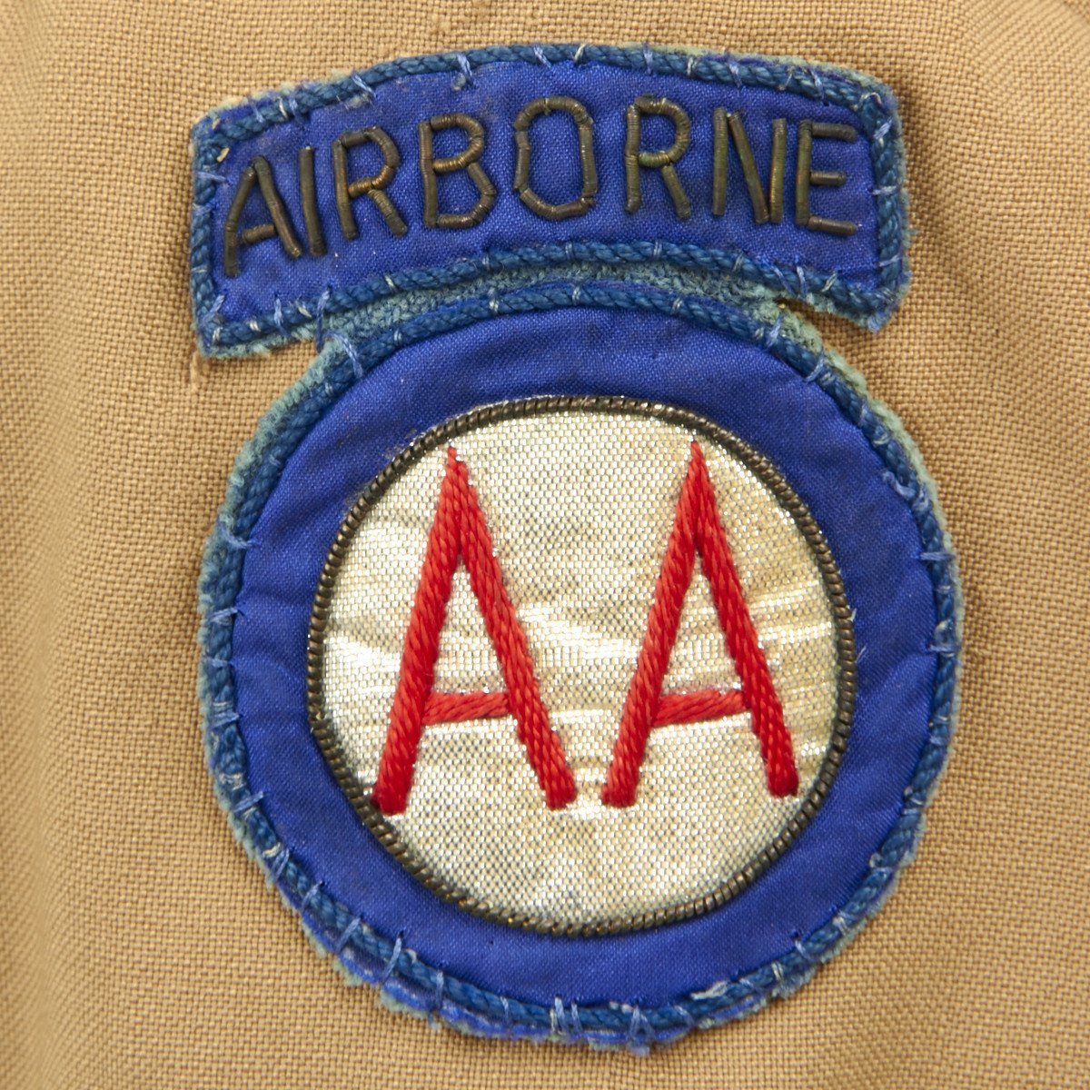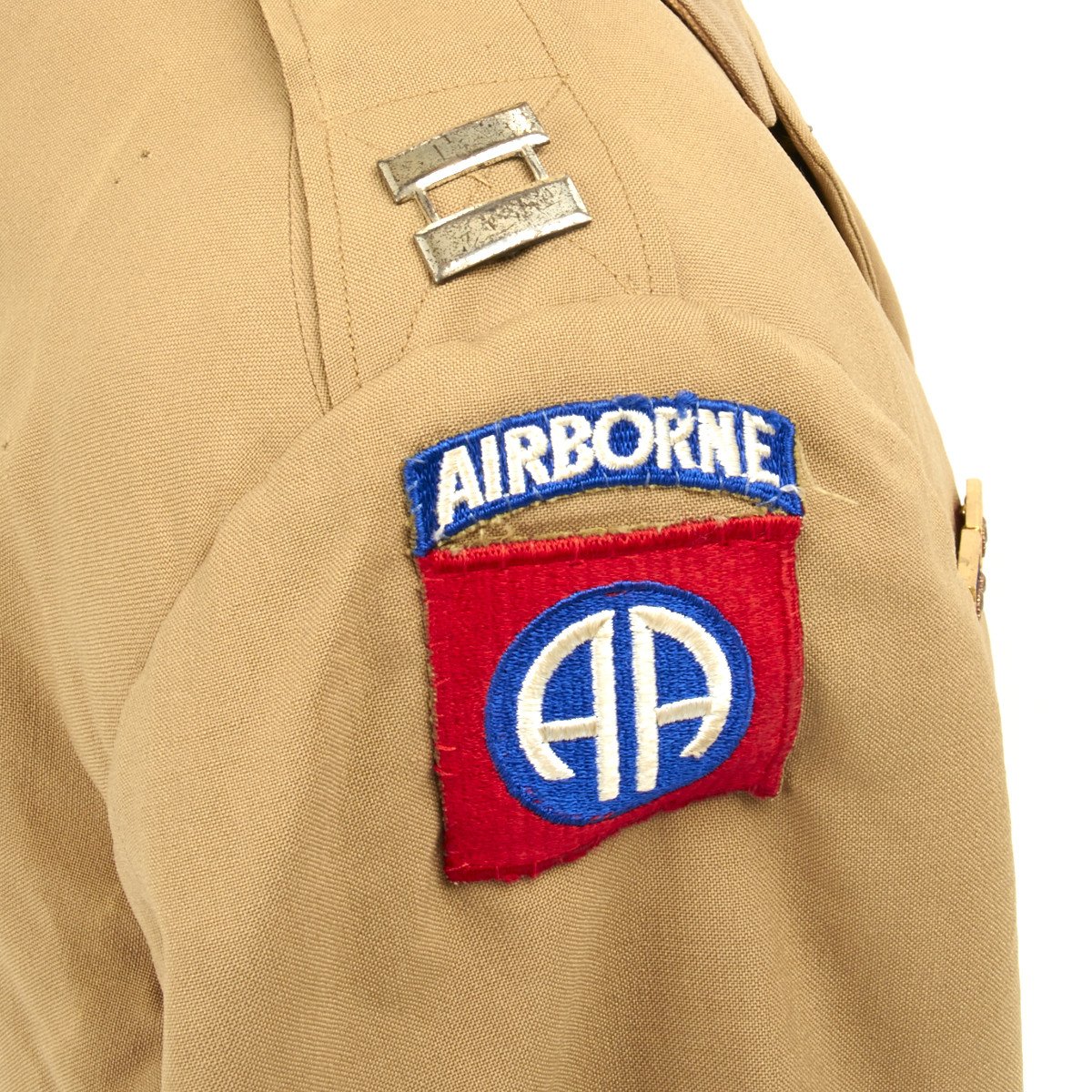 Original Item: Only one available. This is a large size US 42 private purchase unnamed summer weight Khaki Ike style Jacket for a Captain in the 82nd Airborne. He also saw service with the US Army Anti Aircraft Command.