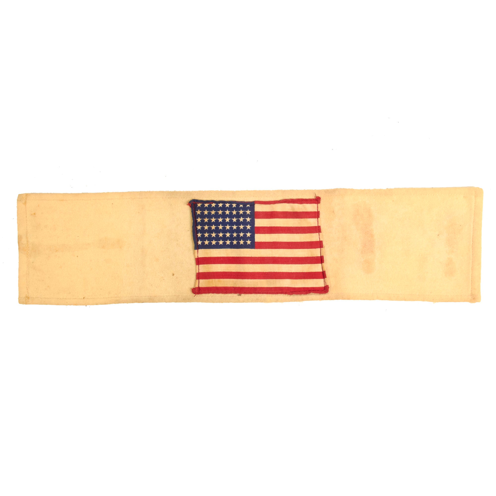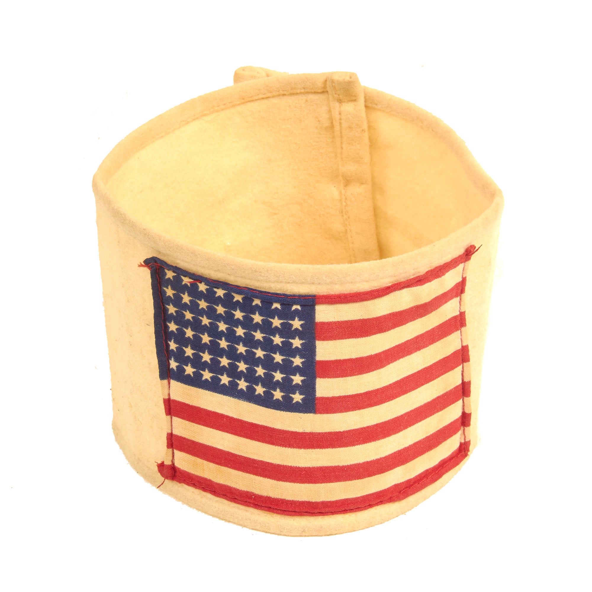 The right sleeve has an incredible British melton wool armband with a cheesecloth American flag sewn onto it, used for Invasion purposes. This type of armband was typically used by U.S. Paratroopers, for example in North Africa (1942), during the D-Day invasion in Normandy (June 1944) and during Operation Market Garden (September 1944). The right sleeve has a beautiful, original period applied 82nd Airborne insignia with Airborne rocker.