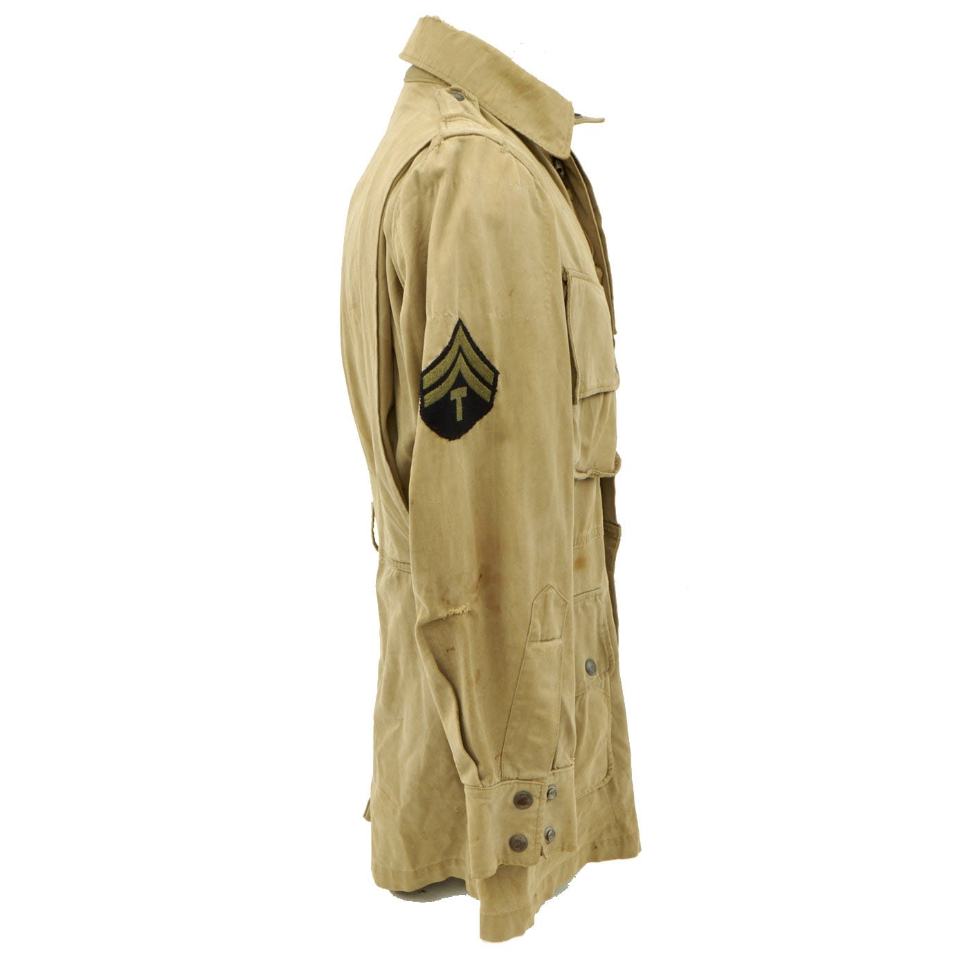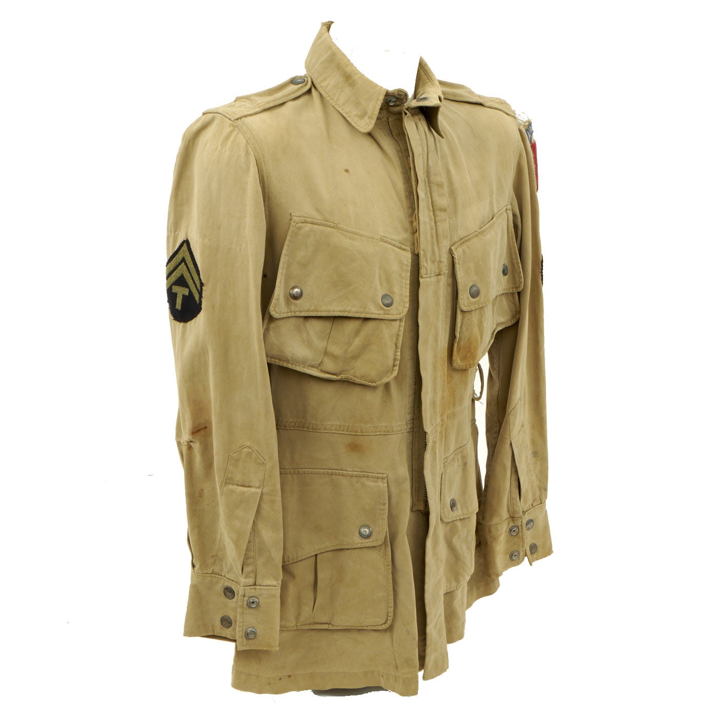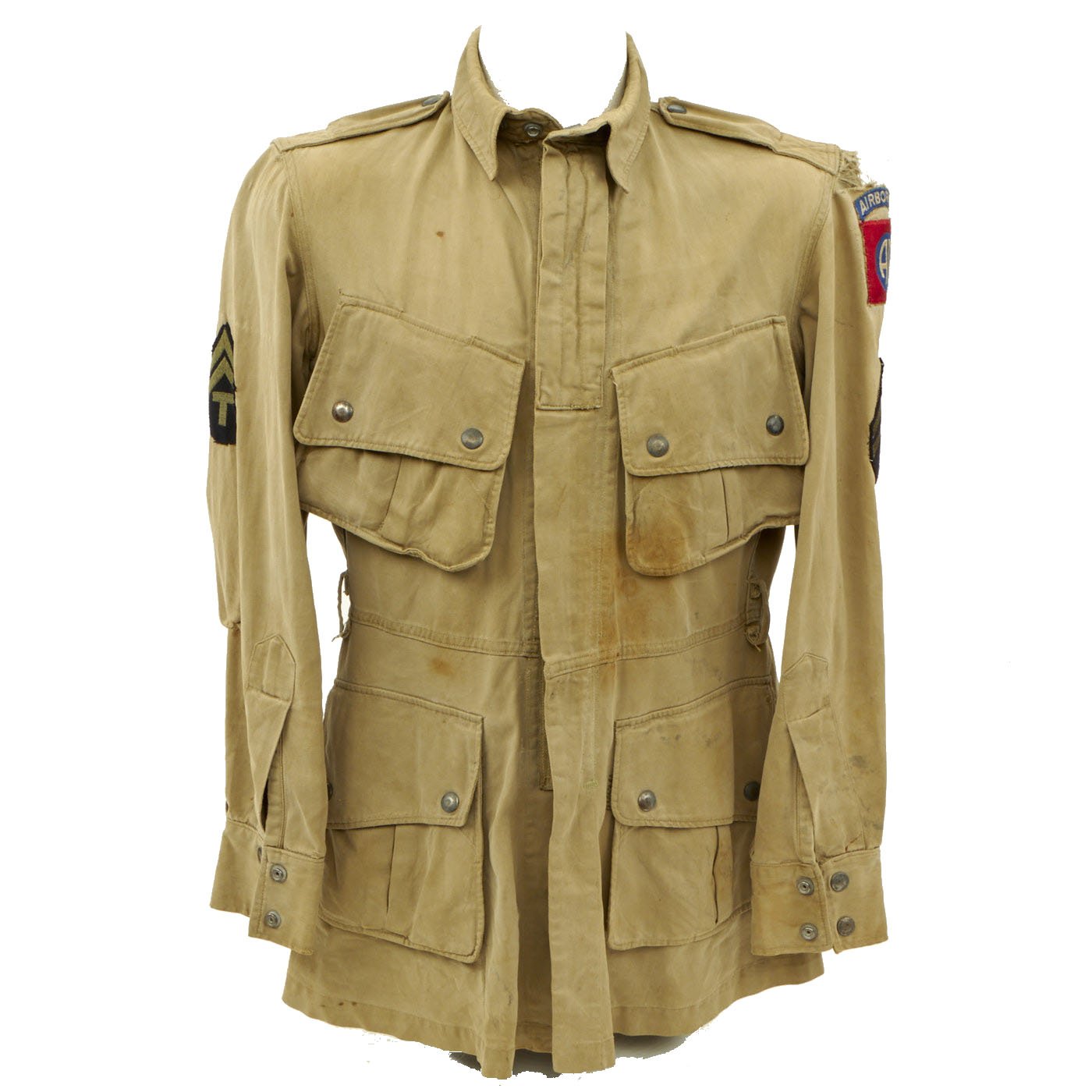 Original Item: Only One Available. Officially known as Coat, Parachute Jumper this jacket was won by a member of the 82nd Airborne during WWII. This example offered in very good condition measures as a size 38" and has all original snaps, belt and fully functional original zippers.