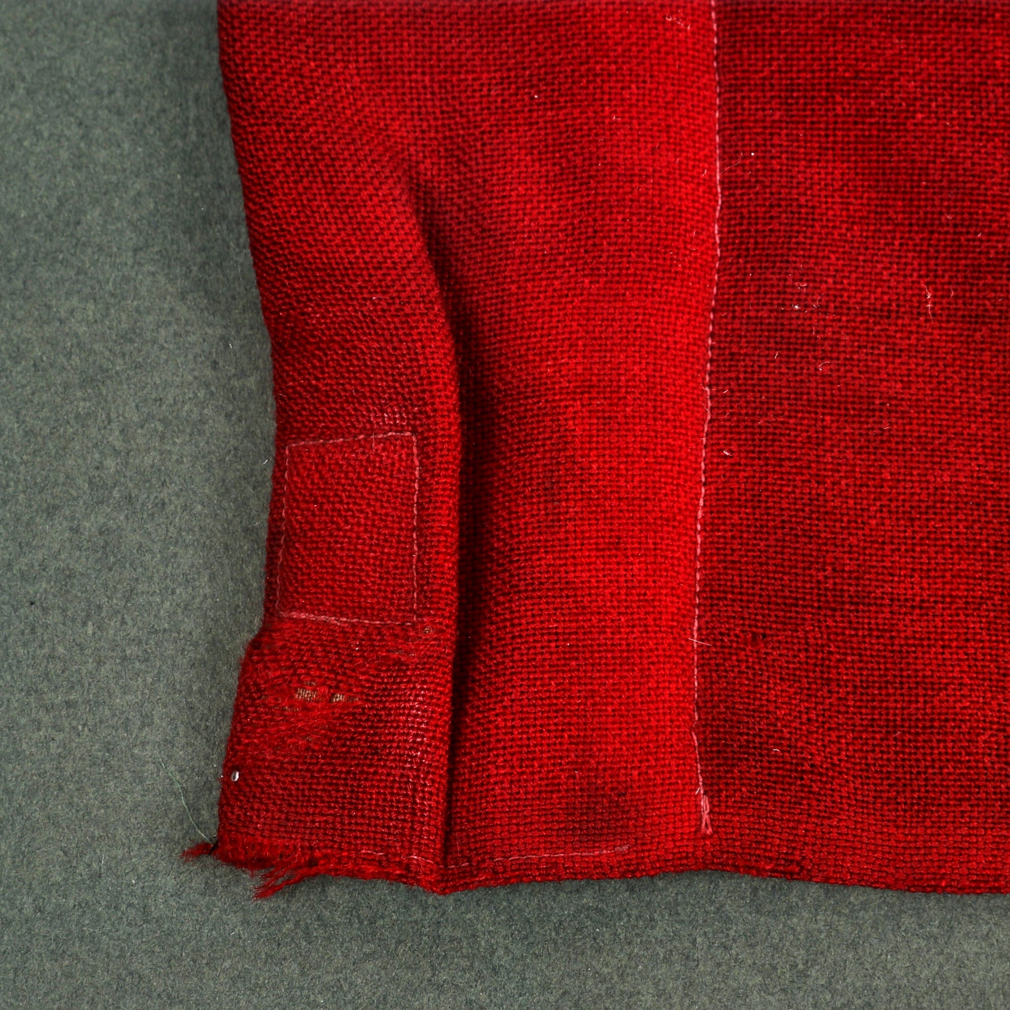 The guidon itself measures approximately 19 ½" in hoist by 29" in fly, and the frame is 34 ½"W x 26 ½"H, making it an impressive display piece. There is tearing present in the material as seen in the photographs.