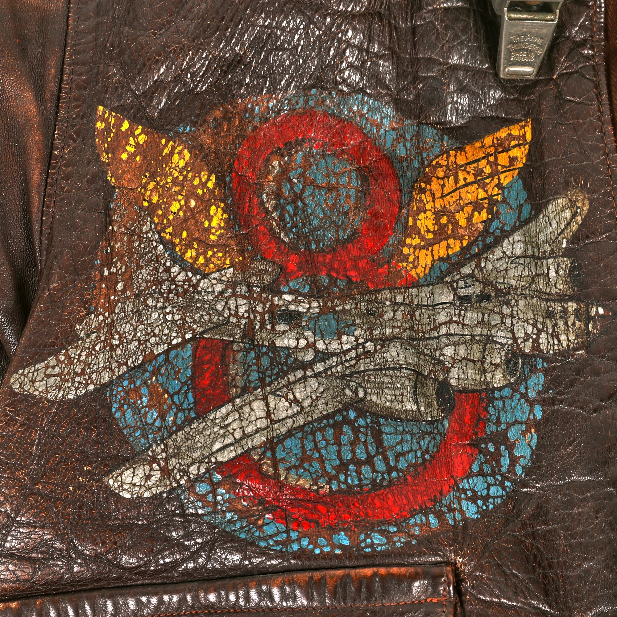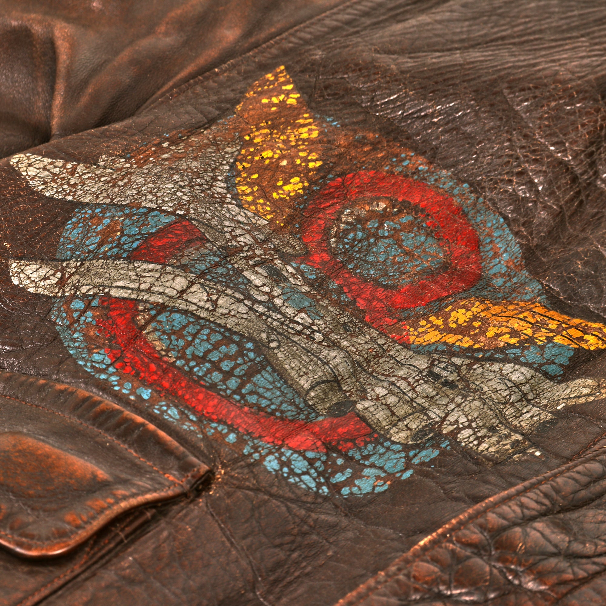 This is an incredible example of a hard to find painted A-2 jacket, offered in wonderful display condition. The laundry number makes for a fantastic research project, and it’s excruciatingly difficult to find a period depiction of the work of the famed Alberto Vargas. Comes more than ready for further research and display.