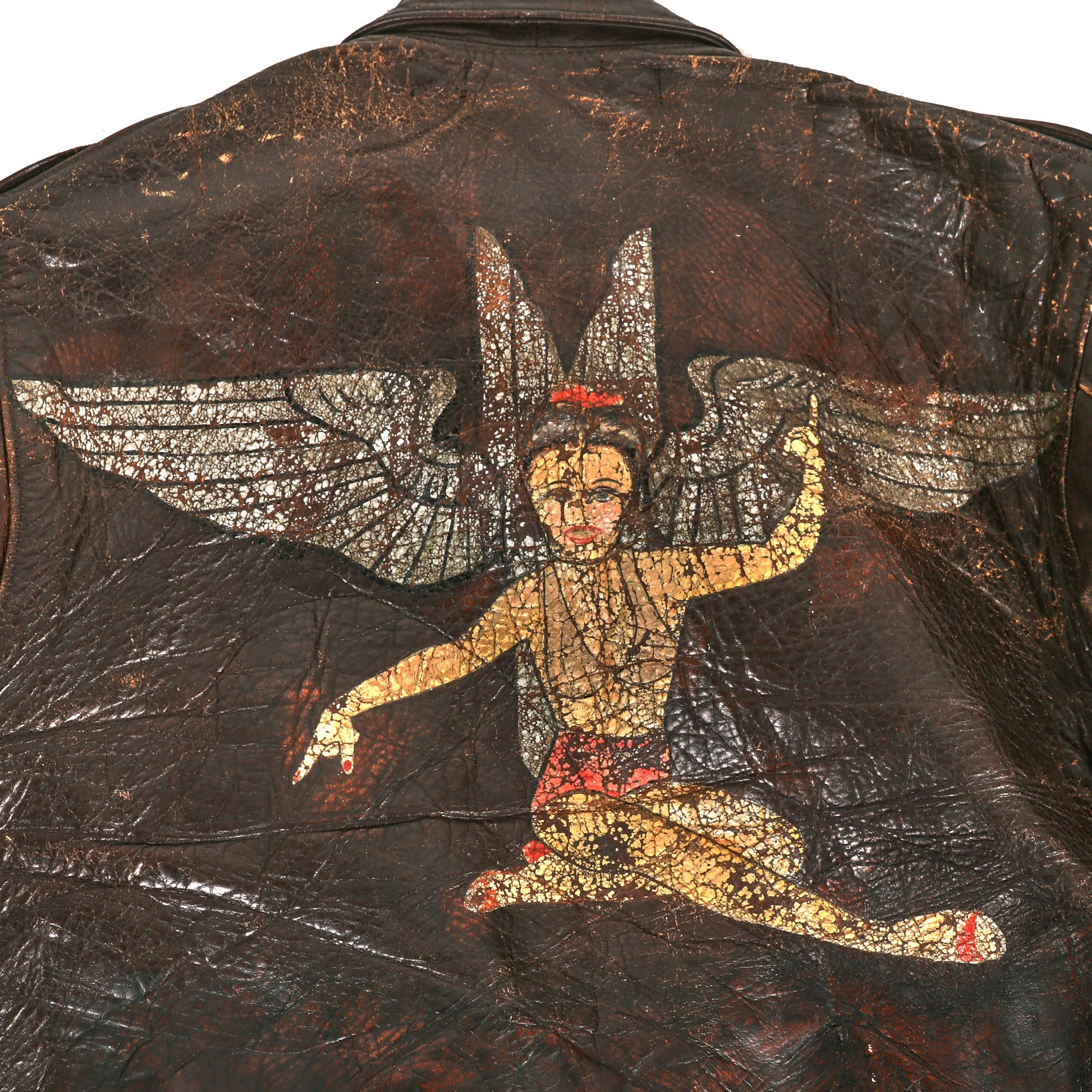 Original Item. One-of-a-Kind. Joaquin Alberto Vargas y Chávez was a Peruvian-American painter of pin-up girls. He is often considered one of the most famous of the pin-up artists, and as one of the pioneers of airbrush art. Numerous Vargas paintings have sold and continue to sell for tens of thousands around the world. During World War II, American pilots & crew were known to paint their A-2 Flight jackets with pin-up girls, some of which were used for their B-17/B-24 bomber’s nose art. This is a gorgeous example of an A-2 Jacket used by an Aerial Gunner serving in the 8th Air Force.