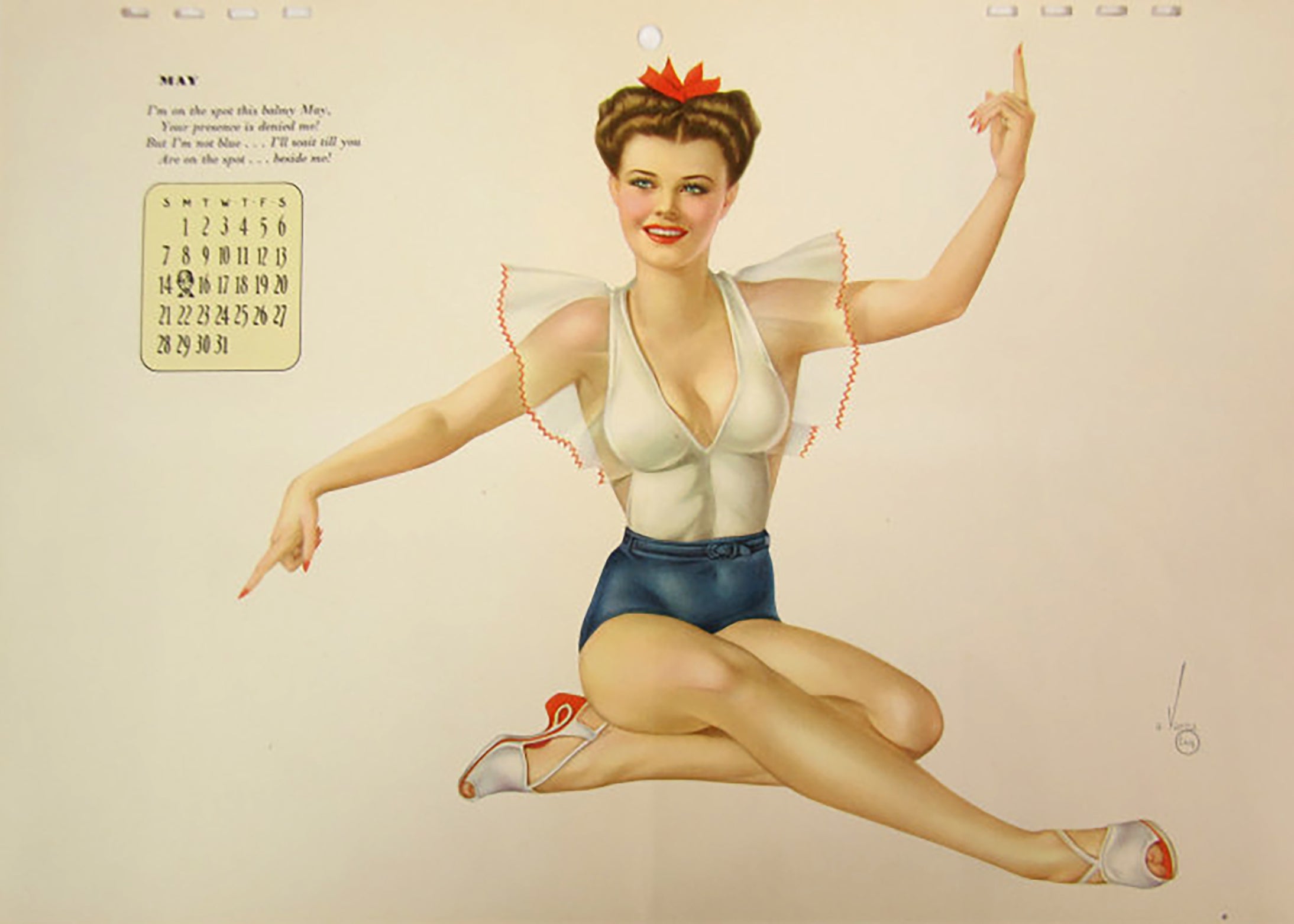 The back of the jacket is gorgeously painted with the Varga Pin-up girl from the May 1944 Esquire Magazine calendar, with a large set of Aerial Gunner’s wings behind her. The caption that originally accompanied this pin-up girl reads: