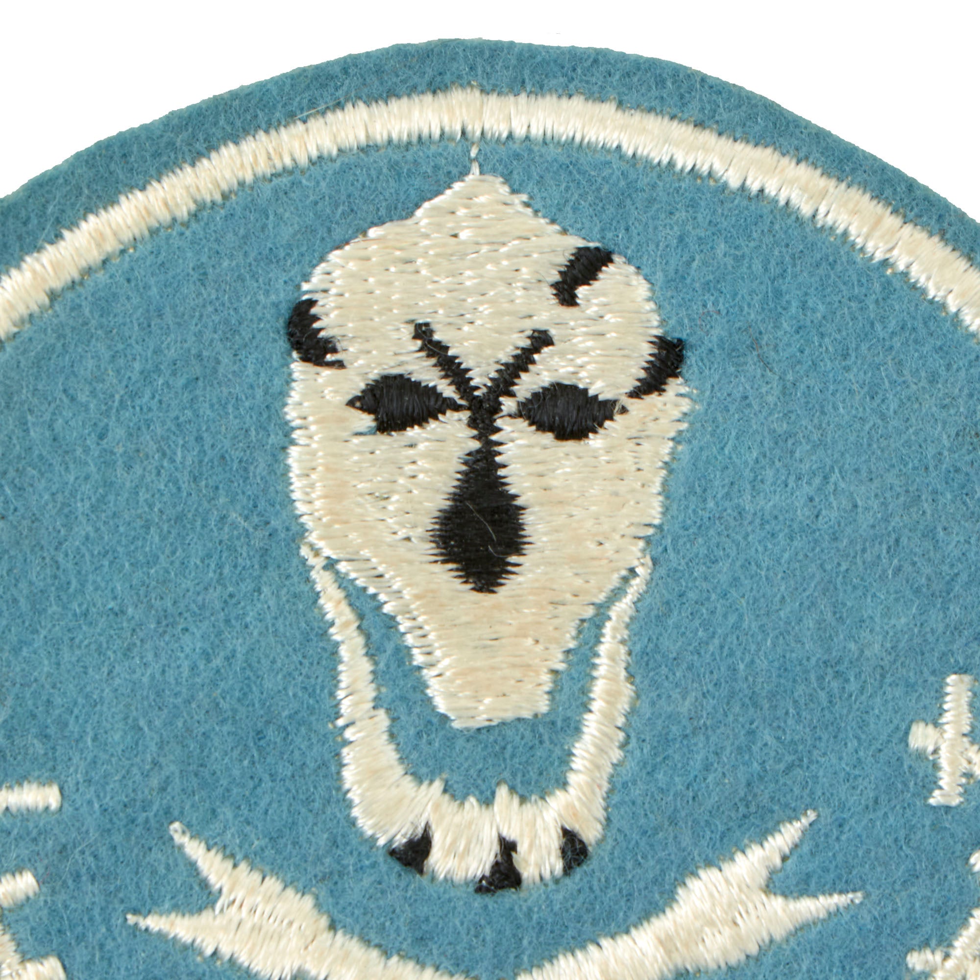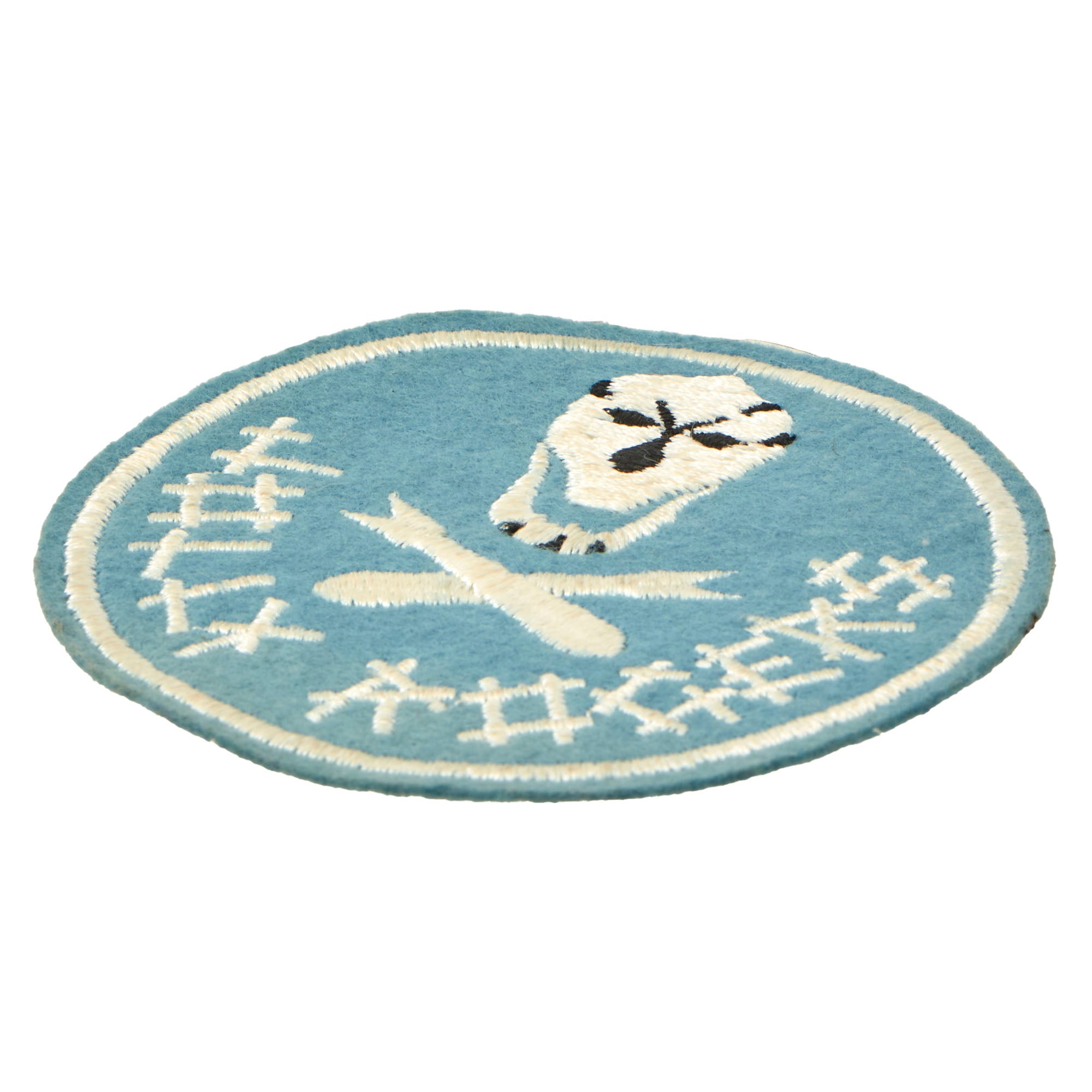 Original Item. Only One Available. This is a great example of a pocket patch for the 90th Bombardment Group, known as the "Jolly Rogers". This unit saw extensive service in the Pacific during WWII, and while they had an official unit insignia, many preferred the stylized Skull and crossed bomb with JOLLY ROGERS spelled out below with what look to be bones or sticks. These would be worn on the flight jackets of members.
