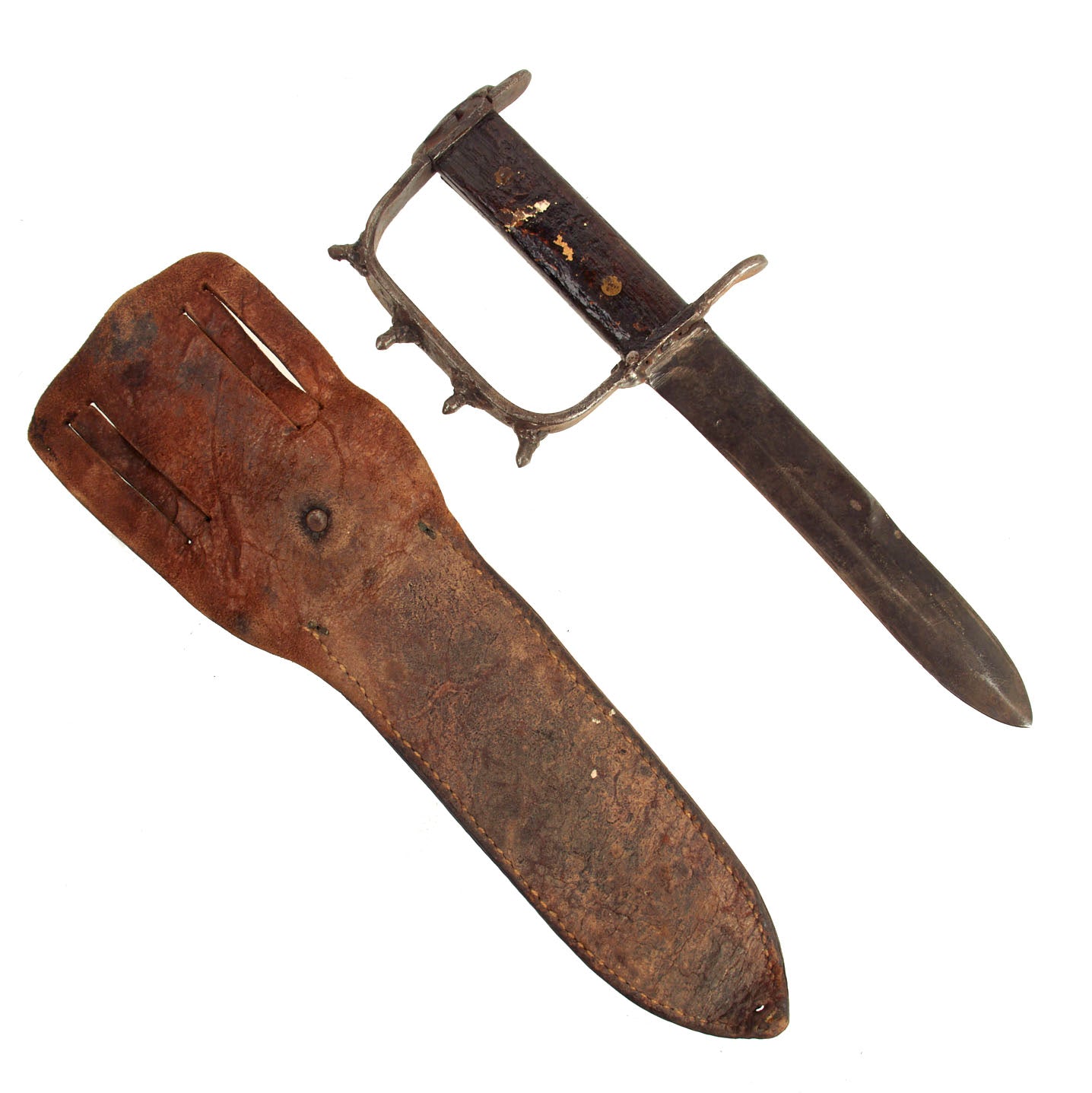 Original Item: One-Of-A-Kind. This is a crude, yet effective WWII knuckle knife! It appears that the design of this knife was modeled after the M1917 Trench Knife but with a regular double sided blade and not the triangular stiletto.