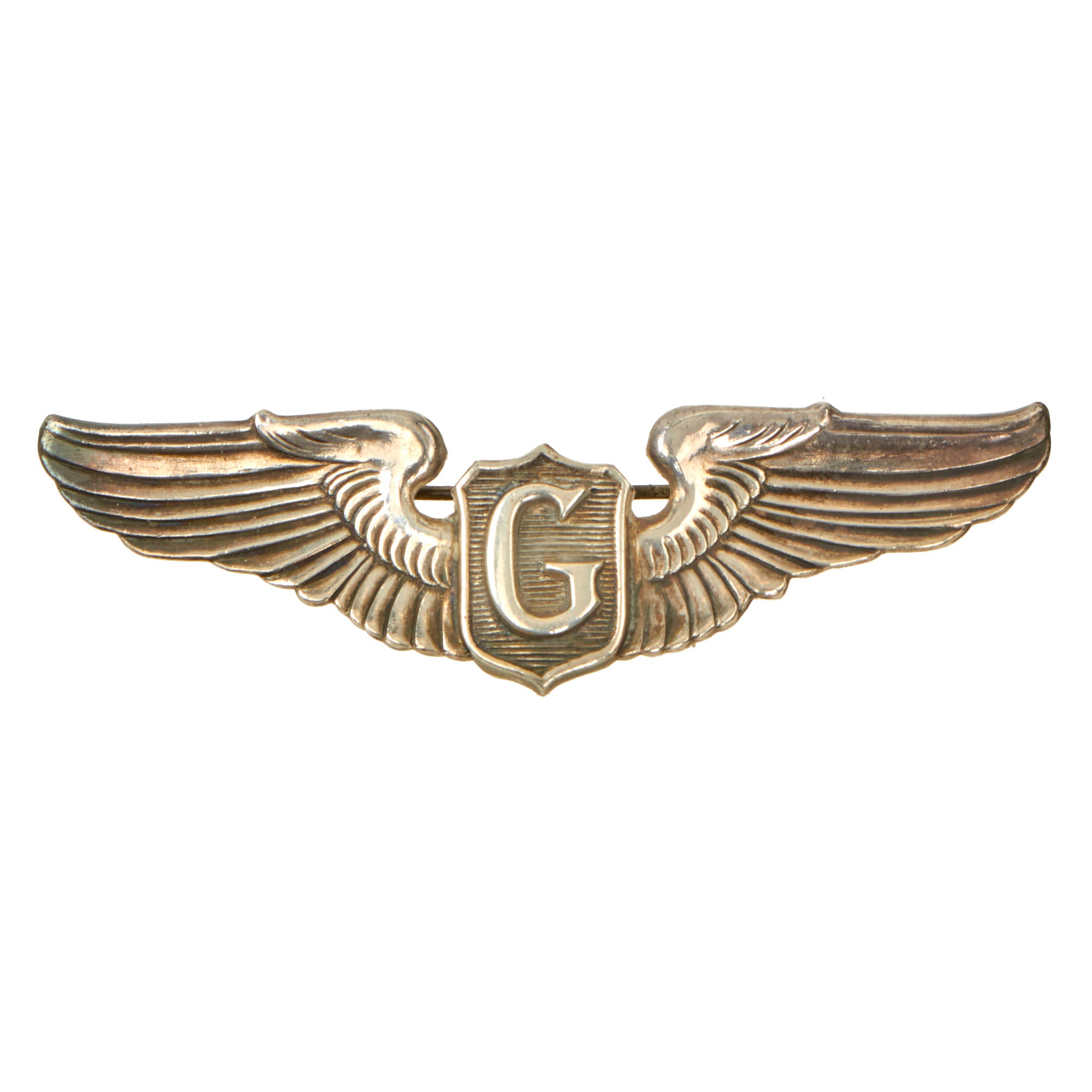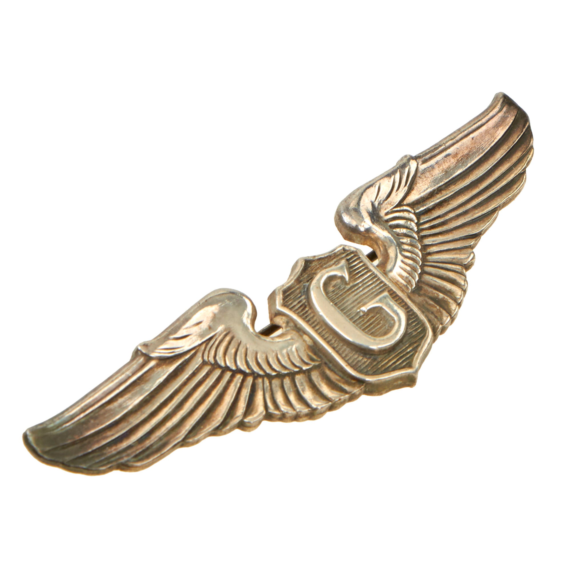 Original Item: Only One Available. Now this is a fantastic example of a rather difficult set of wings to acquire. This is a Sterling-marked set of Glider Pilot wings, still in great condition without any serious damage. The set has a fantastic patina, and the pin on the back is still working well.