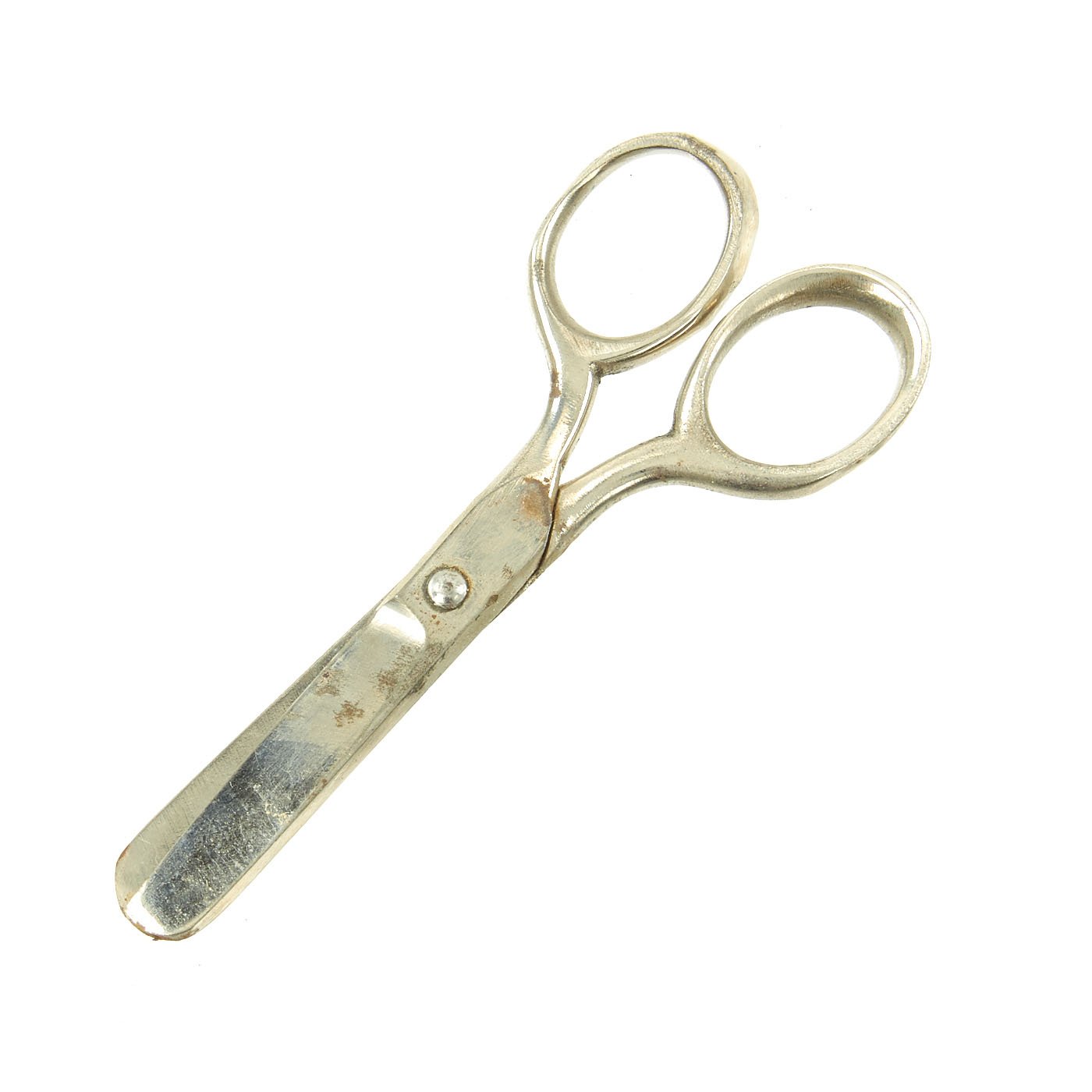 - Chrome Plated blunt-ended scissors mounted in the top of the case.