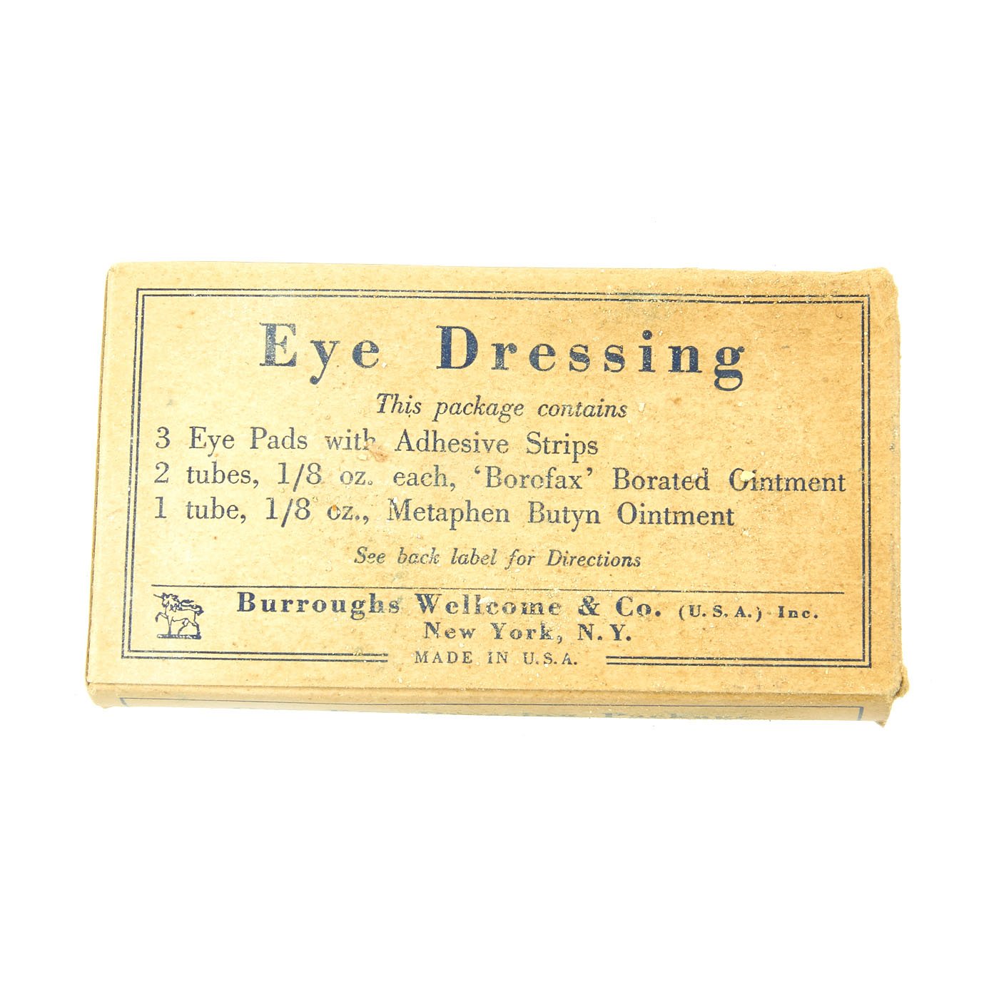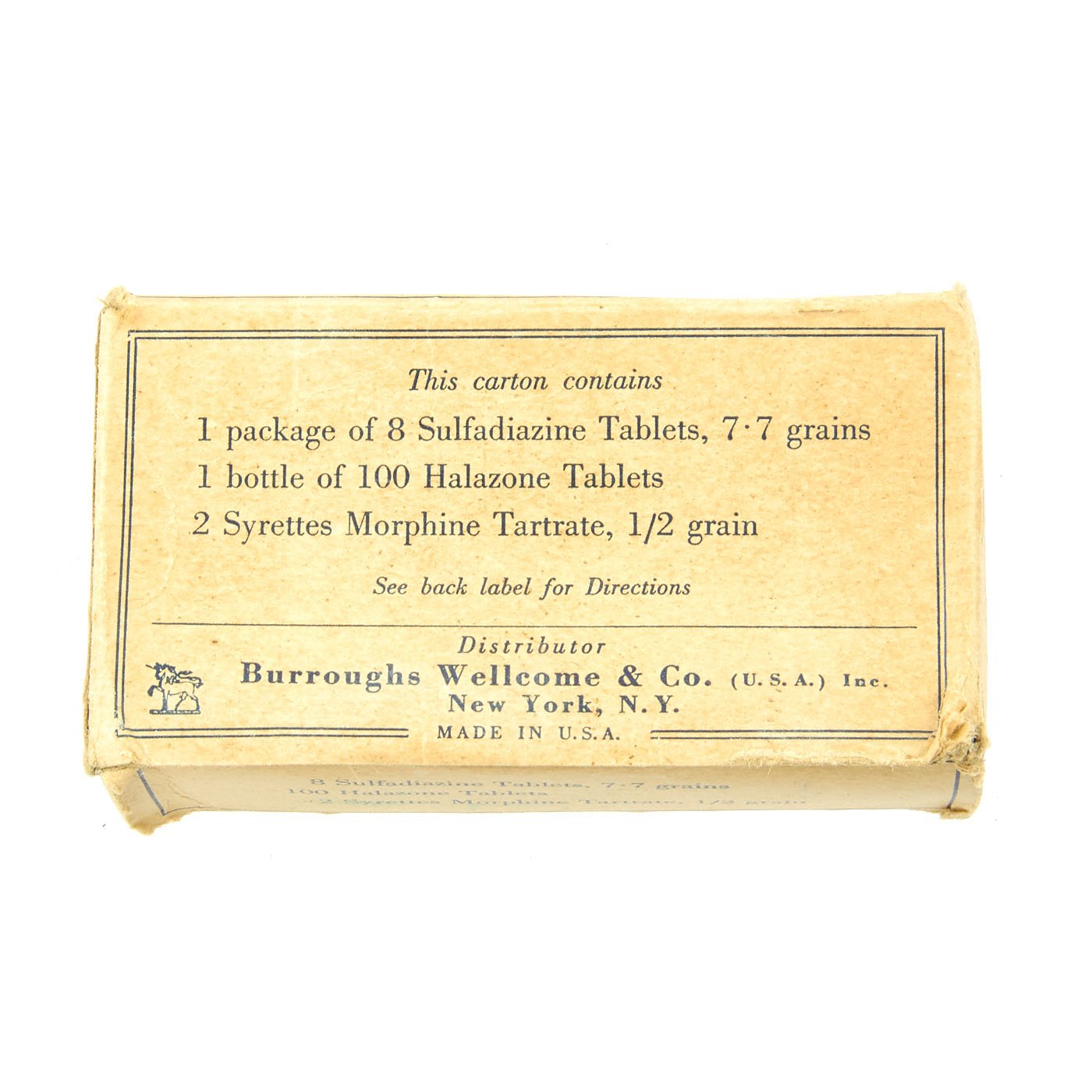 - Medical supplies: sulfadiazine & sulfanilamide packages, amyl nitrate vials, morphine tartrate syrette, iodine applicators & bottle, halazone tablets, burn injury set.