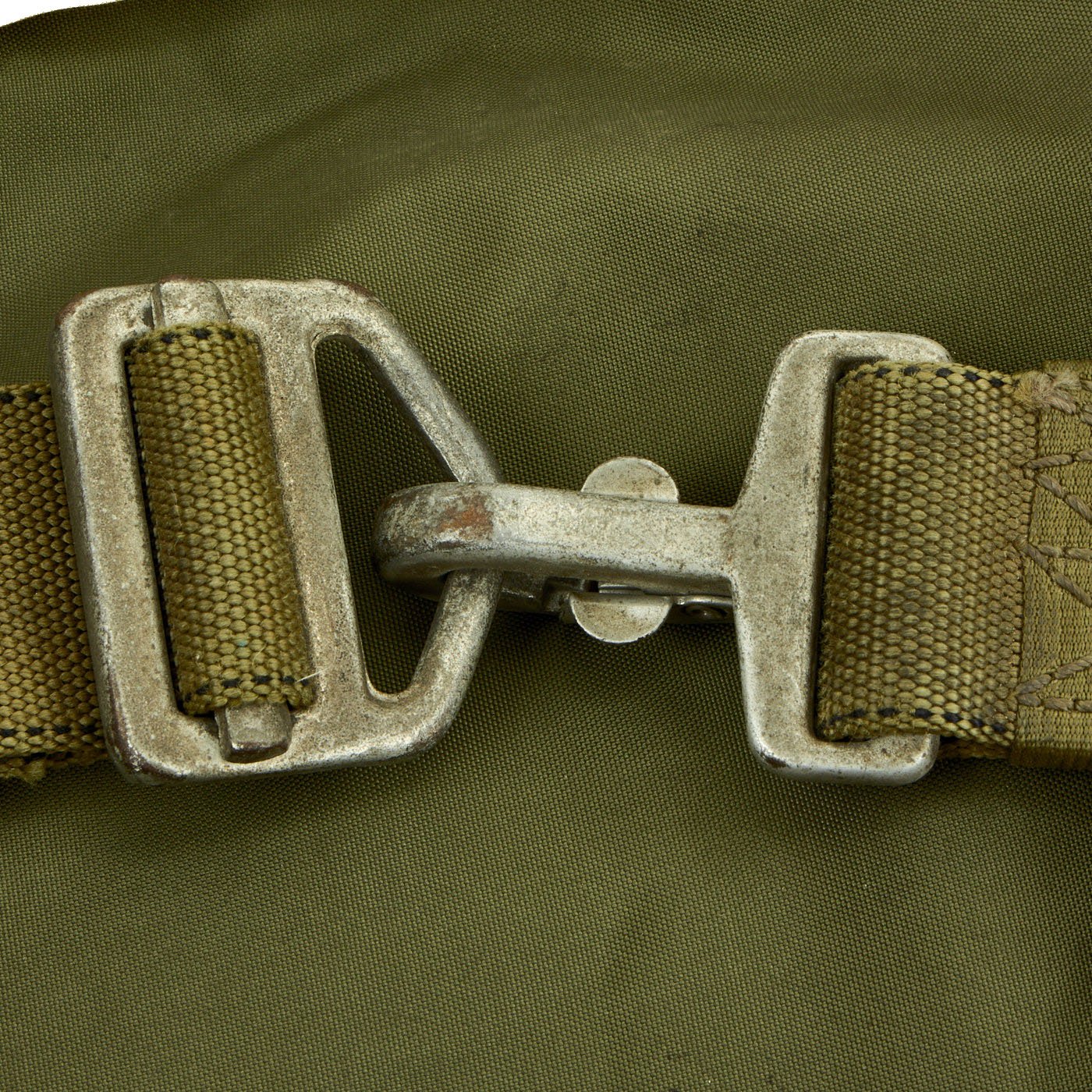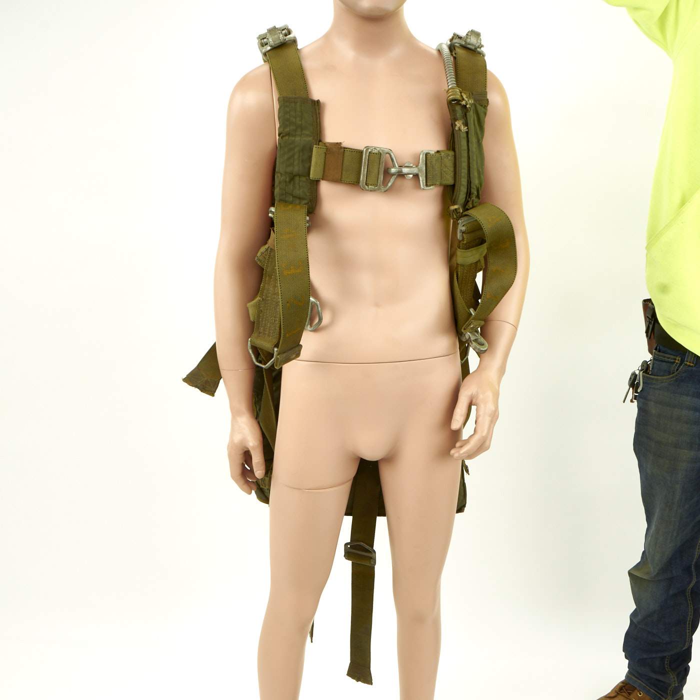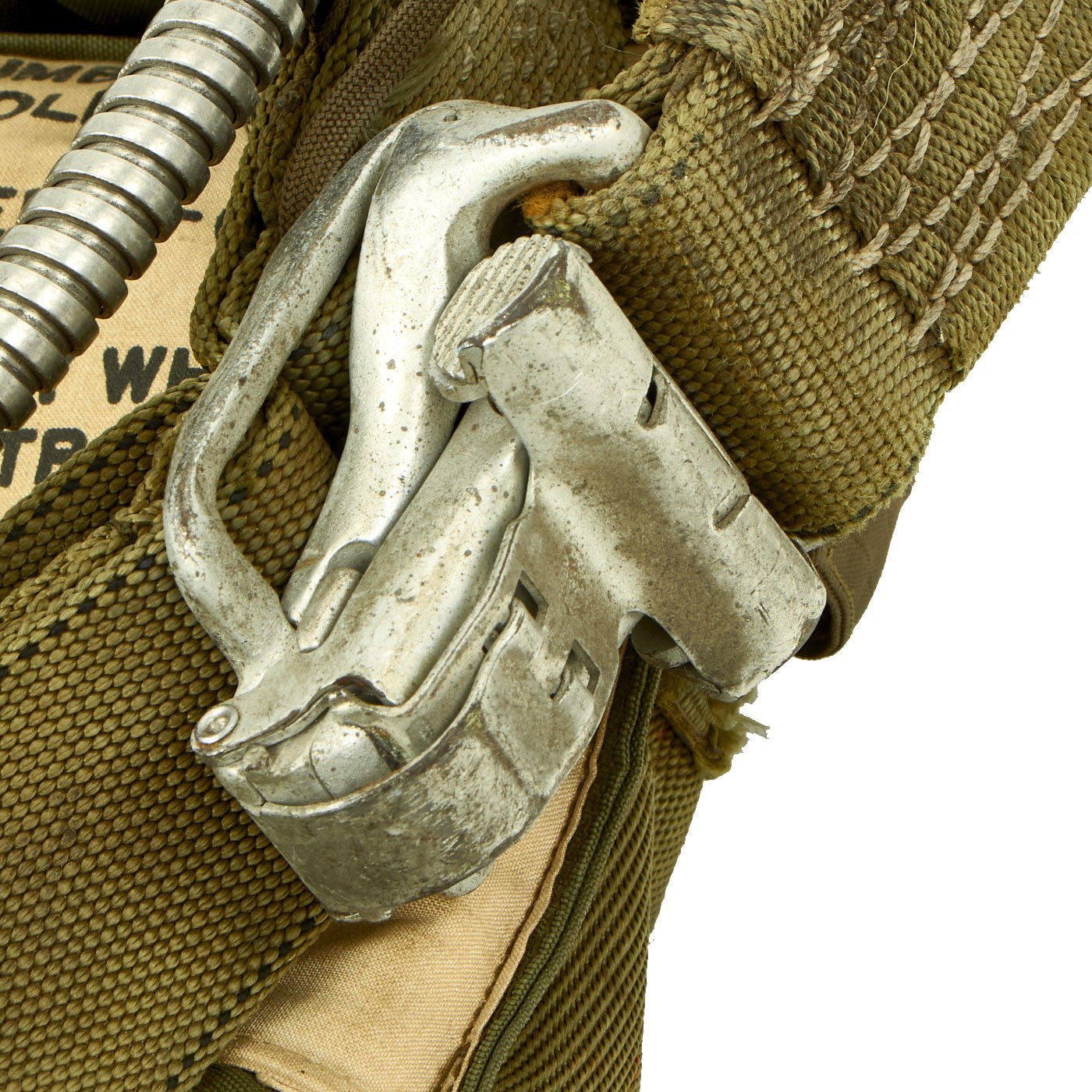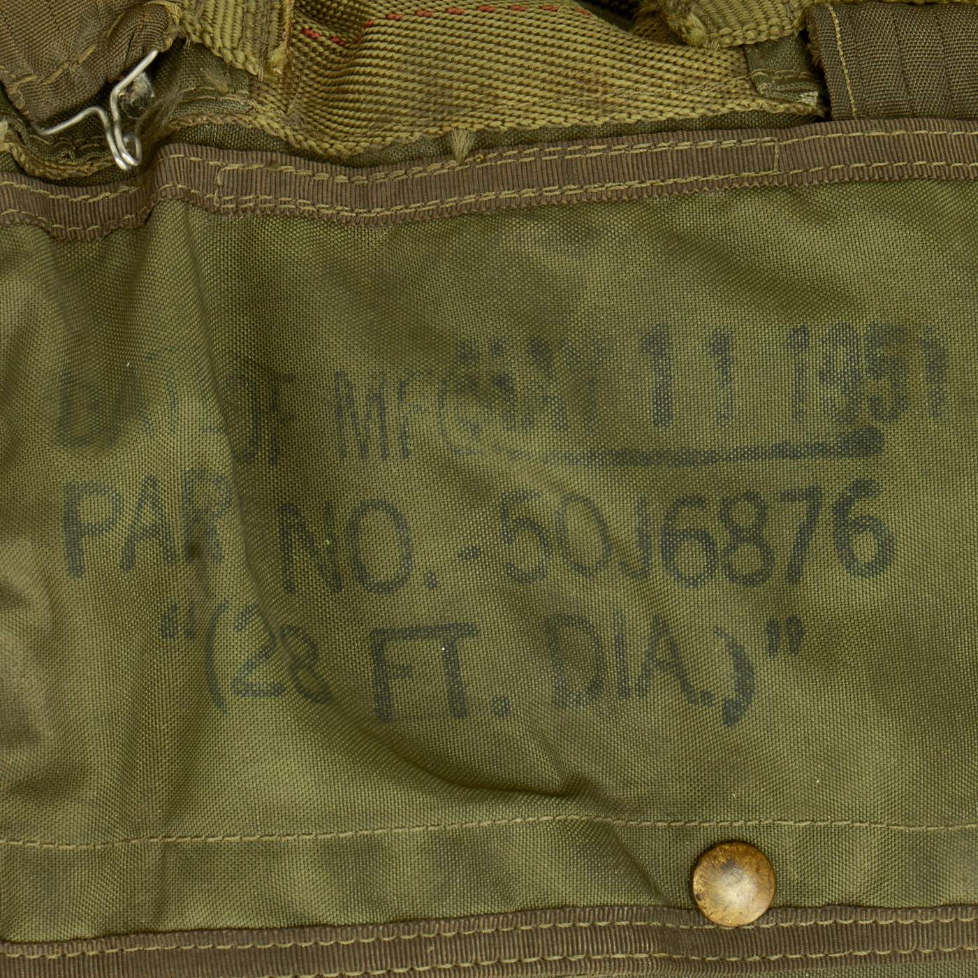 Original Item: Only One Available. Pack Part number 50J6876 dated May, 1951. This is a complete assembly with harness and orange/white nylon parachute canopy. Harness comes with its original log book with entries dating from 1951 through 1957. Some markings on the assembly are present but illegible, while the date is.