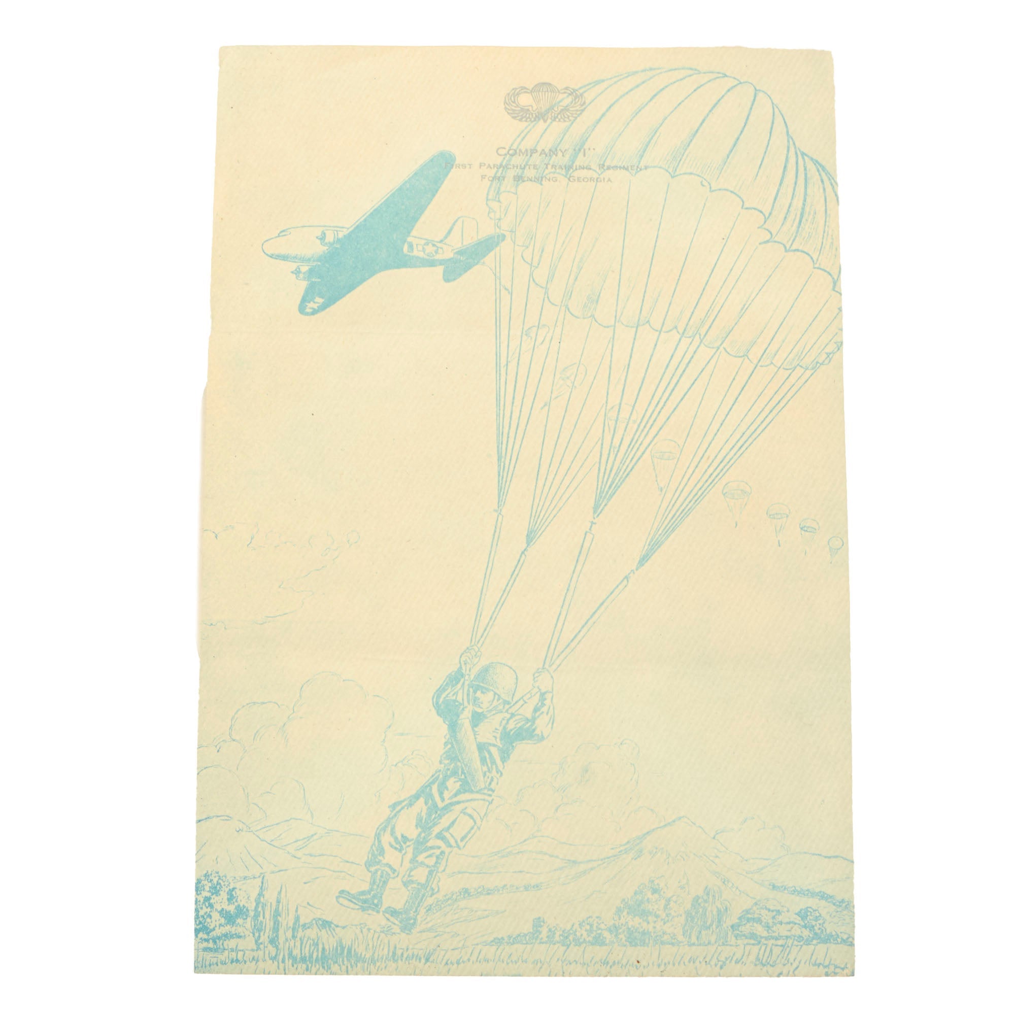 - Co. I, 1st Parachute Training Regiment letterhead with paratrooper landing in background.