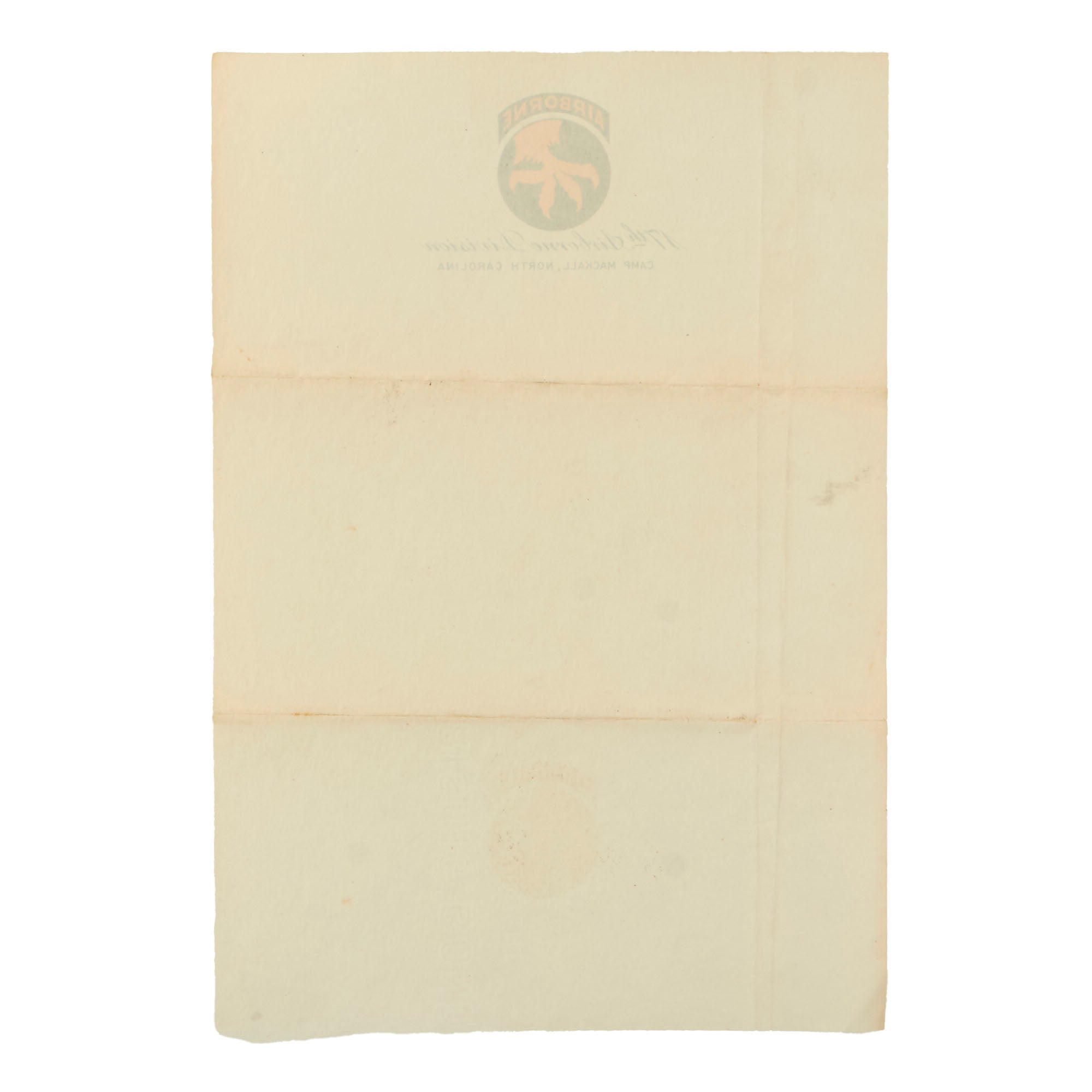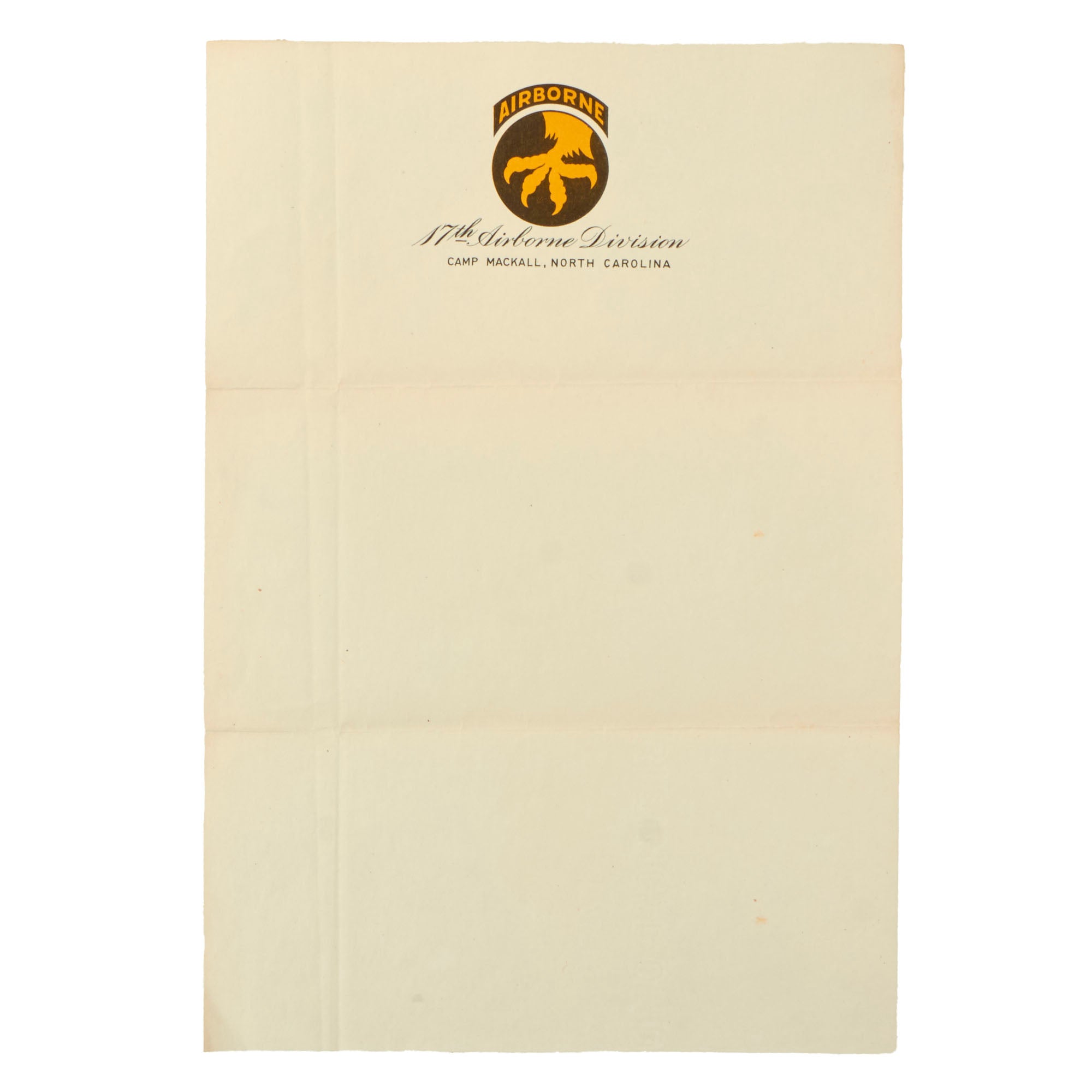 - 17th Airborne Division letterhead, Camp Mackall, NC.