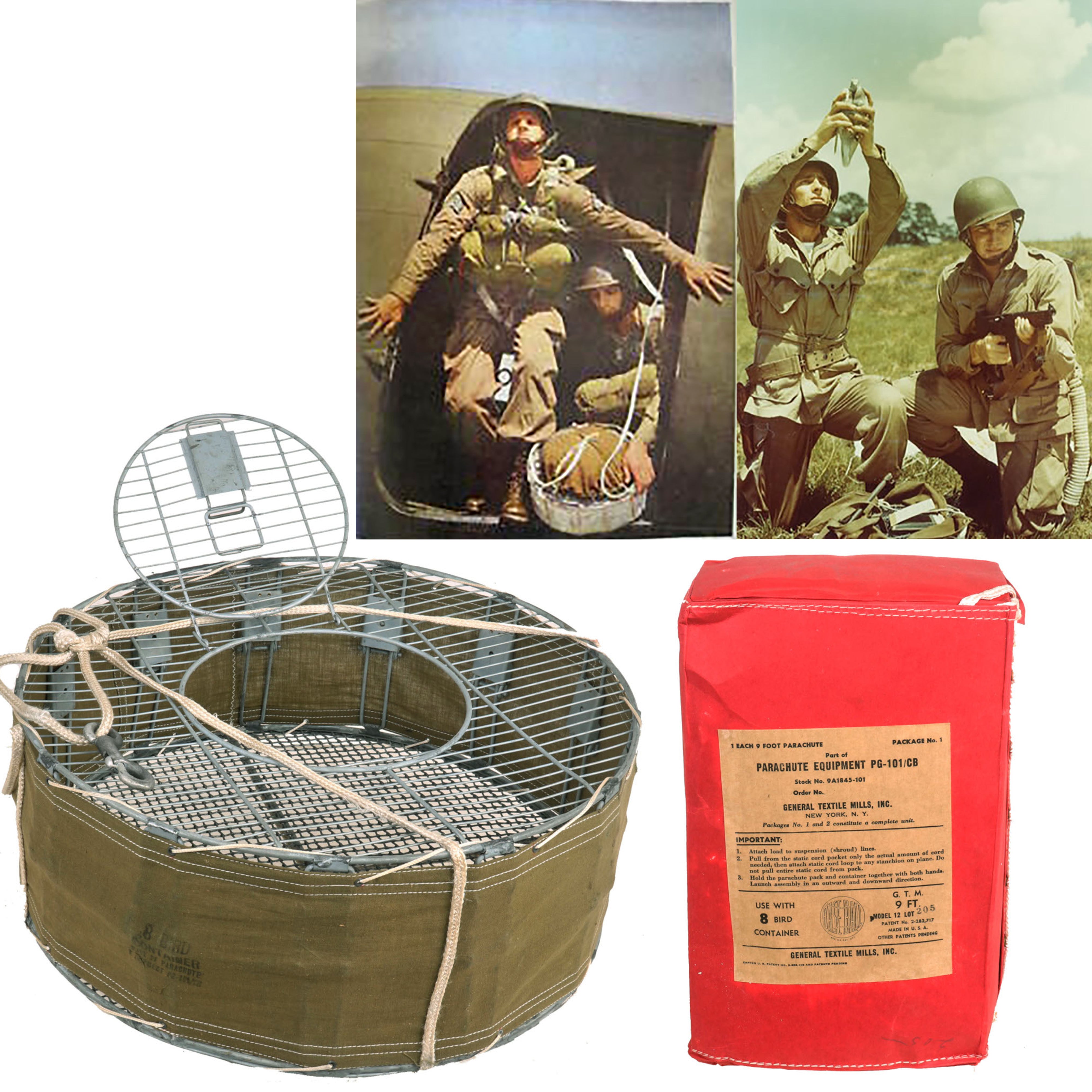 Later, the army developed a special cage and parachute for dropping pigeons from aircraft to supply isolated troops with a means of communication. The device was also used to drop thousands of pigeons over the countryside during the June 1944 Normandy Invasion. French civilians were asked to send back detailed information about German installations and troop movements.
