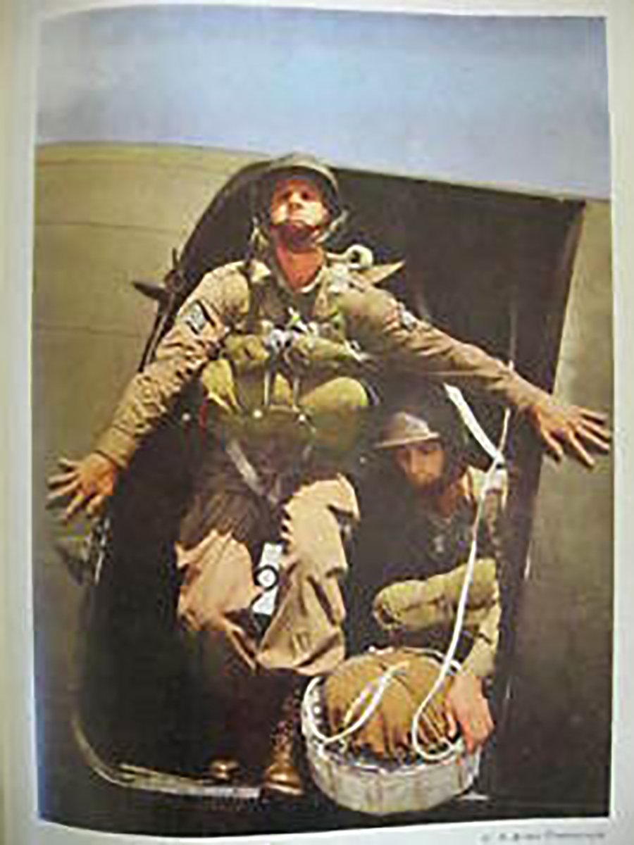 As the war progressed, the army decided it needed to utilize pigeon communication more in its airborne operations. It had a special vest developed—a sling-like contraption, made by a brassiere company—that enabled a paratrooper to carry a pigeon on his chest or side. On the ground, the paratrooper could adjust the vest to carry the pigeon on his back. The first paratrooper pigeon was a male named Thunderbird. He also was the first pigeon to make 10 jumps from a plane, and he received a pair of miniature wings from Colonel James Coutts at the Fort Benning parachute school.