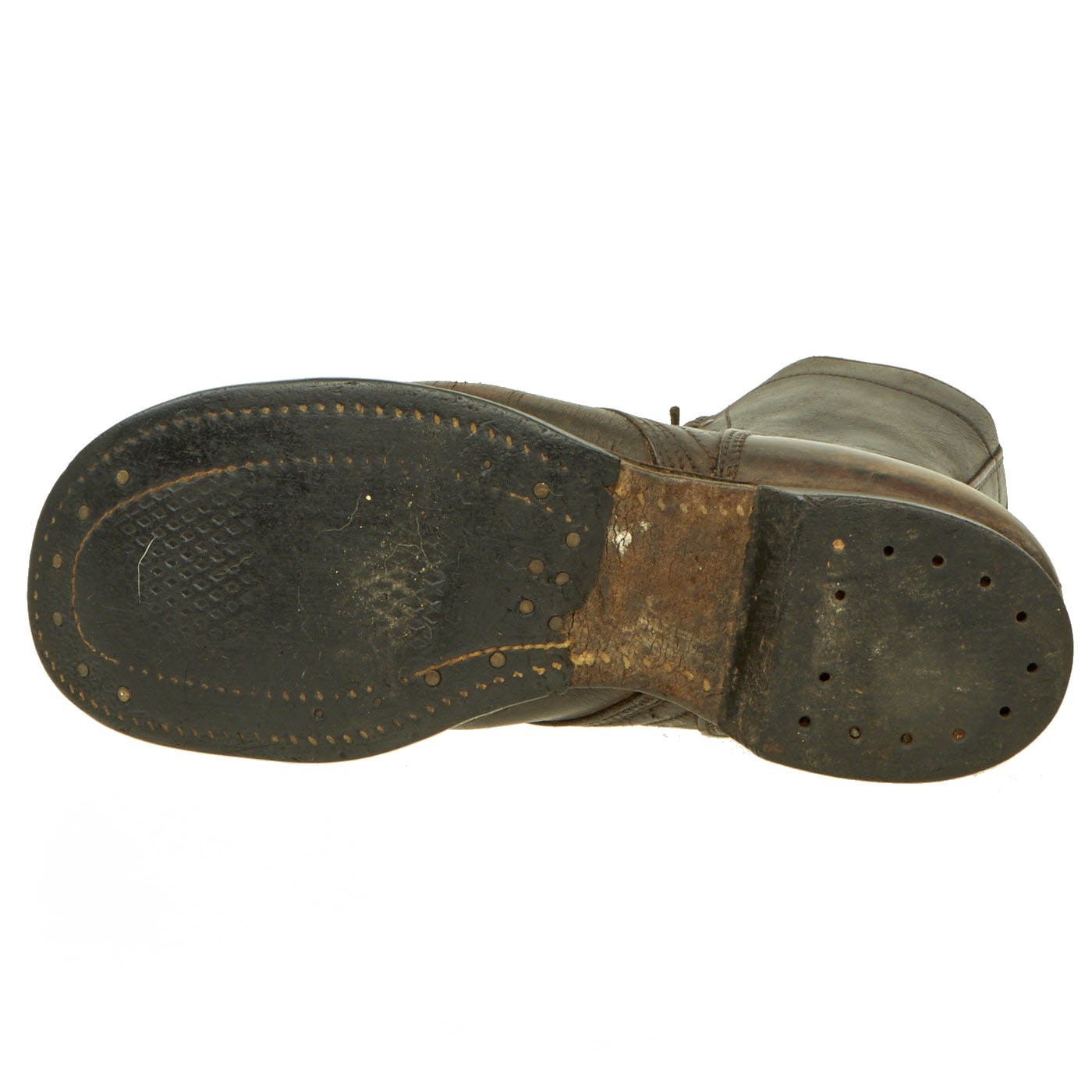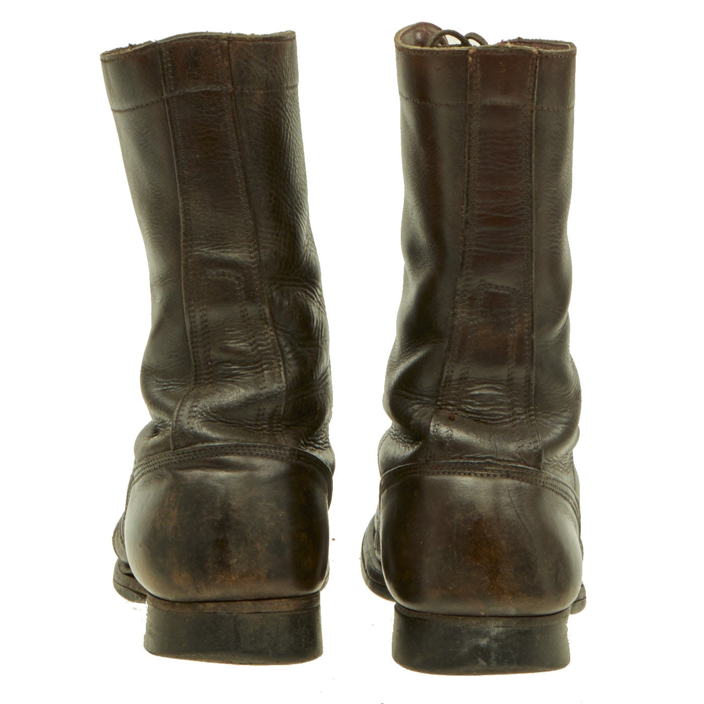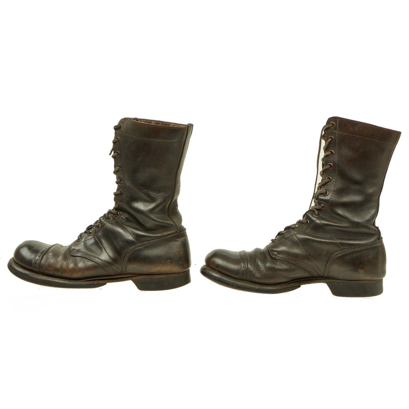 Original Items: Only One Pair Available. The Corcoran Jump Boots were devised specifically for the airborne infantry; the most significant change from regular infantry boots were the lack of leggings which prevented the snagging of parachute risers. They were designed in 1941 and put into action for the 82nd Airborne. After training, the troopers were allowed to blouse their M42 Trousers into their boots, when before during training they needed to be over the boots for they were not paratroopers at the time. They saw action in Sicily, Italy, France, Belgium, Holland and Germany. In 1945, they were replaced by the M43 Combat Boots, which came with major opposition from the paratroopers as the two buckles on the leggings could be snagged on the parachute risers and injure the trooper.