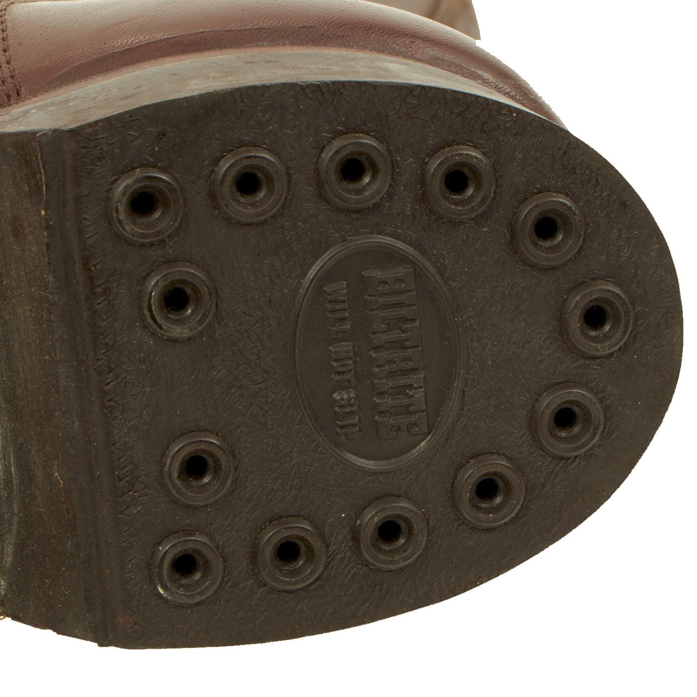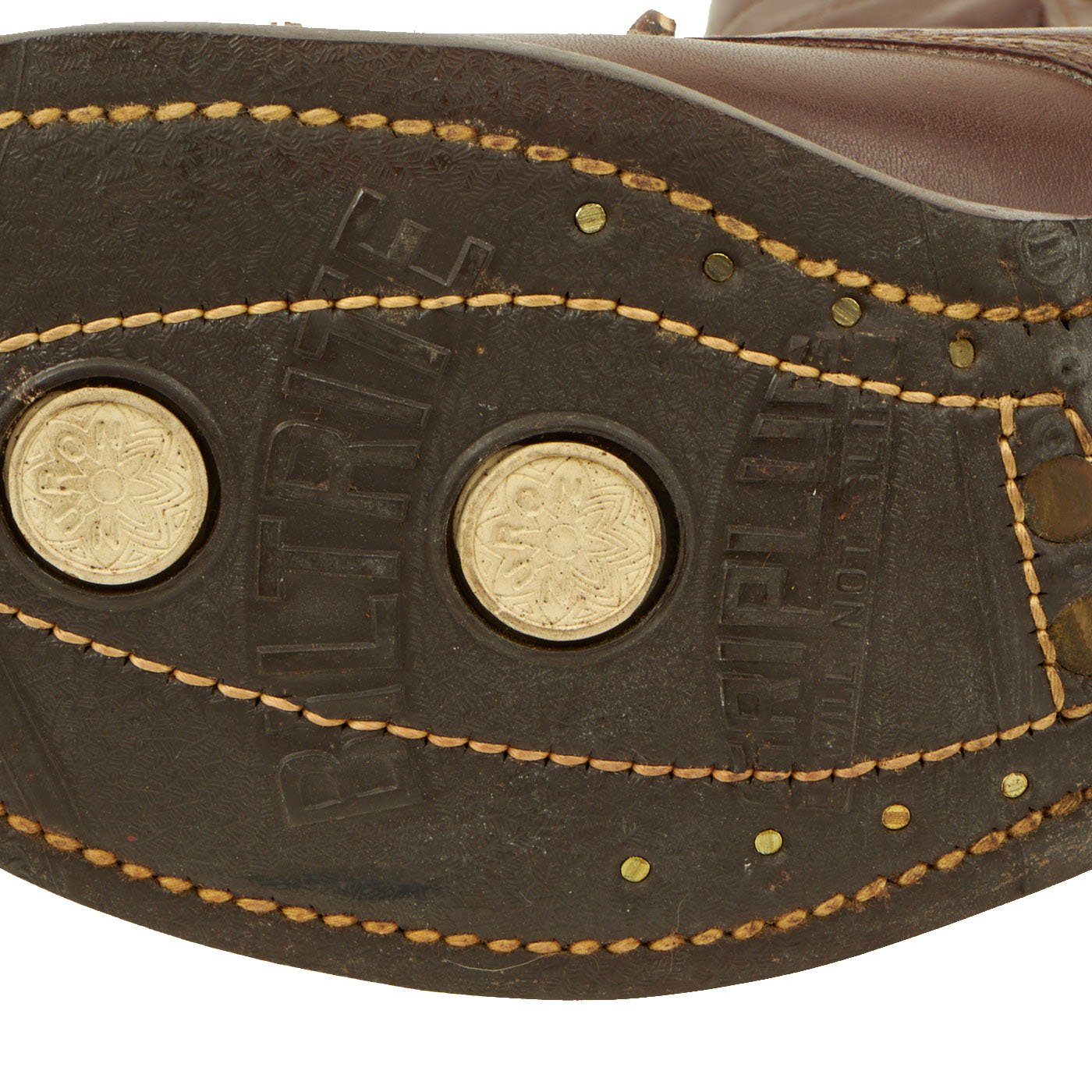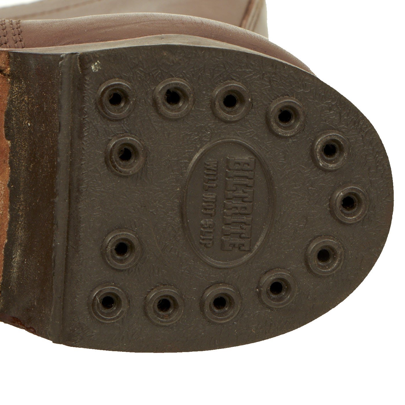 This is a New Old Stock (NOS) pair of jump boots manufactured by The Joseph M. Herman Shoe Company of Millis, Massachusetts. The are size 6 and feature BILTRITE heels and soles. We were told by the pervious owner that this very pair of boots appears in one of the volumes of the book Heroes in our Midst by John Angolia. These boots are in mint condition having never been walked in and still have the original maker tag. They were commercially made and appear to be late war manufacture.
