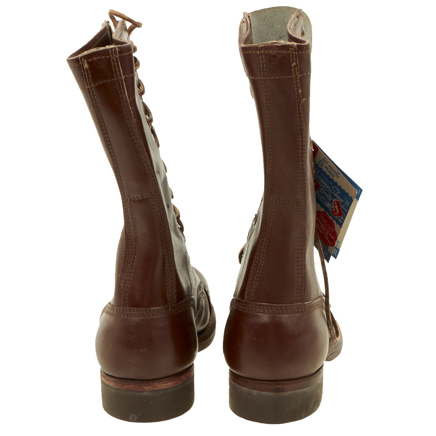 Original Items: Only One Pair Available. The "Corcoran Style" Jump Boot was devised specifically for the airborne infantry; the most significant change from regular infantry boots were the lack of leggings which prevented the snagging of parachute risers. They were designed in 1941 and put into action for the 82nd Airborne. After training, the troopers were allowed to blouse their M42 Trousers into their boots, when before during training they needed to be over the boots for they were not paratroopers at the time. They saw action in Sicily, Italy, France, Belgium, Holland and Germany. In 1945, they were replaced by the M43 Combat Boots, which came with major opposition from the paratroopers as the two buckles on the leggings could be snagged on the parachute risers and injure the trooper.