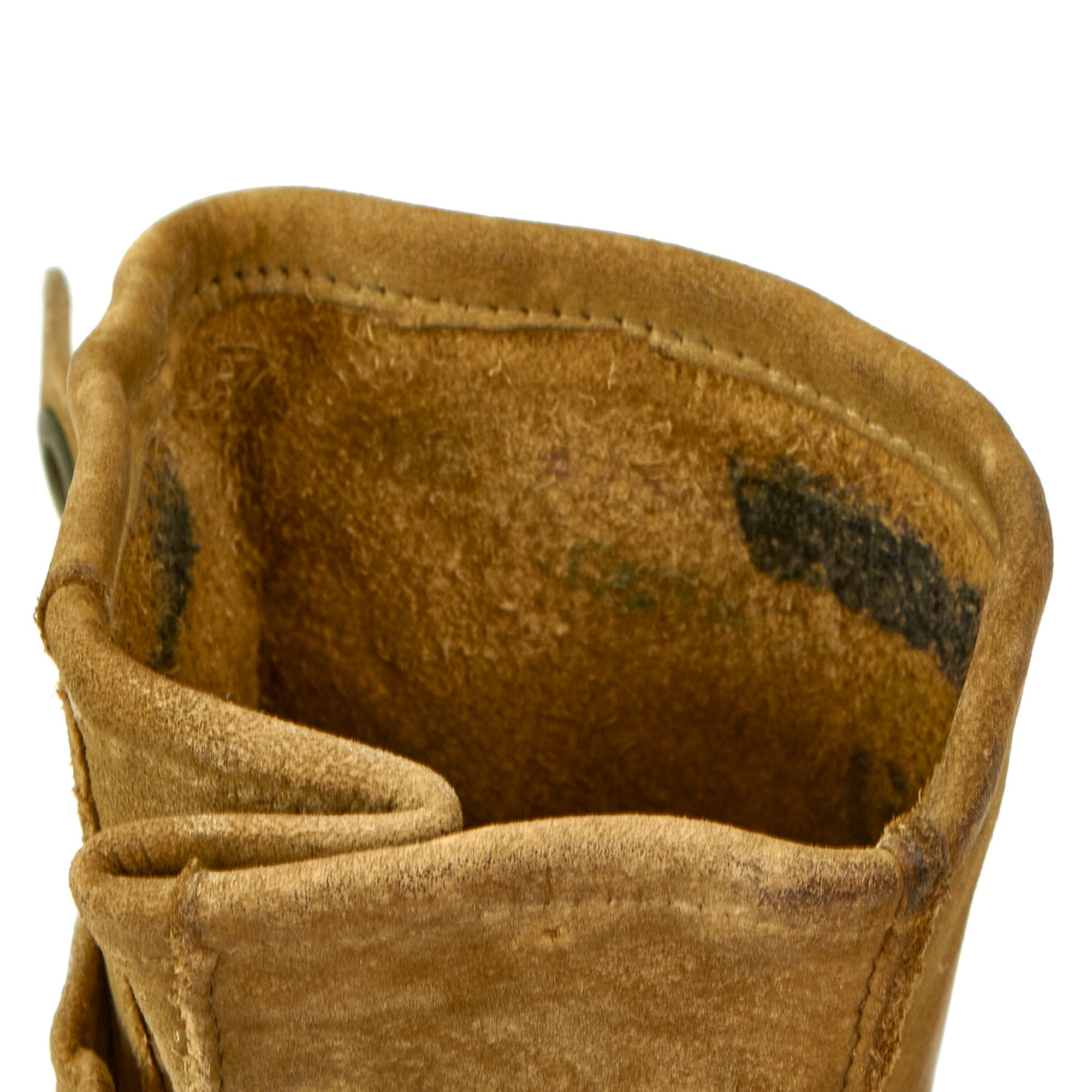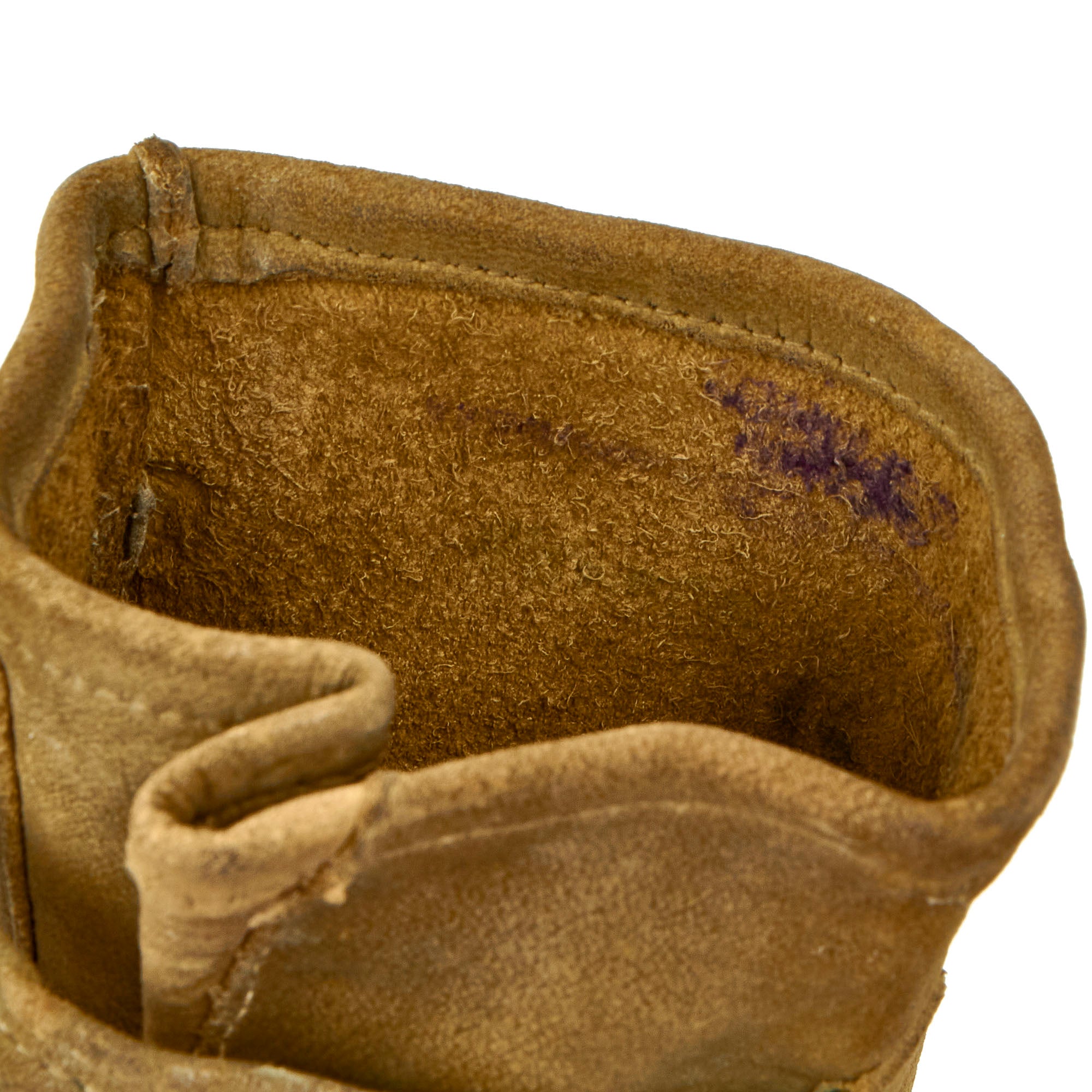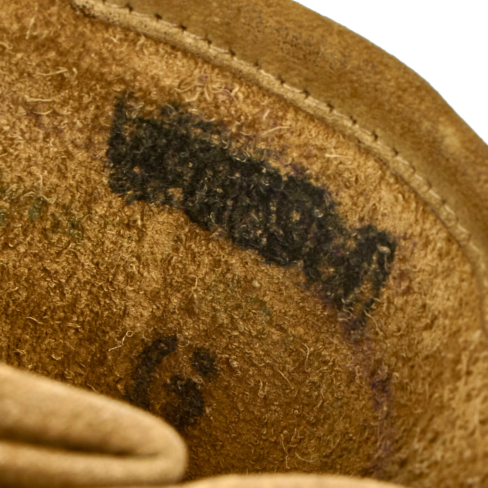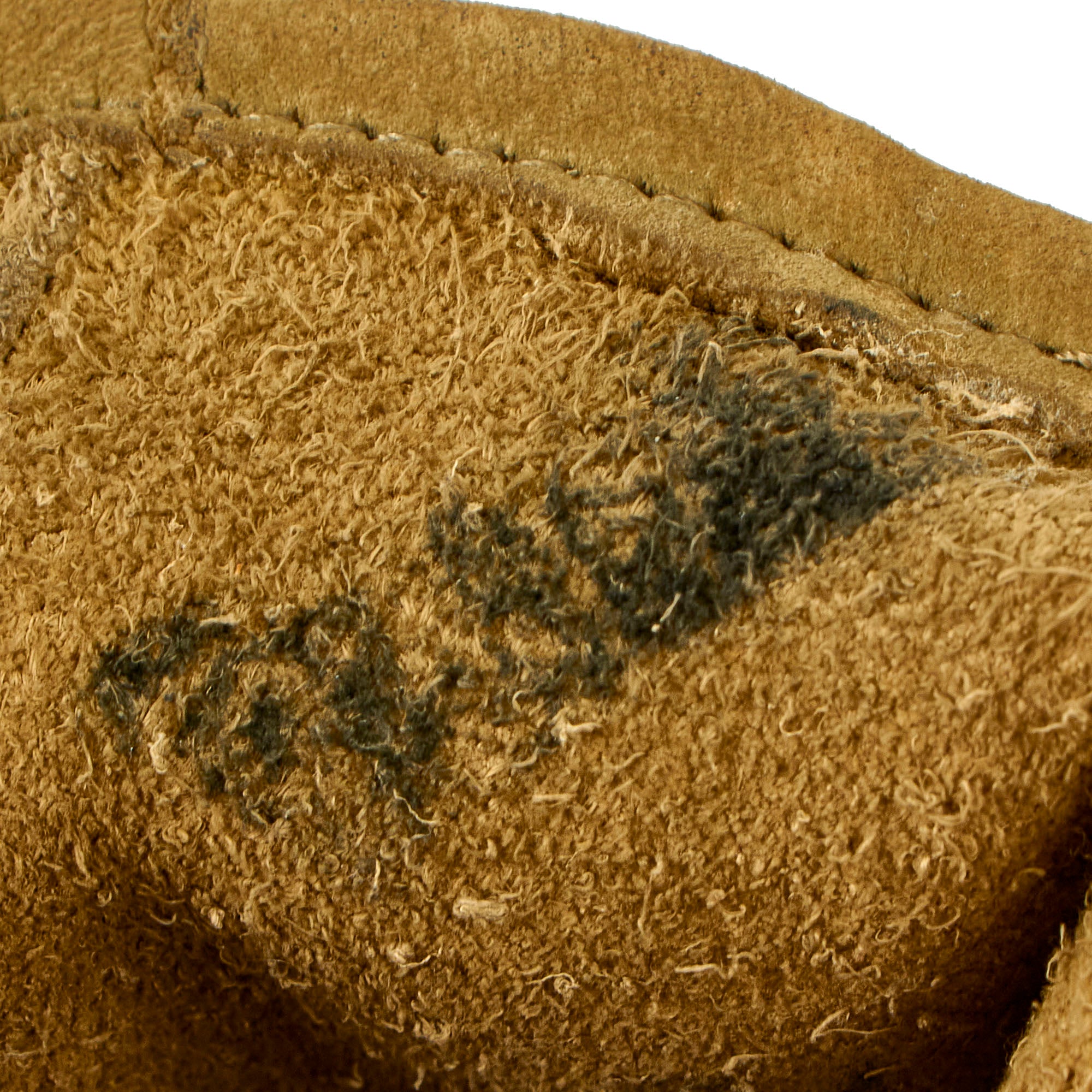 Original Item: Only One Pair Available. These are nearly impossible to find on the market today: an authentic pair of World War Two United States Airborne Paratrooper Leather Gloves as used by Paratroopers on D-day! These gloves were originally designed to be cavalry riding gloves, but were adopted for use by US airborne paratroopers during WWII as well as various other “specialty” type soldiers. They were issued with and without buckles, and this pair is the Type II version with the buckle adjustment for the wrist closure. This variation is an odd one as they have a button snap and roll buckles.