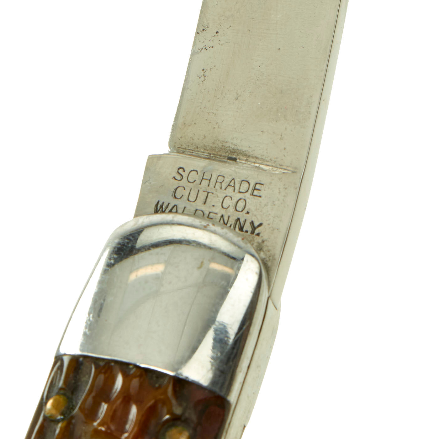 The knife still functions correctly, opening and locking into place without assistance. The lock for the release button is also fully functional. The bone handle has a very nice color and aged patina.