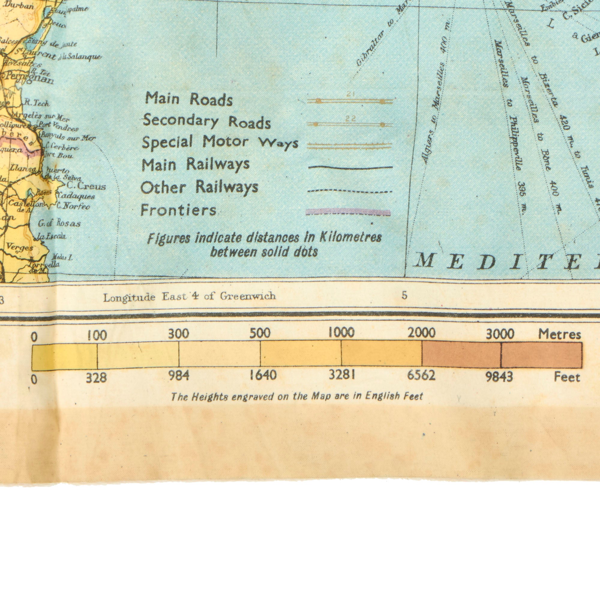 In February 1944, in preparation for D-Day, the Intelligence School No. 9 (IS9) responsible for Western European Area (WEA) produced a second edition of the rayon map of France, printed in colors on one side, 1:2.000.000 scale (1 cm for 20 km). This map, called Zones of France in reference to the division of France after the Armistice, is mainly issued to SOE agents, Jedburgh teams, Operation Groups of the OSS and American and British paratroopers involved behind enemy lines during the liberation of the territory.