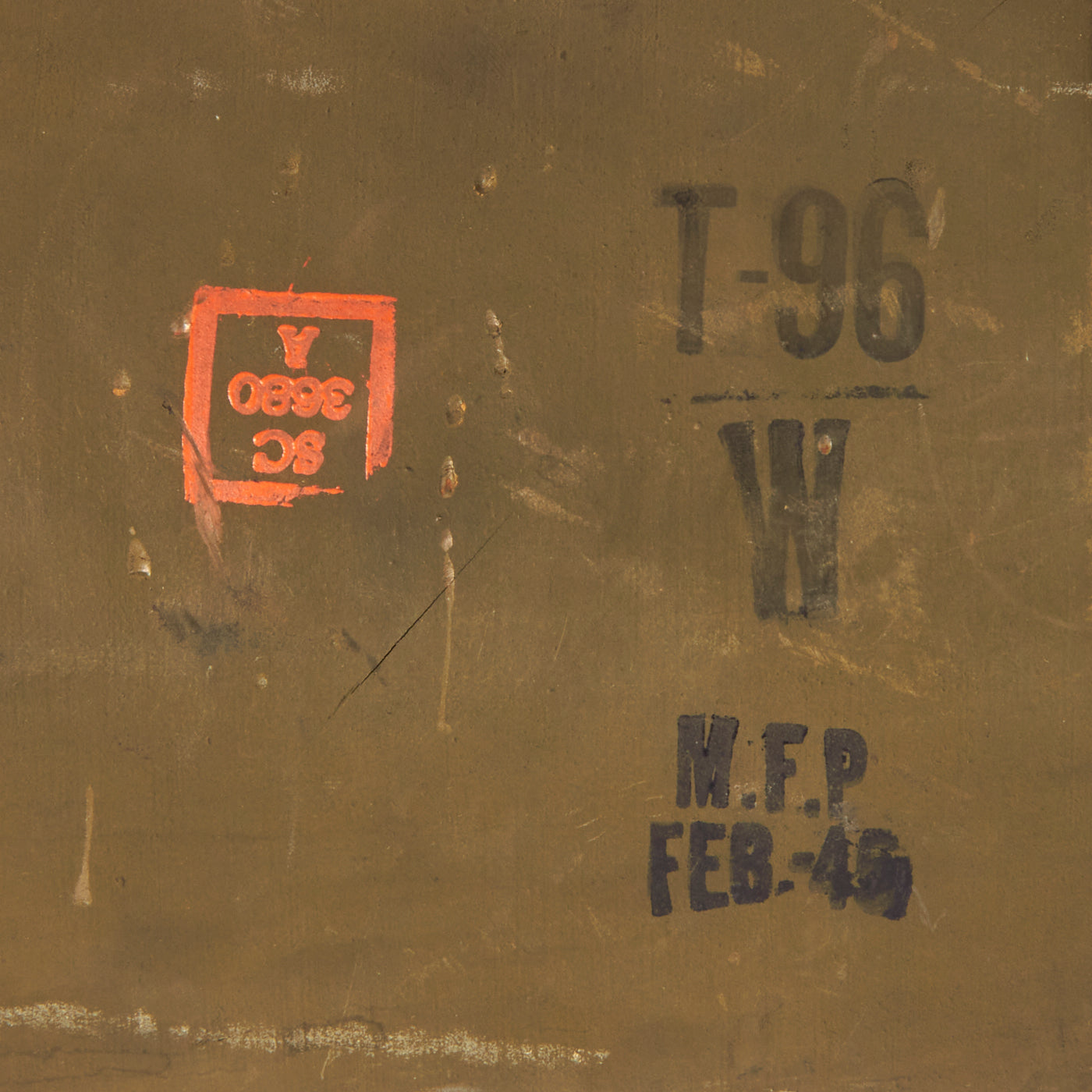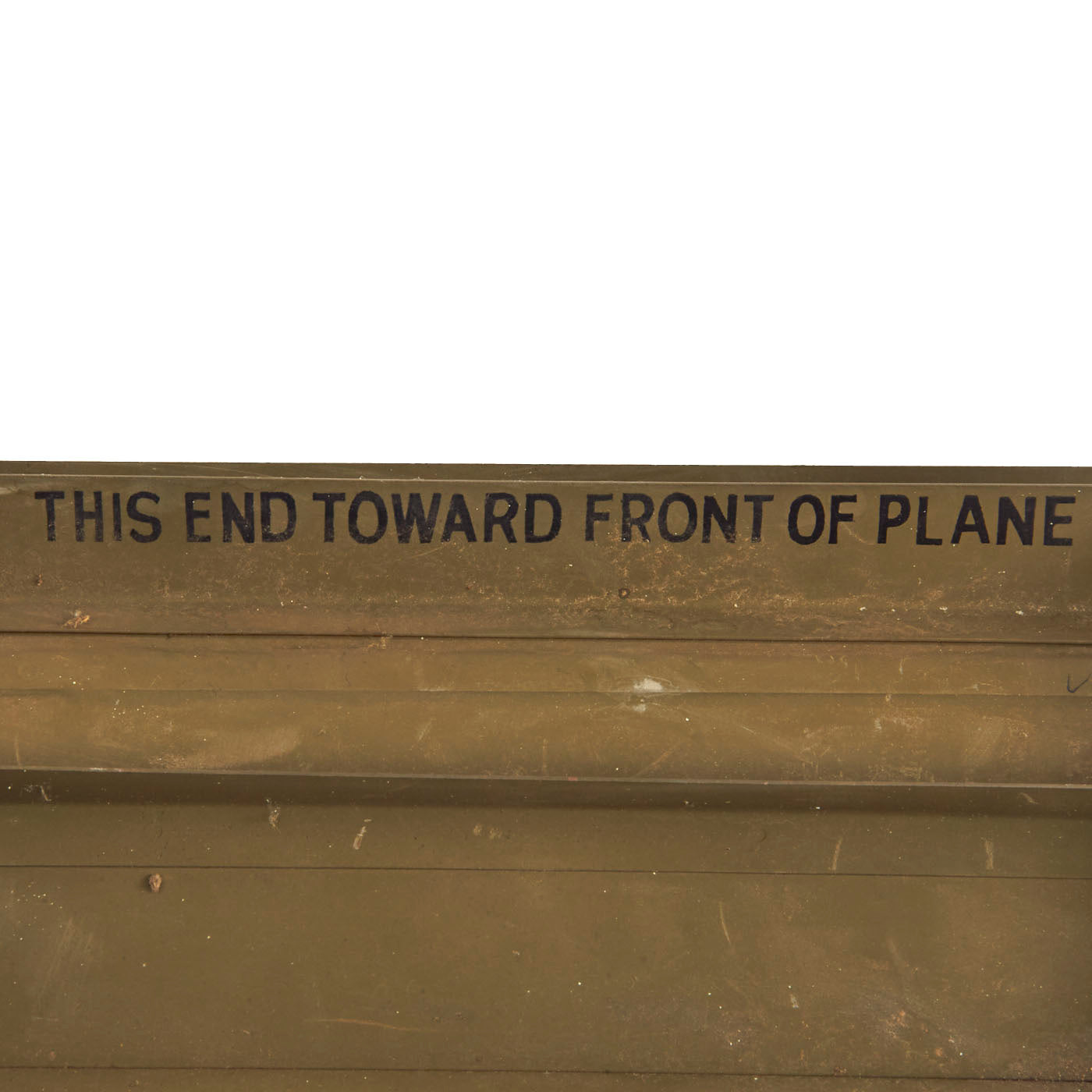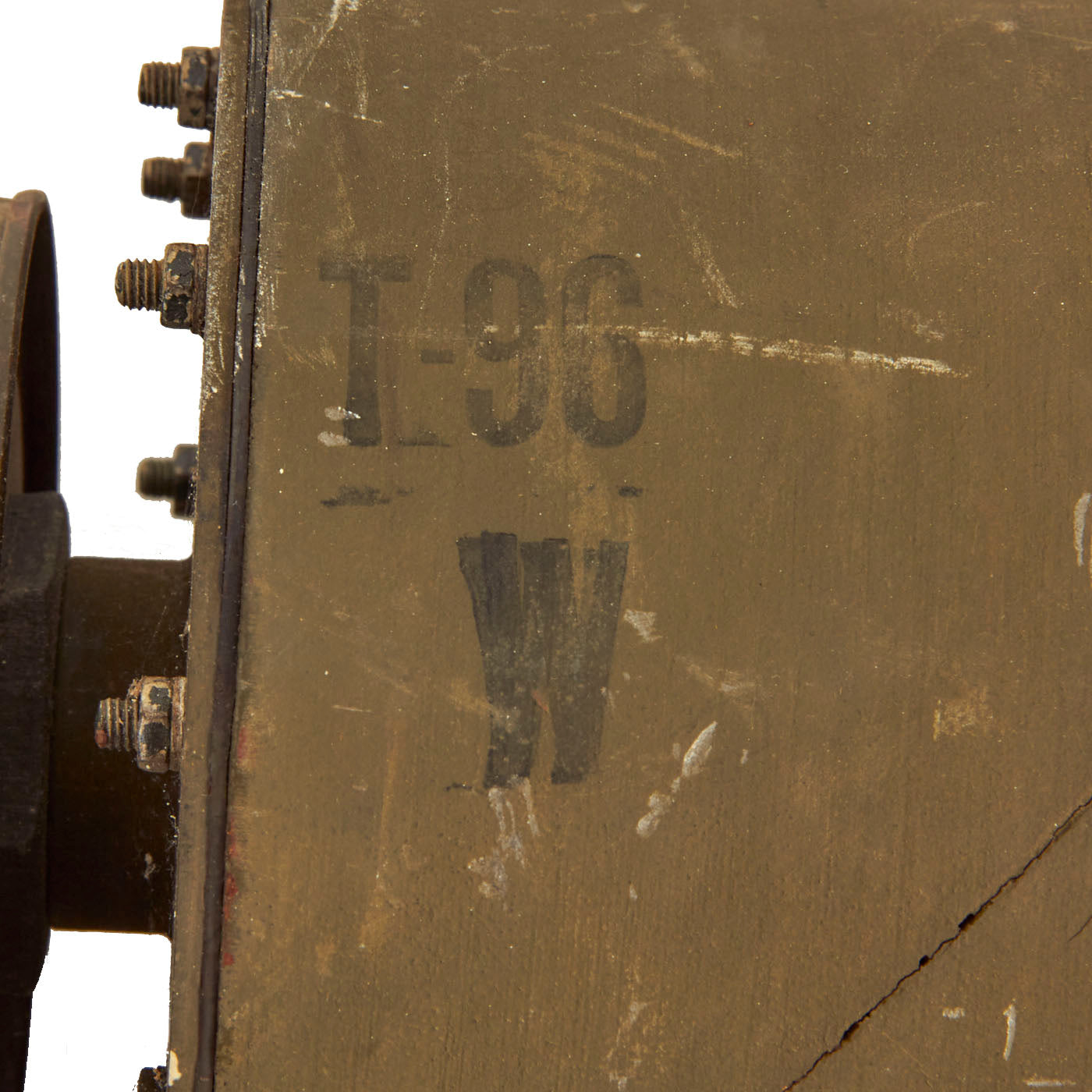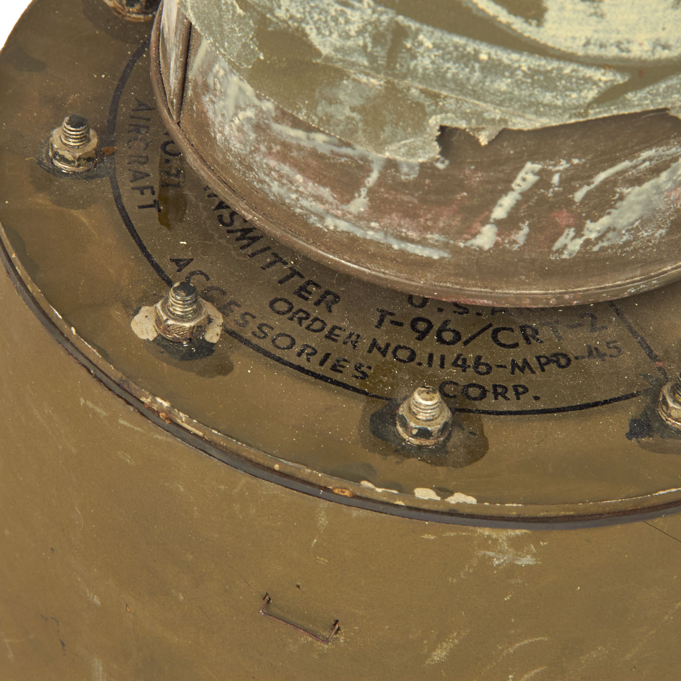 World War Two United States designed radar jamming bomb unit. Arms during descent and will jam any radar for several miles. Mounted in standard bomb racks loaded pointing backwards to the rear of aircraft so they cannot interfere with aircraft avionics during flight. Measures approximately 44 inches long with an 8 inch diameter with parachute stuffed inside bottom tube along with lead line still attached. Naturally, the jamming electronics have been removed. Spare tube piece and parachute also supplied for display. Body marked T-96 M.F.P. FEB. -45.