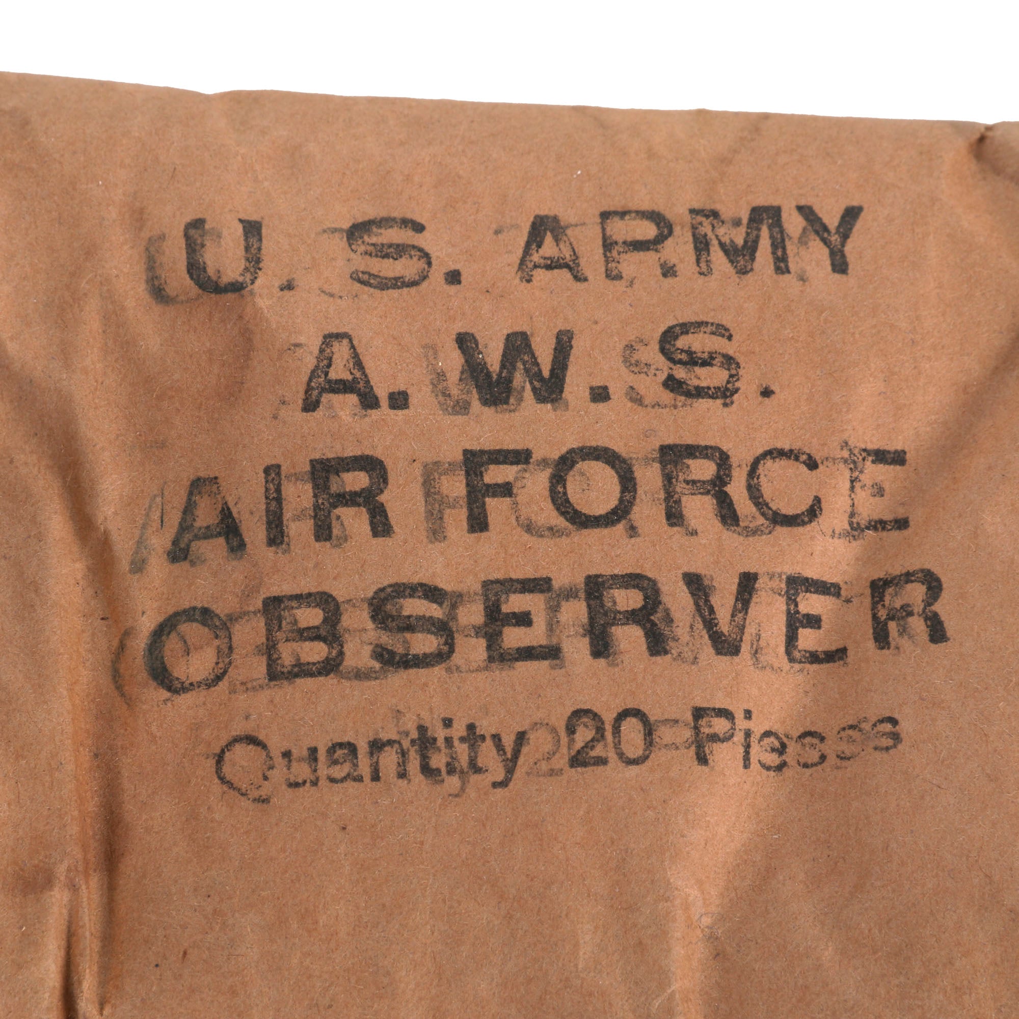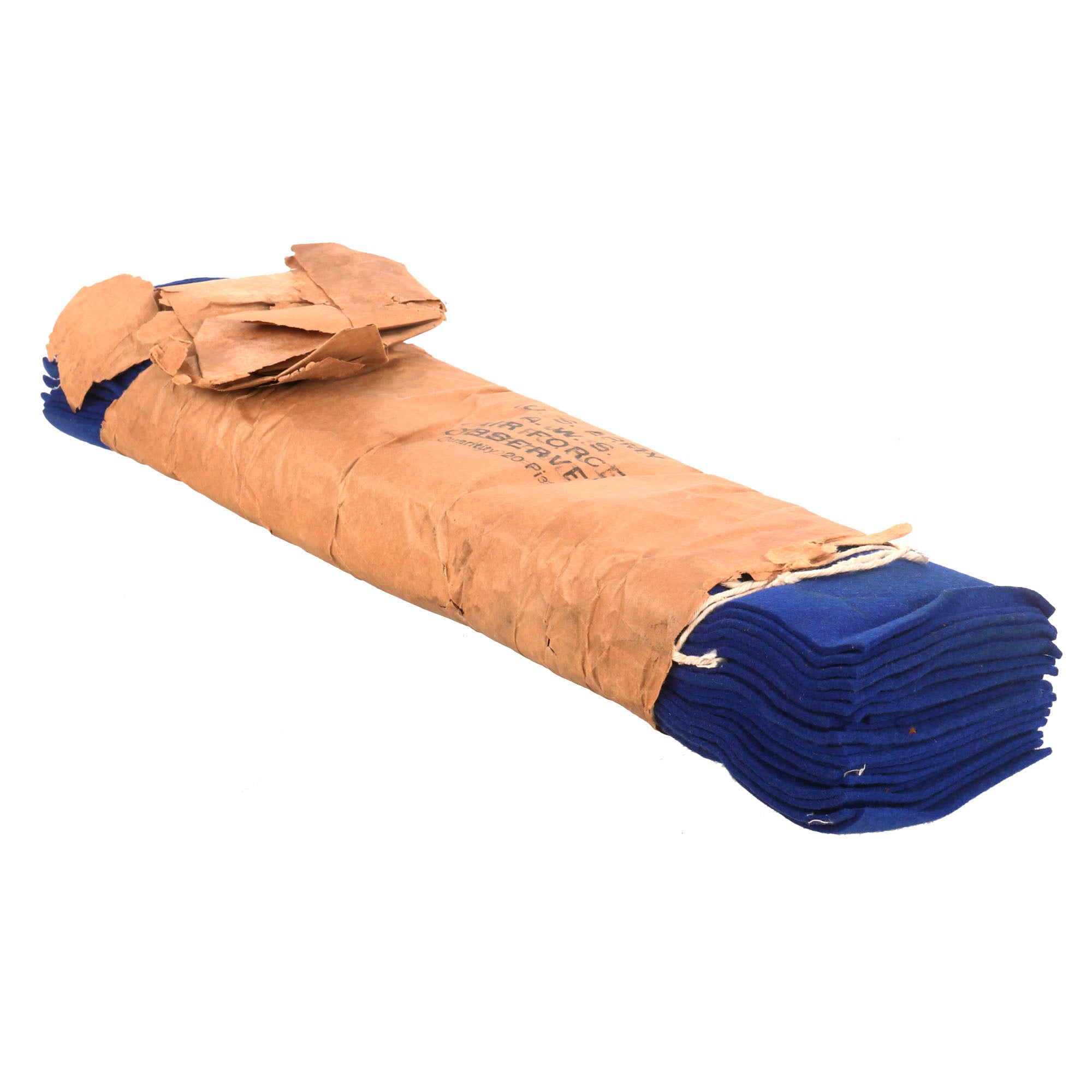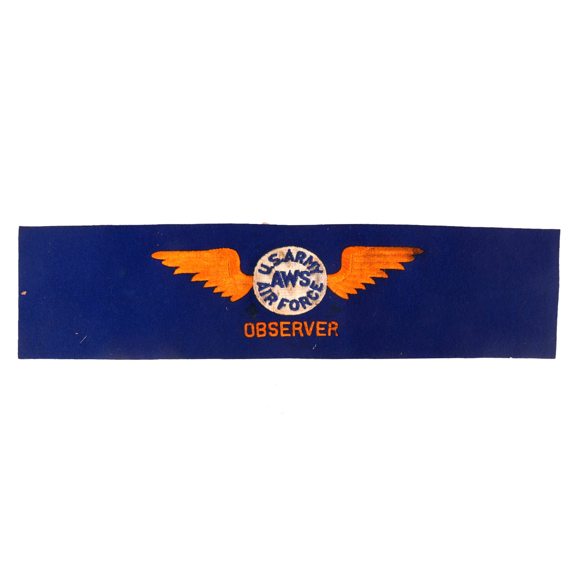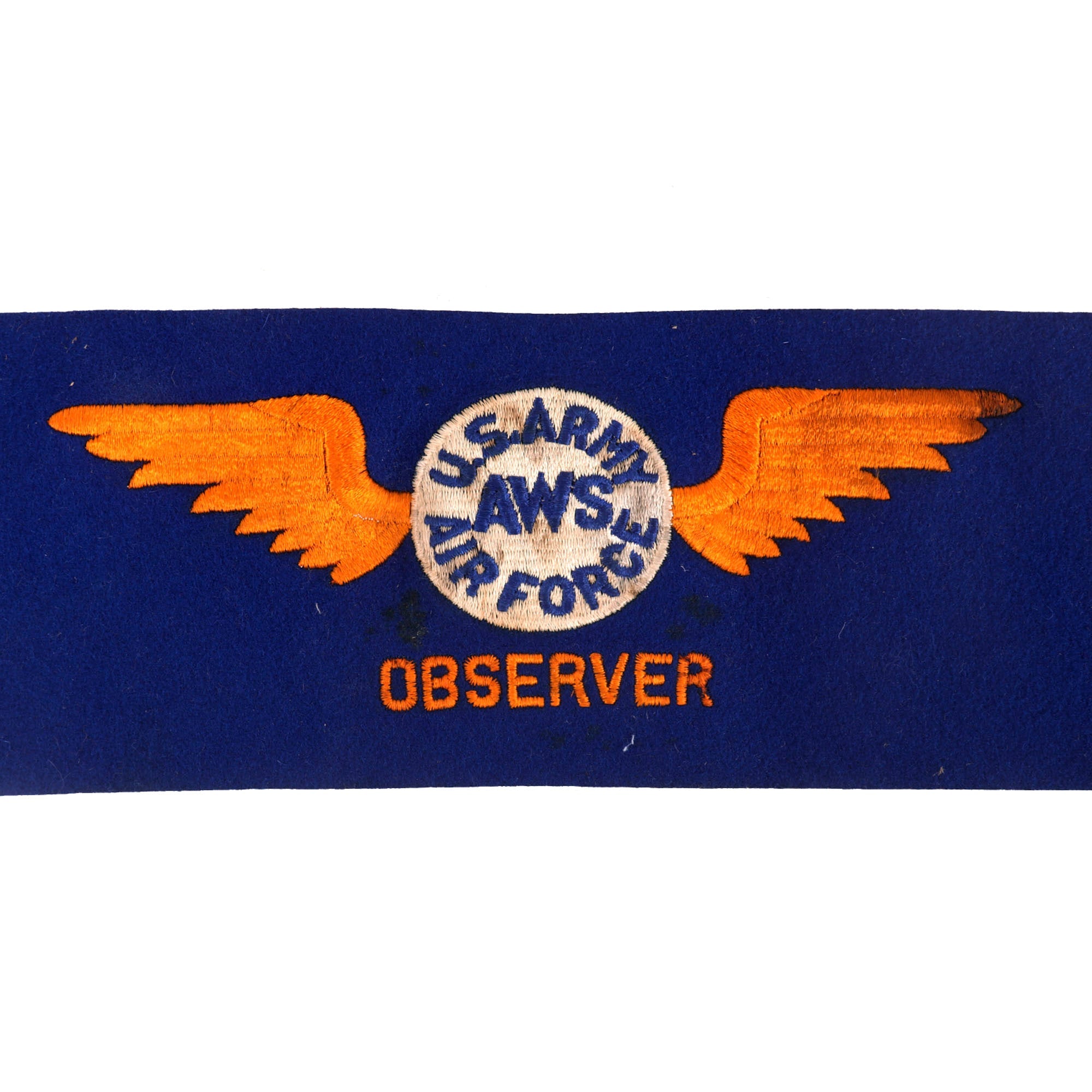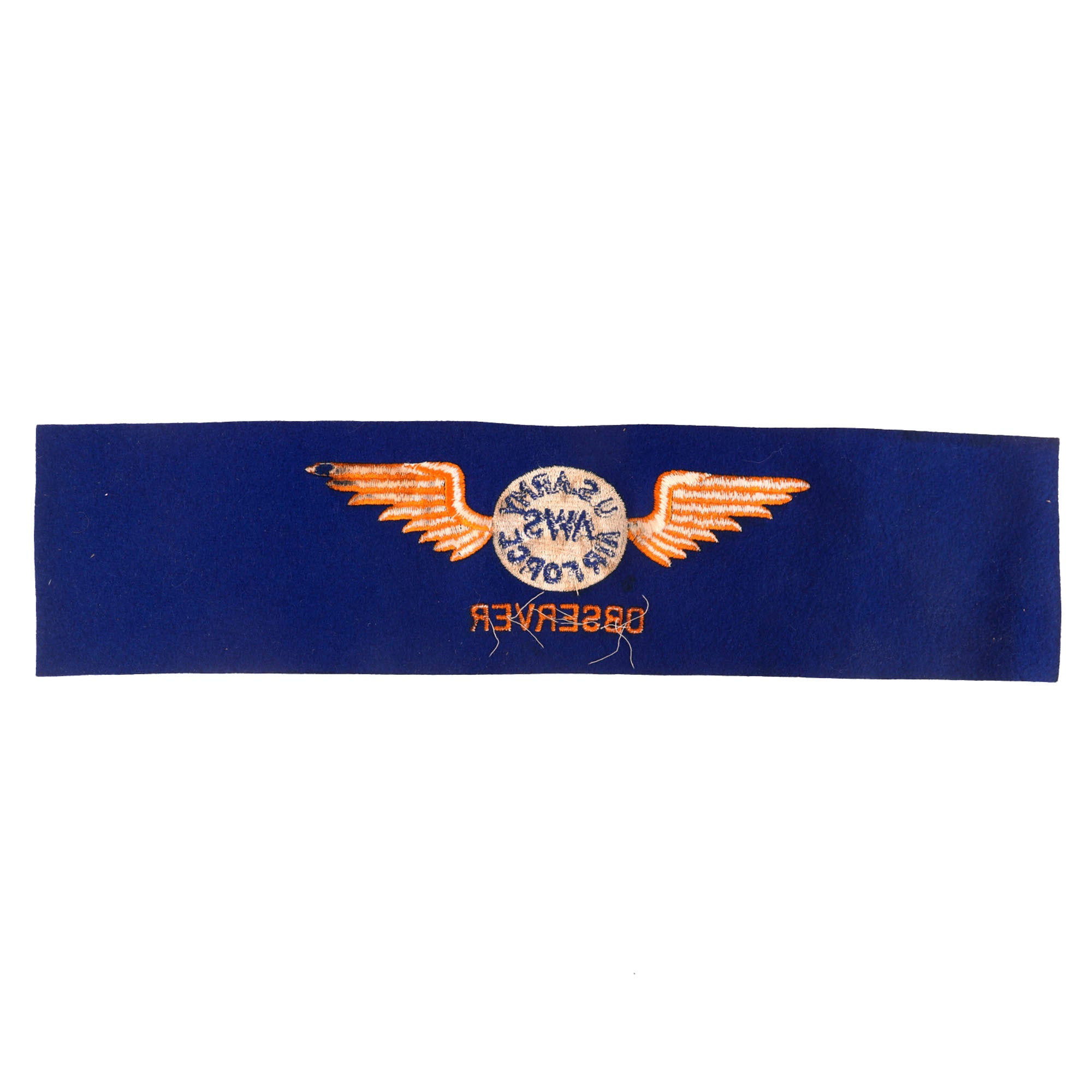 Original Item. Only One Available. During WWII, the east and west coasts of the United States were protected by civilian volunteer aircraft spotters, members of the Ground Observer Corps. The GOC was a component of the Aircraft Warning Service (AWS) that was established in May 1941 in response to the development of heavy bomber aircraft capable of flying over 1,000 miles.This is a fantastic pack of 20 unissued armbands for US Army AWS Observers, depicting the insignia with wings over OBSERVER. The armbands are still in their original packing paper with some having come out. They are each roughly 16” in lengthThis is a great lot of original armbands, ready for further research and display!Almost one million men and women–volunteer “soldiers out of uniform”–served in the AWS. Some were ground observers scanning the skies for enemy aircraft; others worked in the information and filter centers as part of the Aircraft Warning Corps, the second component of the AWS. Almost 750,000 of these volunteers served under the First Fighter Command whose jurisdiction stretched from Canada to Key West, Florida.Since it wasn’t practical to use military personnel as ground observers, the logical solution was to call on civilians to watch the skies. Newspaper ads, radio programs, and other means were used to recruit the tens of thousands of volunteers needed to join the Ground Observer Corps and man the observation posts. From all walks of life, all ages, all professions, the volunteers of the GOC were united in a common goal–to protect the United States.Over 14,000 observation posts were manned in two-hour shifts around the clock. Some were only shacks, hen houses, or junked automobiles while others were more elaborate shelters. Delaware was one of the first states to have ground observers organized and serving at observation posts.
