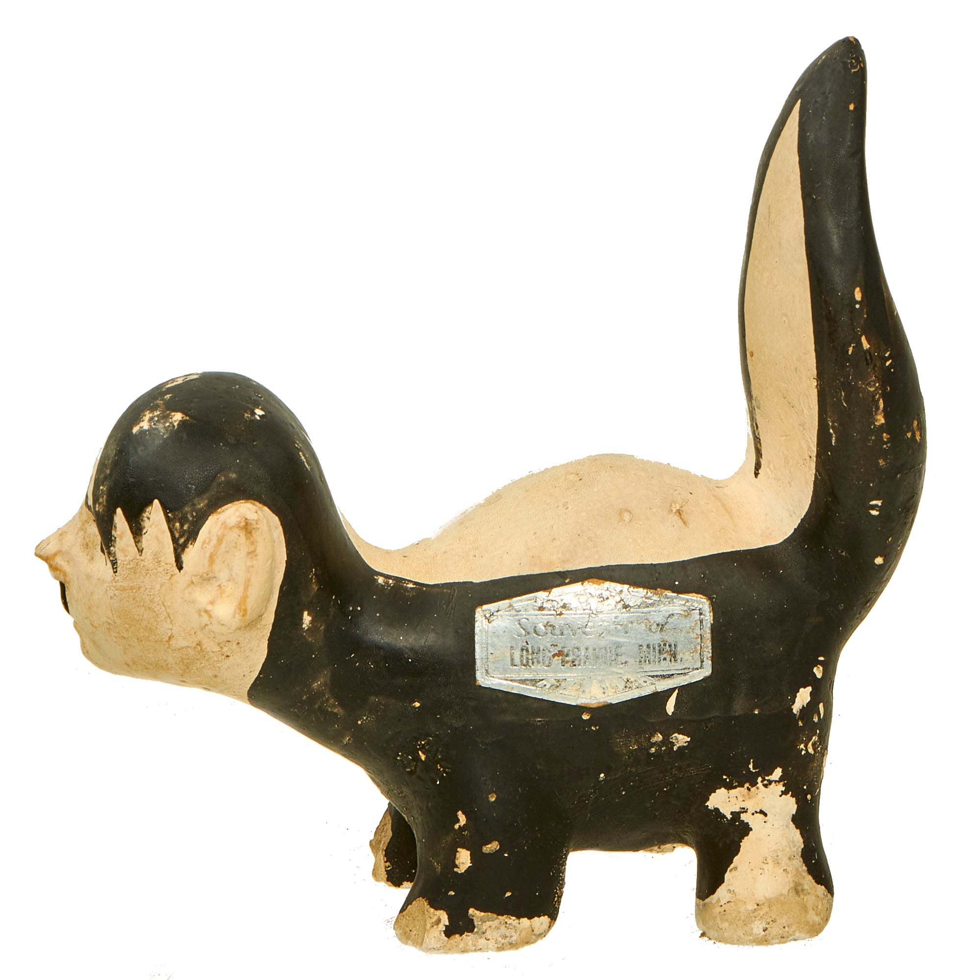The skunk does suffer from some war wounds, including paint cracking / checking, some paint deterioration, and some scratches and chips. But overall it is in very good condition considering the age and method of construction. Just the thing for any WWII home front propaganda collector!