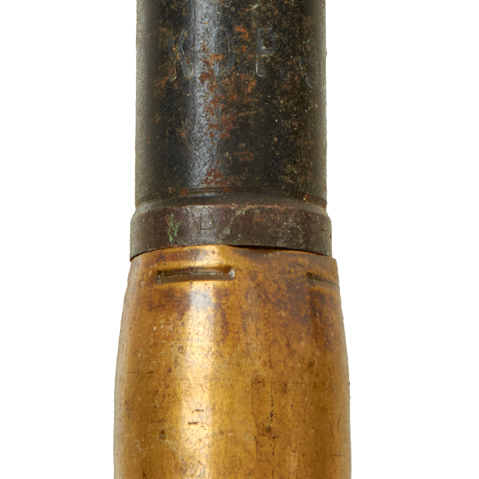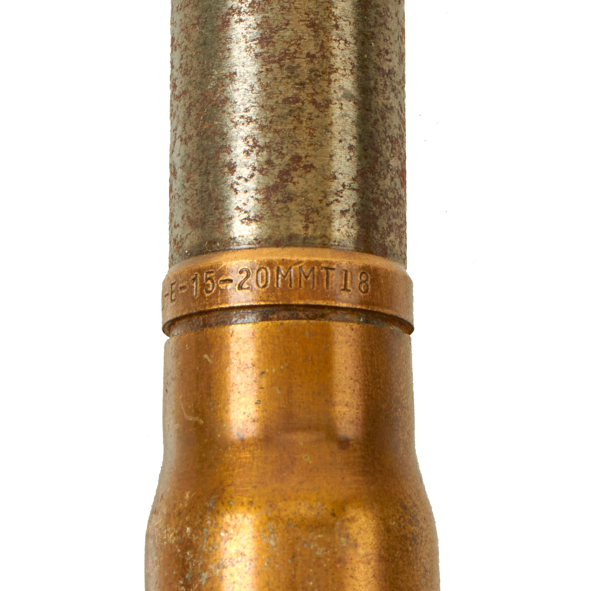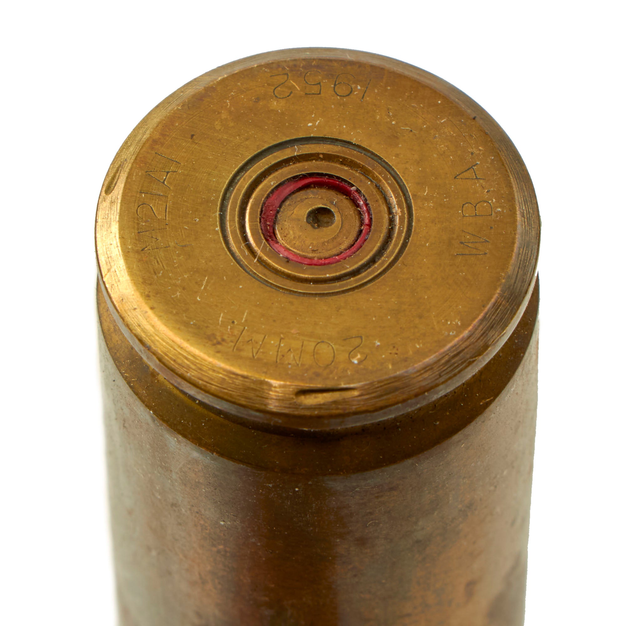 Original Items: VERY FEW Available. This is a wonderful opportunity to add one of the most collected calibers of ammunition, the 20mm. The 20 mm M99 TP cartridge is used for training, gun testing, and gull system function tests. It contains a hollow, inert projectile with a cavity for control. These rounds are all inert with deactivated primers and are in total compliance per the BATF regulations governing Ordnance.