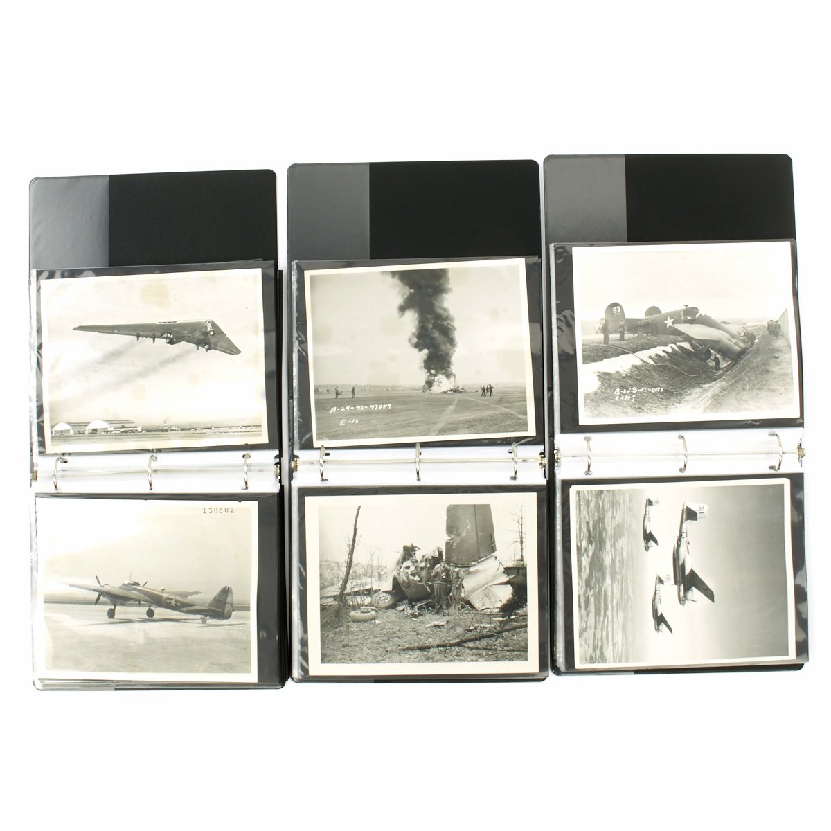 Original Items: One-of-a-kind set. This is a collection compiled by U.S. Air Force Major Walter H. Berry who served in the 30th Air Division during before his retirement in the late 1960s. This collection of official U.S. Government photos, many of them classified at the time they were printed, consist of U.S. and German aircraft from World War Two and U.S. Aircraft from the 1950s and 1960s. The airplane types are too numerous to mention all but include B-17s, B-24, a German WW2 flying wing, scores of German and American WWII fighters, post war jets, prototypes, crashes and wrecks and much more. In all nearly one hundred mostly 8 x 10 photographs printed on original vintage paper are neatly organized in three large ring binders. This is a rare and unique collection complied by an U.S. Air Force officer over the course of his career from WW2 to the Vietnam War.