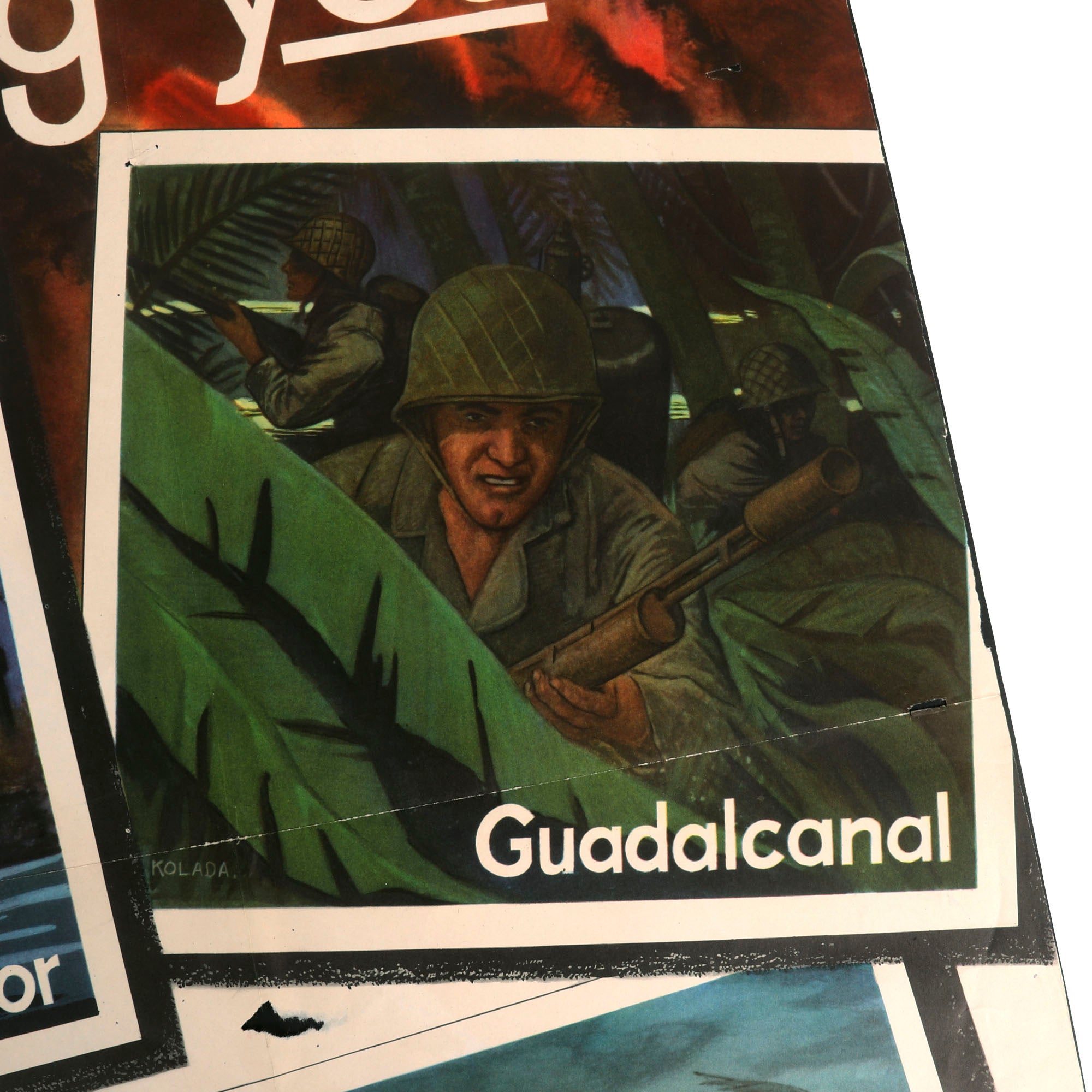 Original Item. Only One Available. Posters have long been used as a means to spread ideas and promote causes. During World War II, they were used to generate patriotism, sway public opinion and spread propaganda. They spoke from a position of authority to unite people in a common cause. These propaganda posters were often displayed in libraries, post offices, schools and factories. They addressed a number of home and war front issues including worker productivity, security, food rations and war bonds. They were all part of a national and international campaign to support the war effort during WWII.