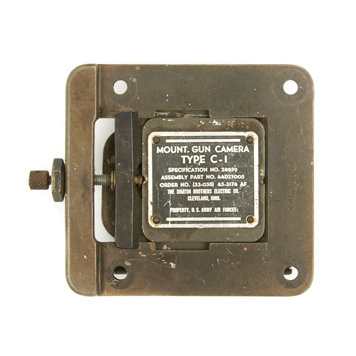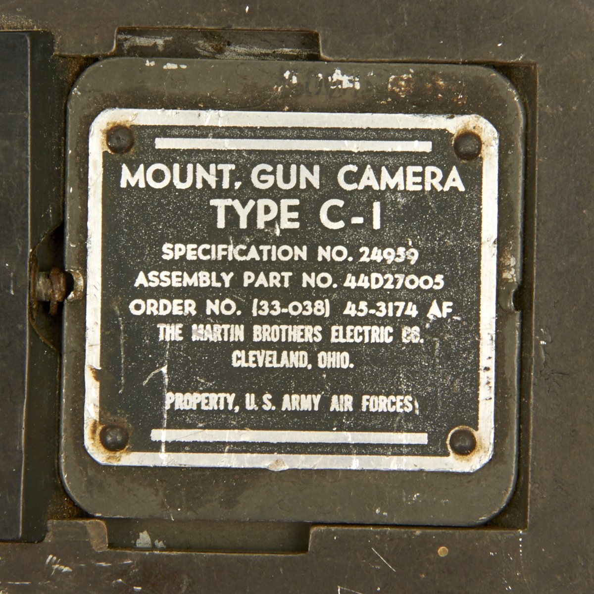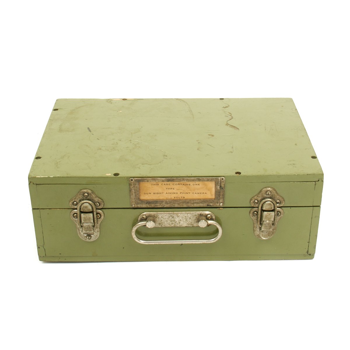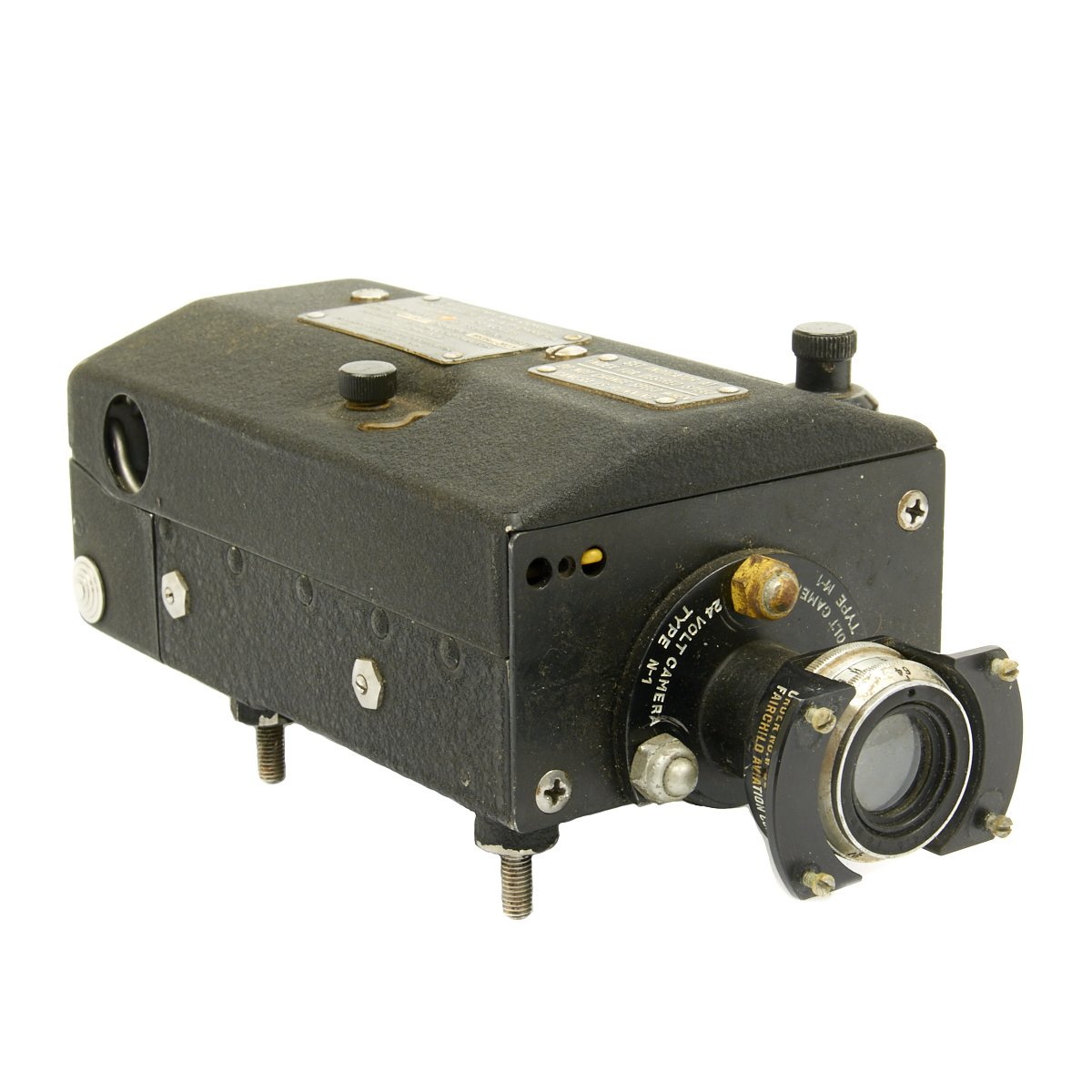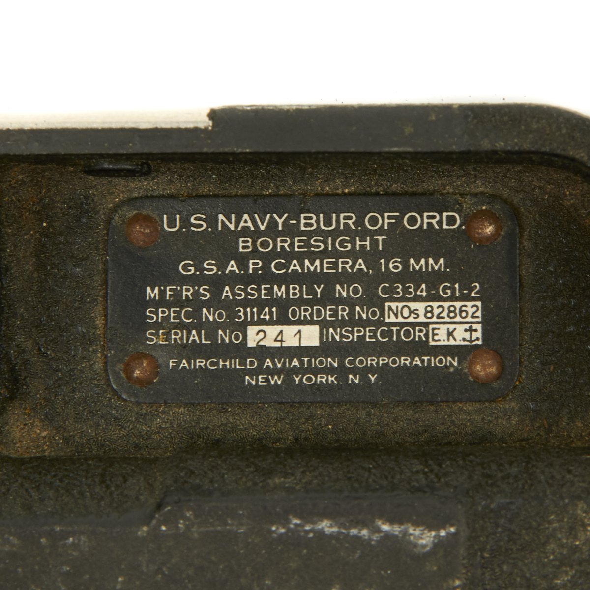 Original Item: Only One Available. This is a wonderful complete G.S.A.P. (Gun Sight Aim Point) 16mm gun sight movie camera with 35mm 3.5 lens and yellow filter. This camera was the standard United States Army Air Force cine-gun camera during World War II. It was used mostly on fighter aircraft such as the P-51, P-47 and P-38 to record and confirm hits during air to air and air to ground gunnery. The camera operated only when the aircraft's gun trigger button was pressed. This type of camera was also fitted to the remote gun turret aiming controls of the Boeing B-29 heavy bomber.