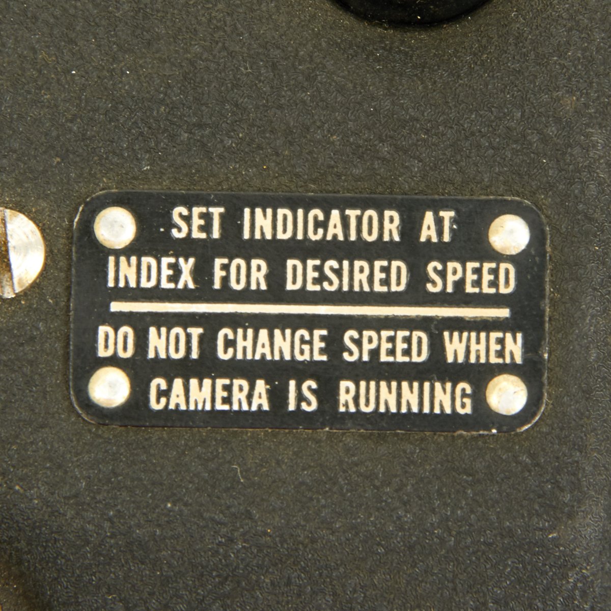 The film pressure plate is a sheet of glass with an etched cross-hair, ensuring that the resulting image shows the target accurately. The film transport was a variable speed electric motor drive, 16 (normal speed) to 64 (slow motion) frames per second, powered via connecting cable from the aircraft’s DC power grid. The camera was activated with a solenoid switch connected to gun trigger mechanism, routed through an intervalometer, usually set to activate the camera for 5 seconds each time the gun was fired.