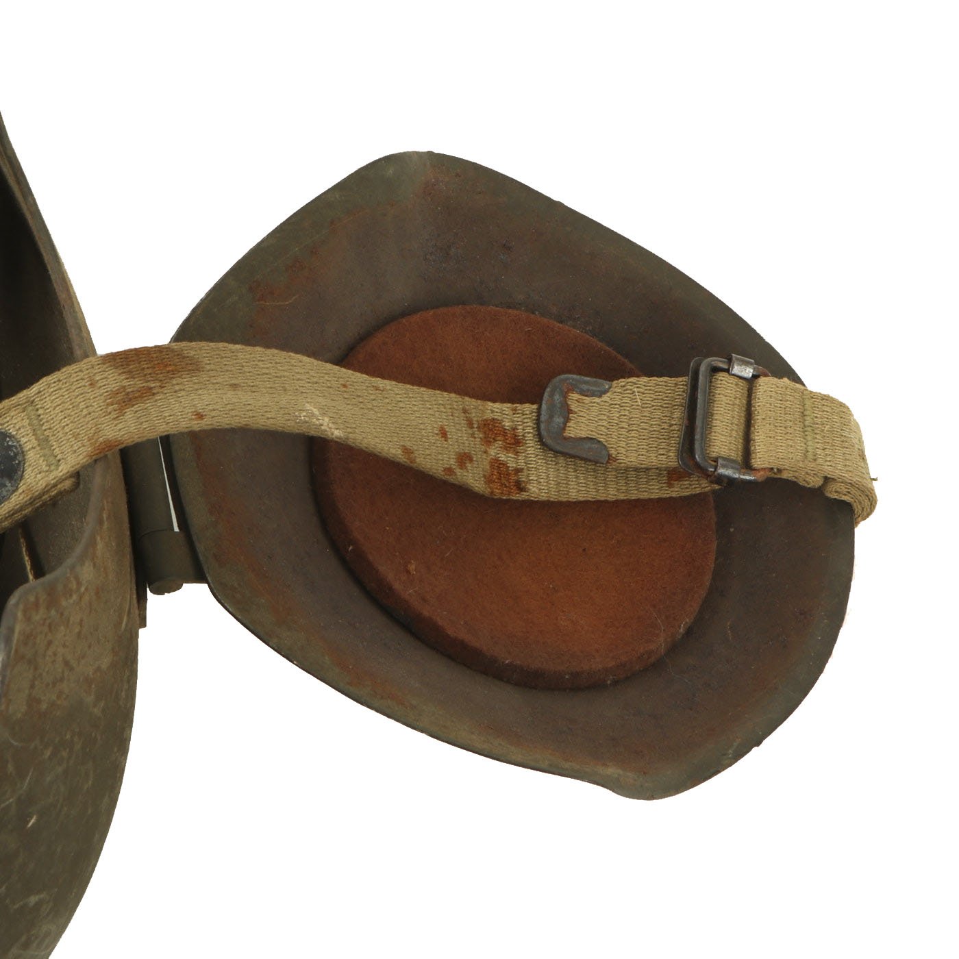 - Original U.S. WWII USAAF Bomber Crew M5 Steel FLAK Helmet complete with liner and ear cup pads.