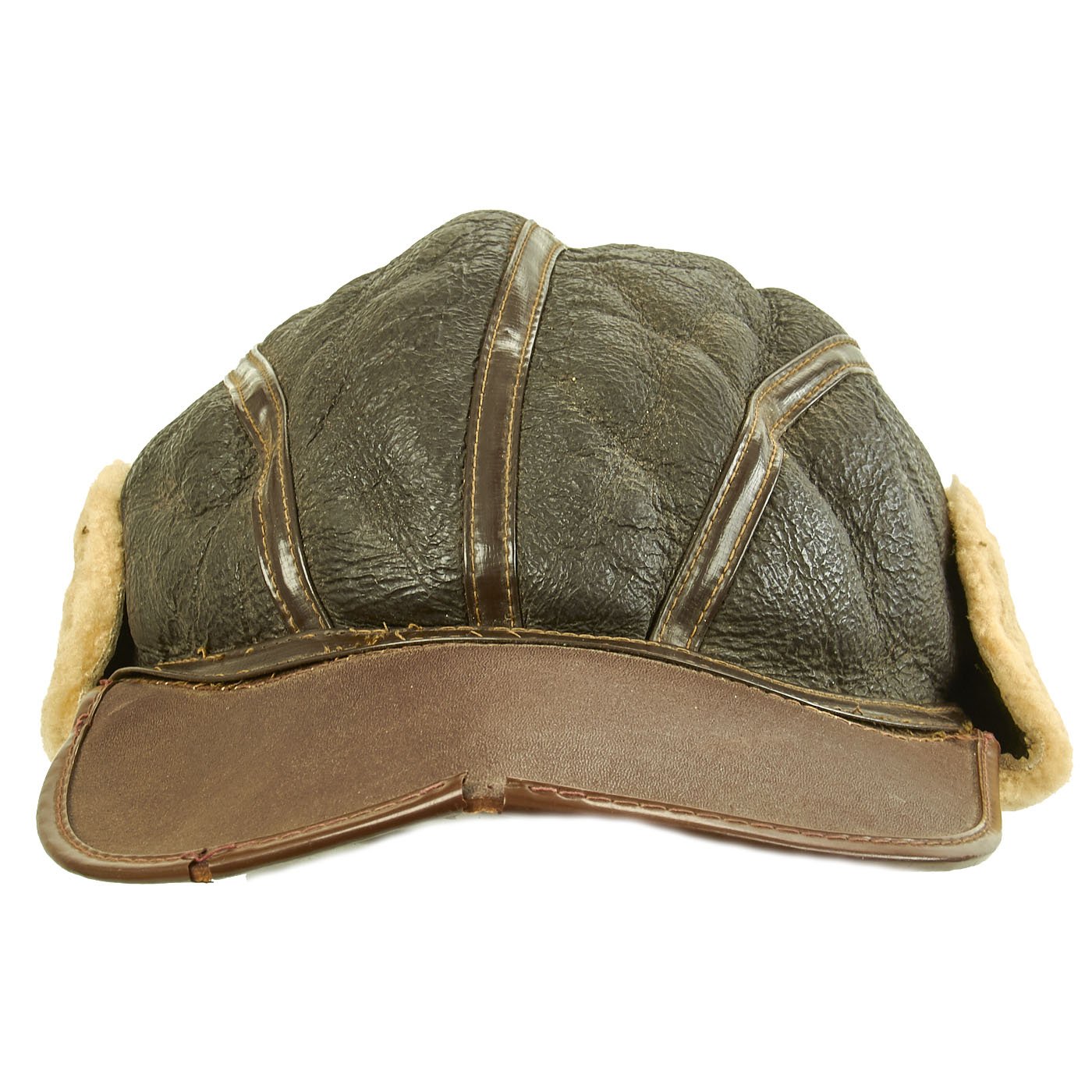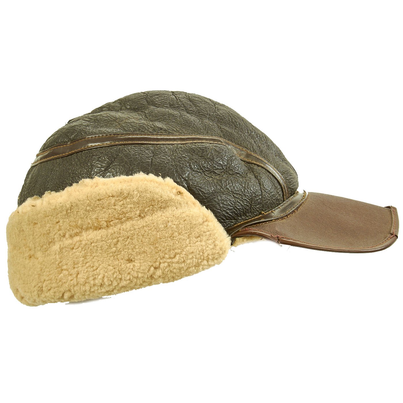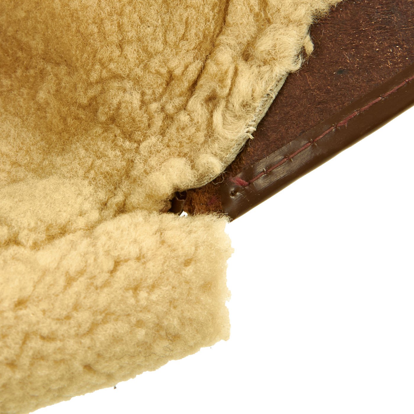 Original Item: Only One Available. This is a nice example of a U.S. WWII Army Air Forces B-2 Shearling Leather Billed Cap. These were designed for cold weather as well as sun protection for the eyes. Period photographs show these being used by Bomber Air Crew and Gunners, as well as members of the ground grew. It used to be very common for Air and Ground crew alike to paint their name underneath the bill, and then turn it upward so that others would easily know who they were.