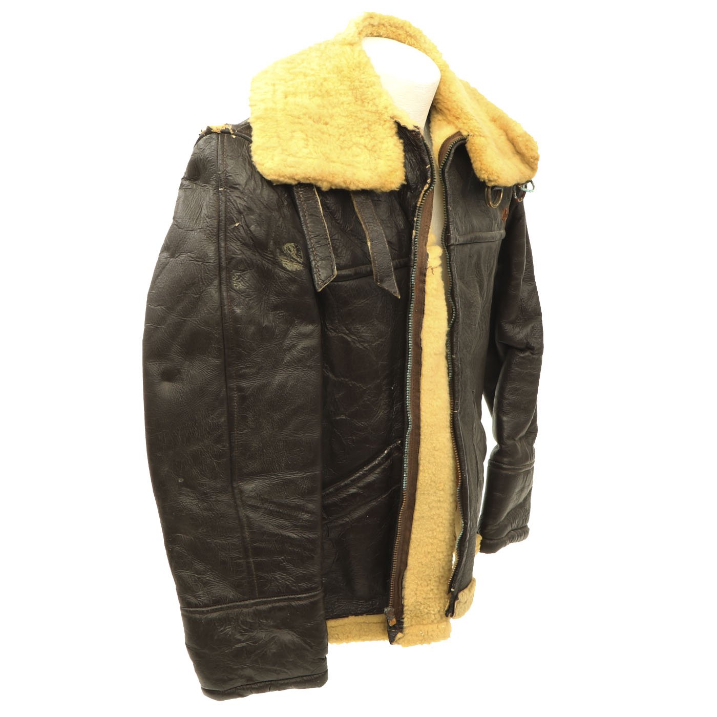 Original Item: Only One Available. During World War Two the B-3 was a jacket designed specifically for the high-altitude needs of bombers. This was a bulky sheepskin jacket with a heavy-duty sheep-fur lining meant to keep men warm 25,000 feet in the air. For extra protection, the wide sheepskin collar could be closed with two leather straps. Far bulkier than typical flight jackets, the B-3 does not have a knit waistband and trim fit that made the other jackets famous. Rather its warmth and durability made it a hit, even with Army General George S. Patton. The B3 was heavy-duty jacket designed for the sub-freezing temperatures of high-altitude flying. Today multiple reproduction are produced and many cost well over $1000 because the B-3 is a great, time-tested option.