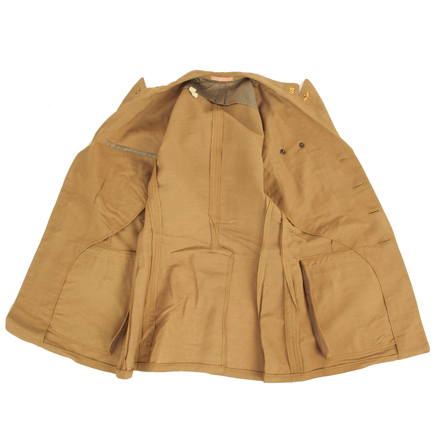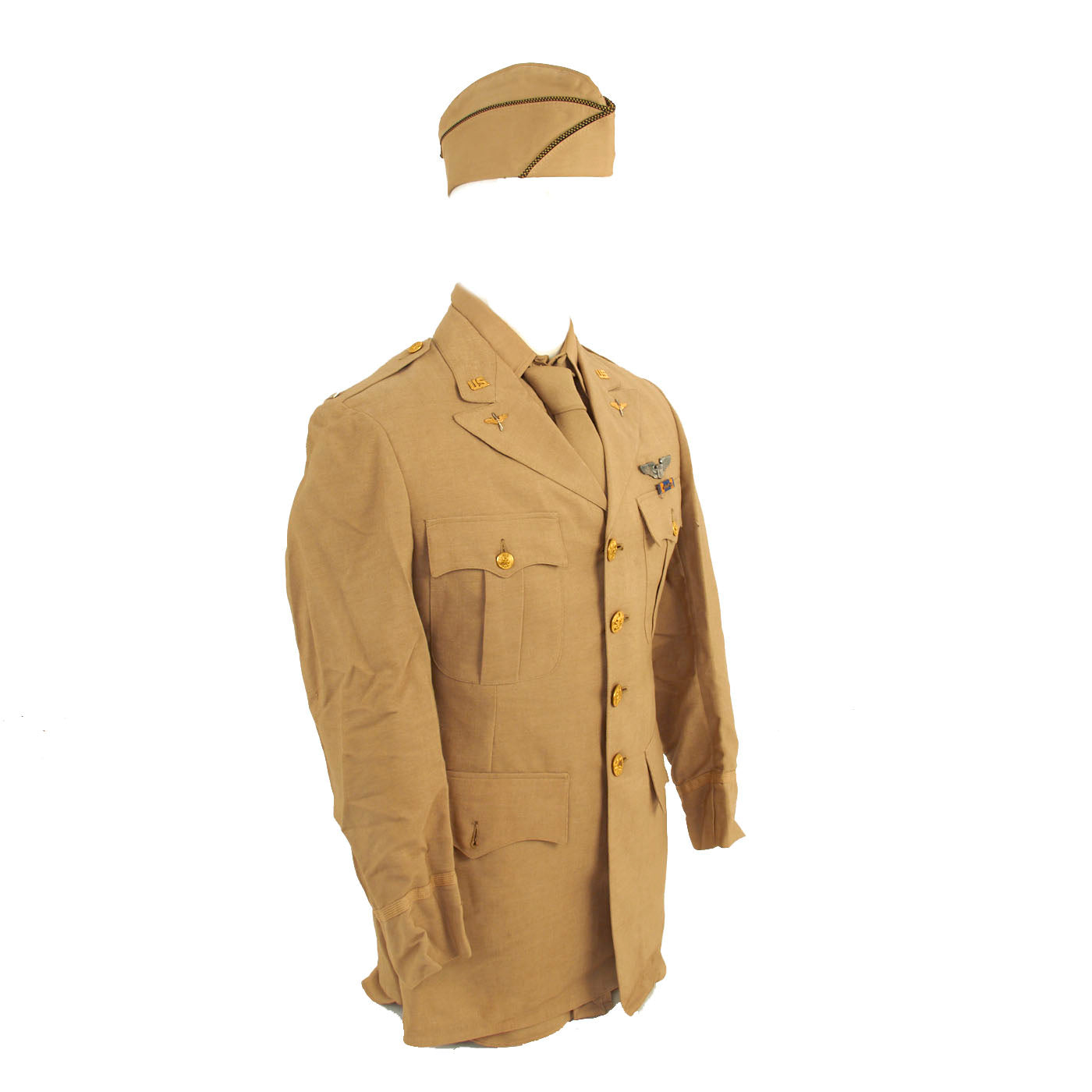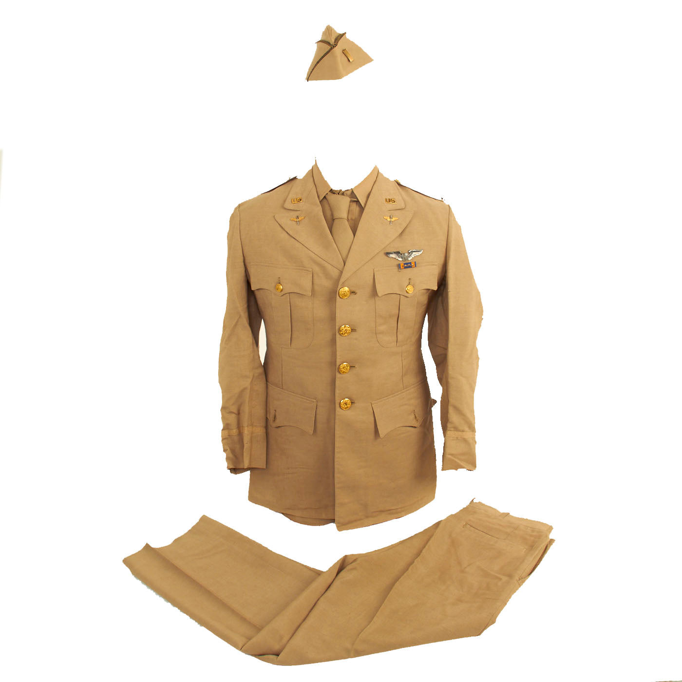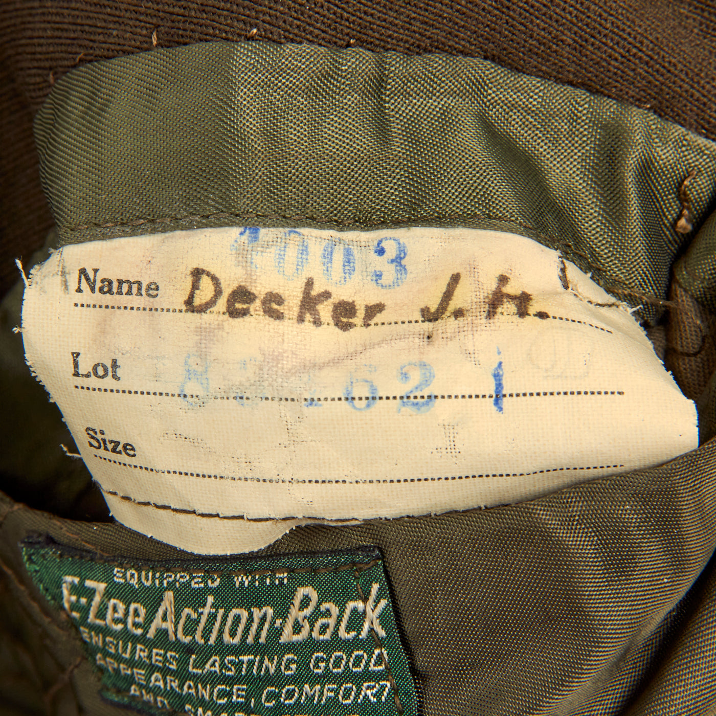 - Uniforms and Covers: This is a tricky pile of uniforms. As with most encountered military uniforms you will always find multiple names, laundry numbers and service numbers written in them, in this case it’s all a single name, JG Decker. The uniforms are all identical to the ones that would have been worn by Wiles including rank and awards. These very well could have been his and he just never wrote his name in them, but we cannot confirm this. It is our belief however that these did belong to Wiles due to them being original to the grouping when we obtained it. The items include both summer weight and Winter Class A jackets, trousers, garrison caps, ties and more. All uniform items are in wonderful condition and display wonderfully alongside the rest of the grouping.