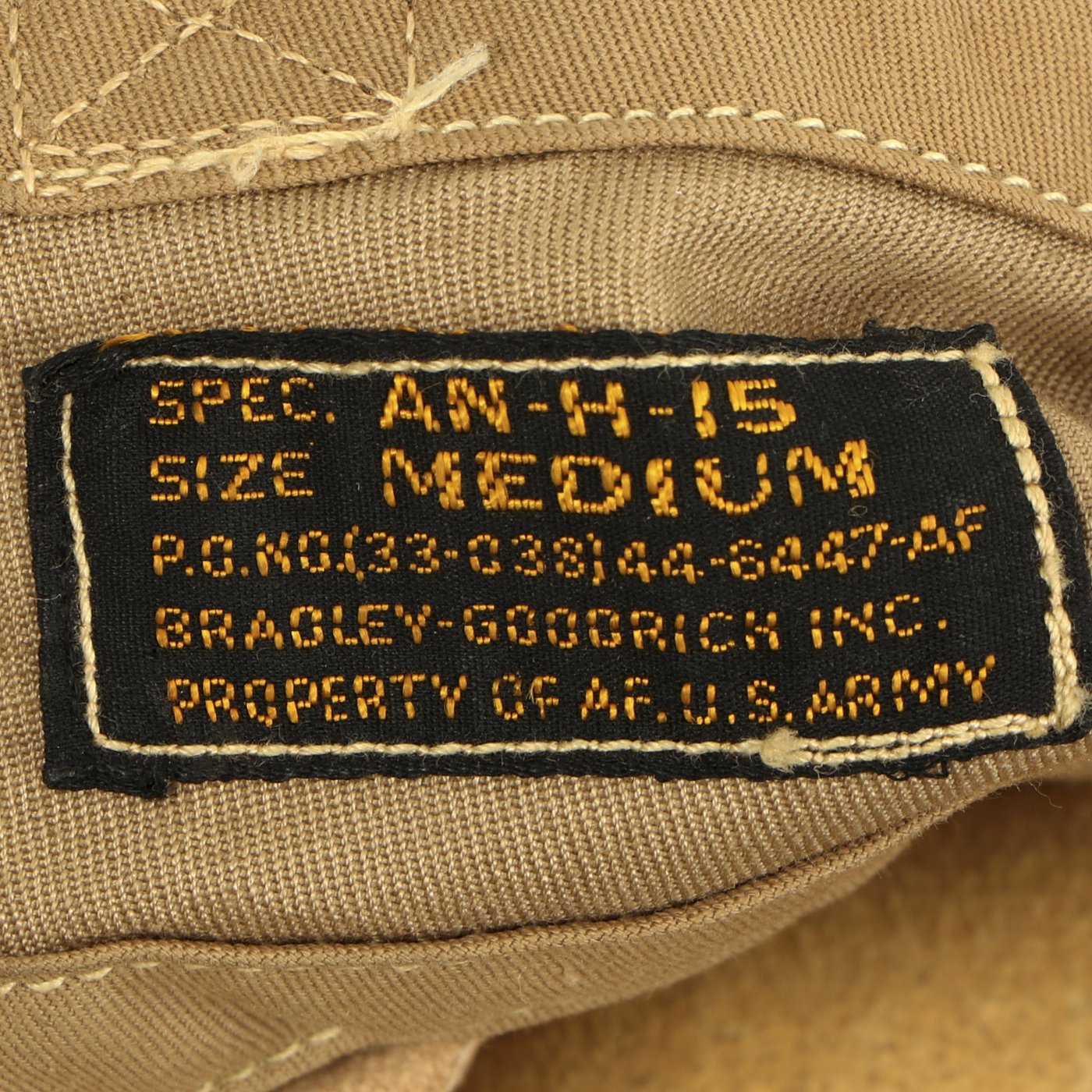 - WWII USAAF Khaki Summer weight flight helmet type AN-H-15 made by BRADLEY-GOODRICH CO.. Size MEDIUM offered in very good condition. The helmet does not appear to have been worked much, if at all. Chin strap is intact and excellent.