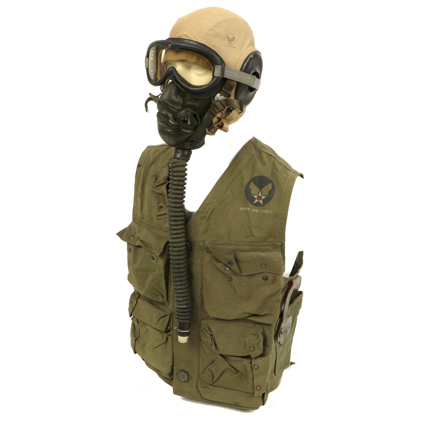 Original Items: Only One Set Available. This is a set of equipment as worn by a World War Two American pilot of the Army Air Force. The set includes the following items: