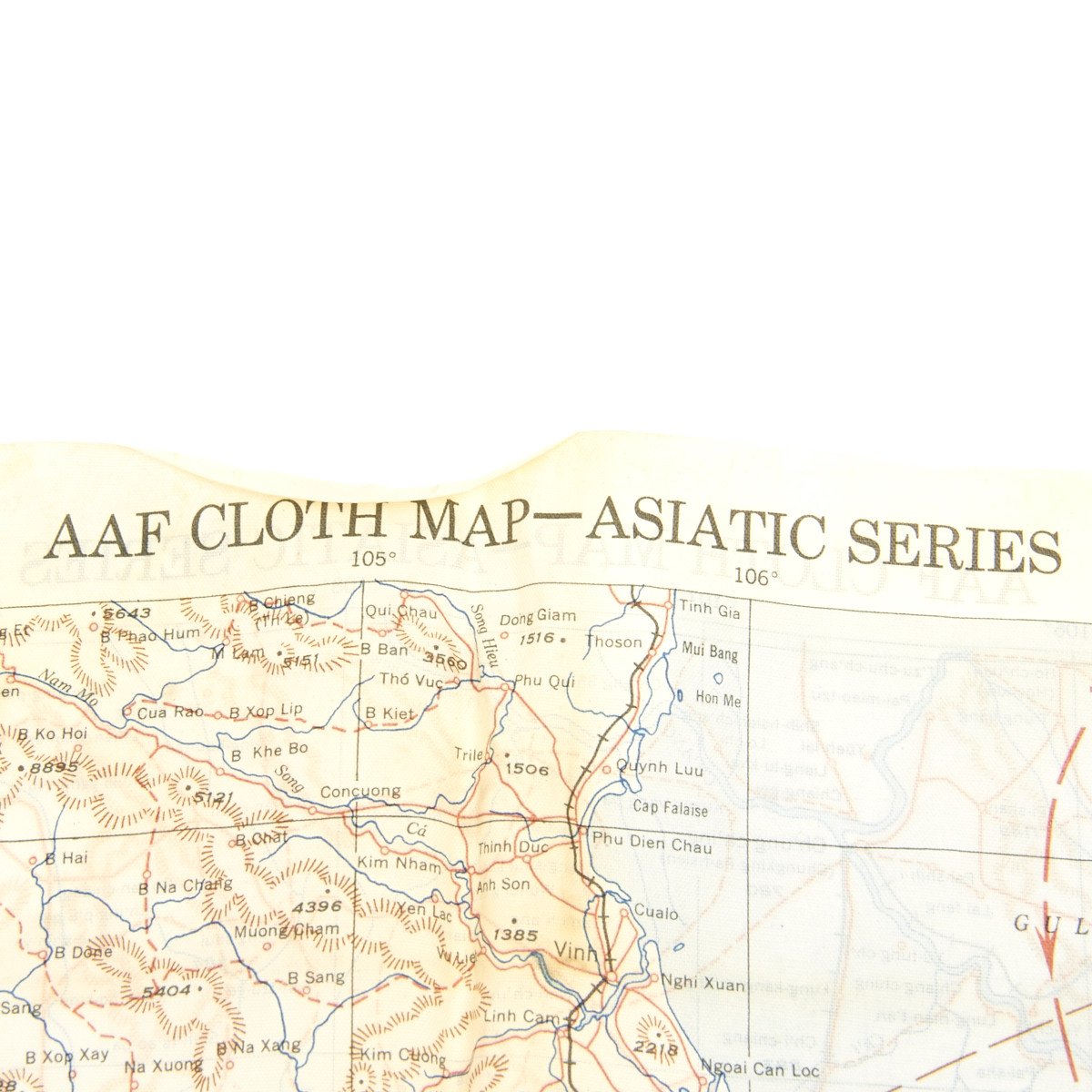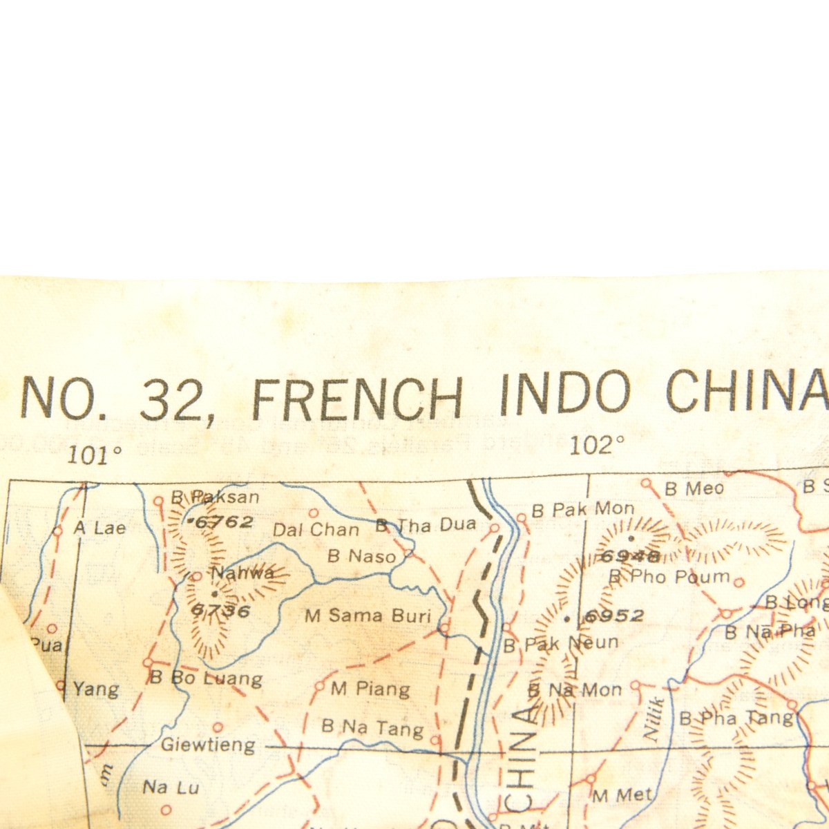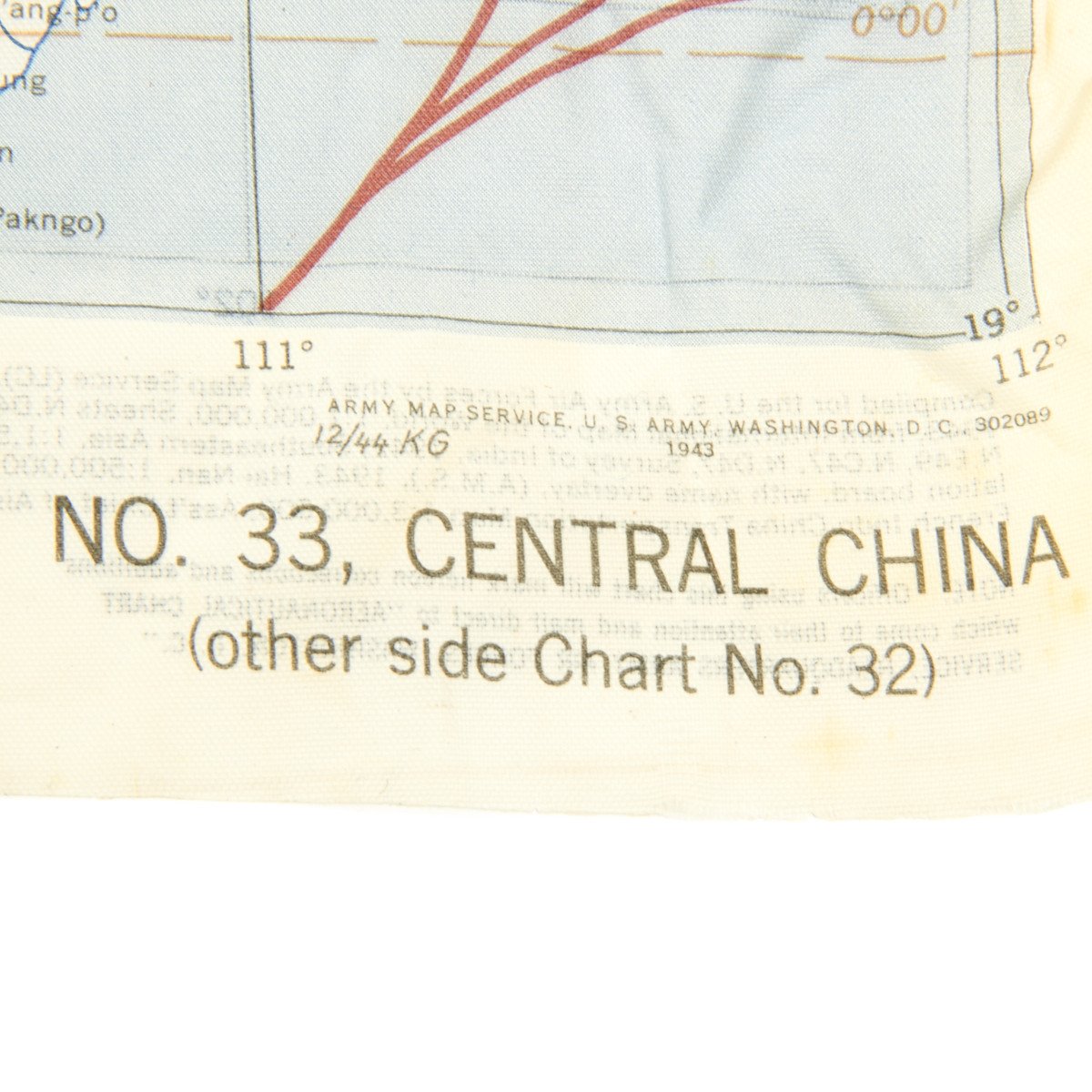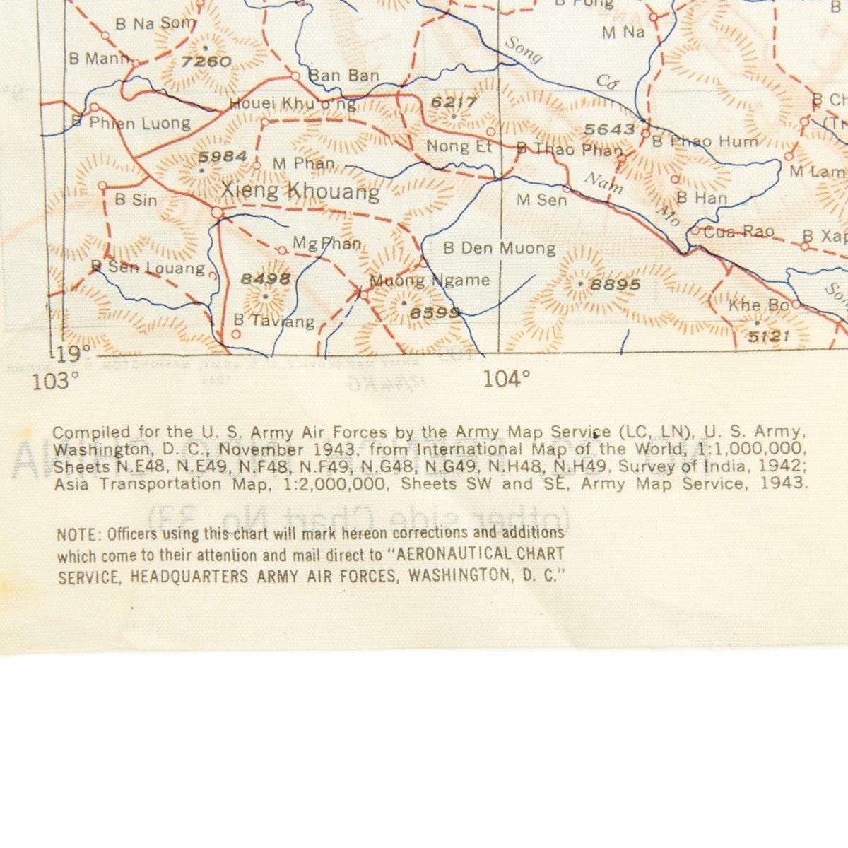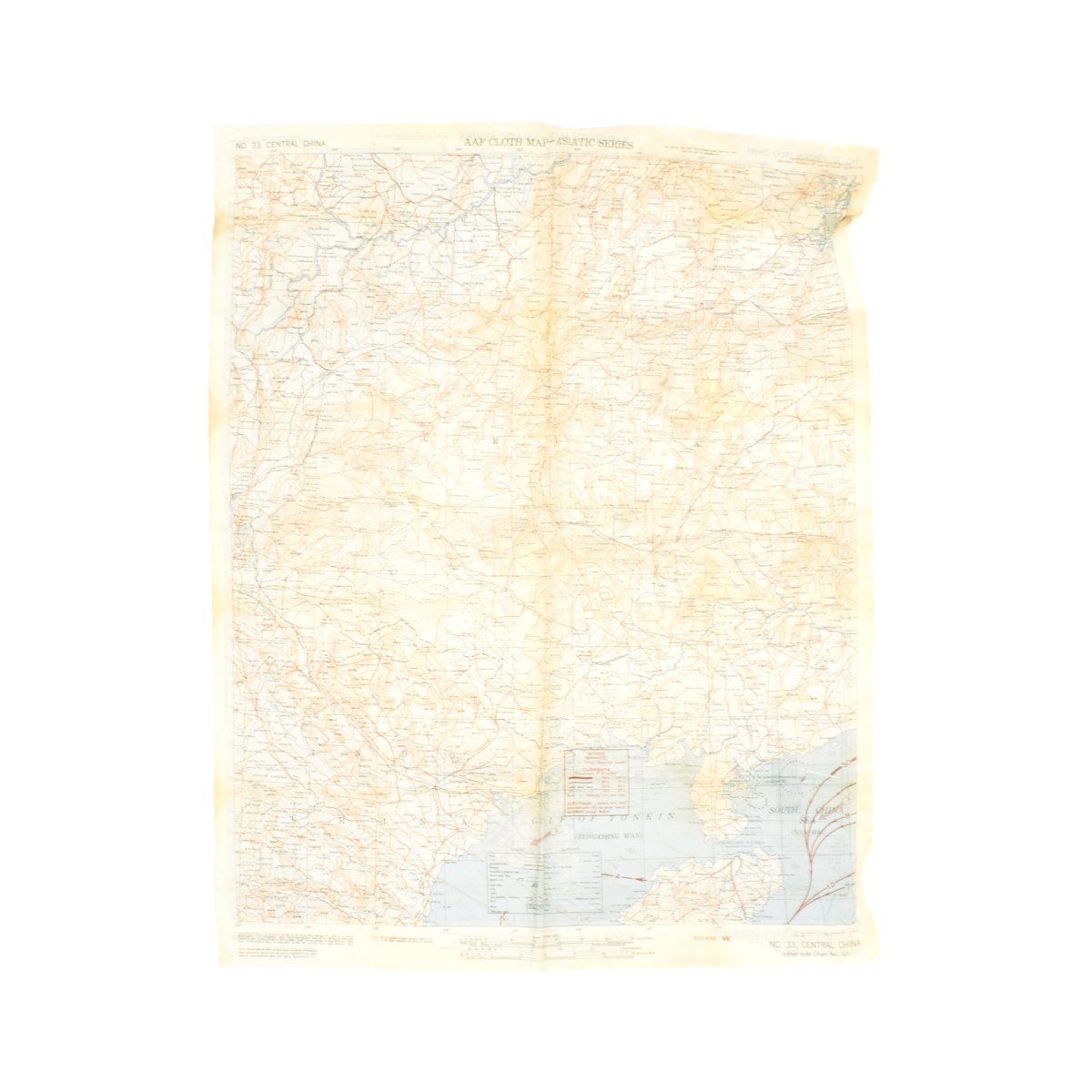The first reads AAF CLOTH MAP - ASIATIC SERIES - at the top center and titled: NO. 32, FRENCH INDO CHINA the reverse reads B>NO. 33, CENTRAL CHINA