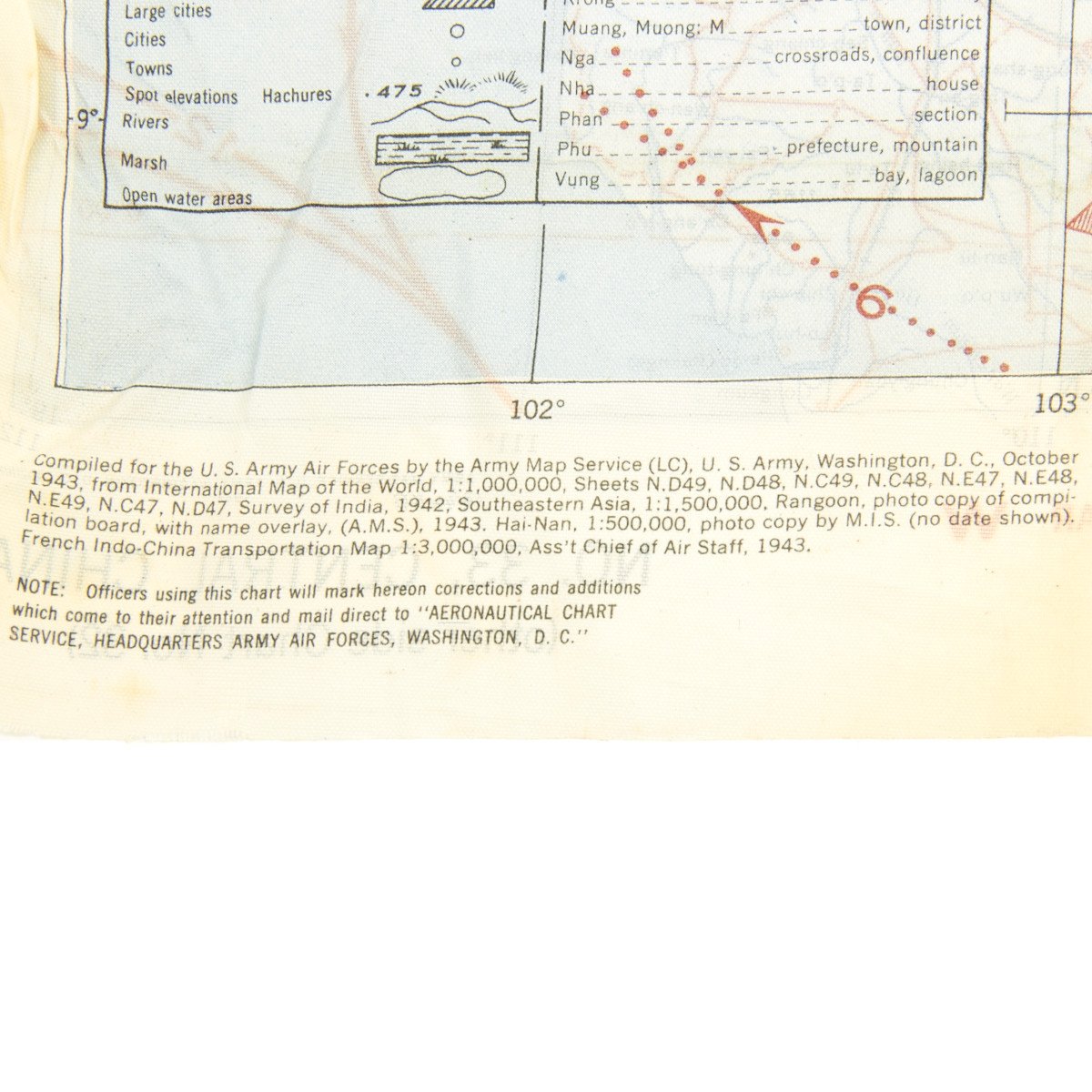 Original Item: Only One Pair Available. These are vintage, original, never-issued WWII Army Air Force silk Airman's 2-sided color "escape" cloth maps which are dated 1943. The war in the Pacific was raging ultimatley drawing closer to a nuclear response and Japan’s unconditional surrender.