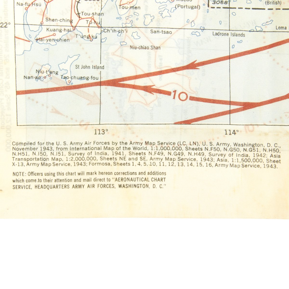 Compiled for the U.S. Army Air Forces by the Army Map Service and dated 1943At the time this chart was produced our understanding of the jet stream was rudimentary. High altitude wind currents are shown though not in as much detail as a modern chart/map. Our B-17 and B-25 pilots and crews learned that there were some very strong air currents aloft when their aircraft's times to targets took much longer than anticipated and the return trips went faster. This chart/map reflects the limited knowledge of the time but was a tremendous help to the pilots and crews nonetheless.