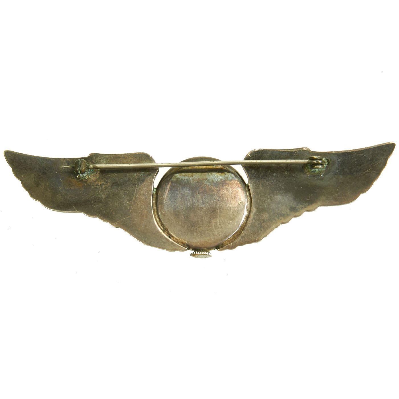 Anyone trained in flight operations was authorized to wear this badge, including pilots, bombardiers, navigators, flight engineers, radio men and gunners. The badge was also awarded to certain ground personnel at the discretion of their commanding officer. Non-crewmembers eligible for the badge were individuals with flying status such as aircraft maintenance supervisors and technical inspectors. These wings measure 3" across are marked STERLING on the reverse. Pin back (pin back, hook close, complete).