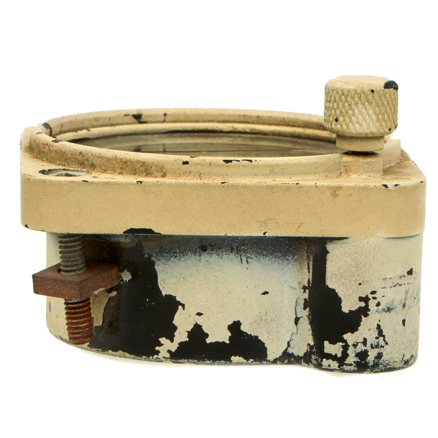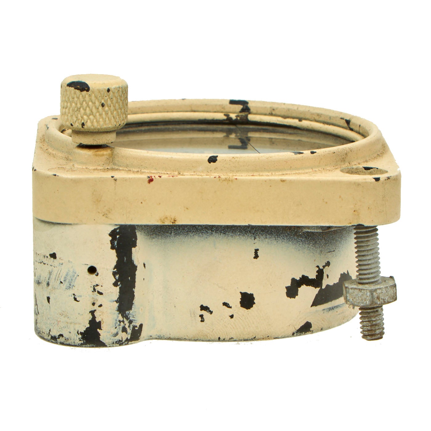 Original Item: Only One Available. Made by the Waltham Watch Company during World War Two for the United States Army Air Forces or Navy. The Cal. 22s movement is an 8-day 9-jewel mechanical type. The dial is 1-7/8" and is made of bakelite with a short winding knob. The movement is excellent, and the clock runs perfectly. The bakelite housing still retains about 75% of its original white paint with the original paint on the clock face hands, numbers and tack marks though they have faded due to age. The glass dial cover has unfortunately cracked. The markings on the back have faded and can barely be seen, but Waltham Watch Co can still be read at the bottom. This is still an amazing piece of history that is worthy to any Naval or Airforce collection!