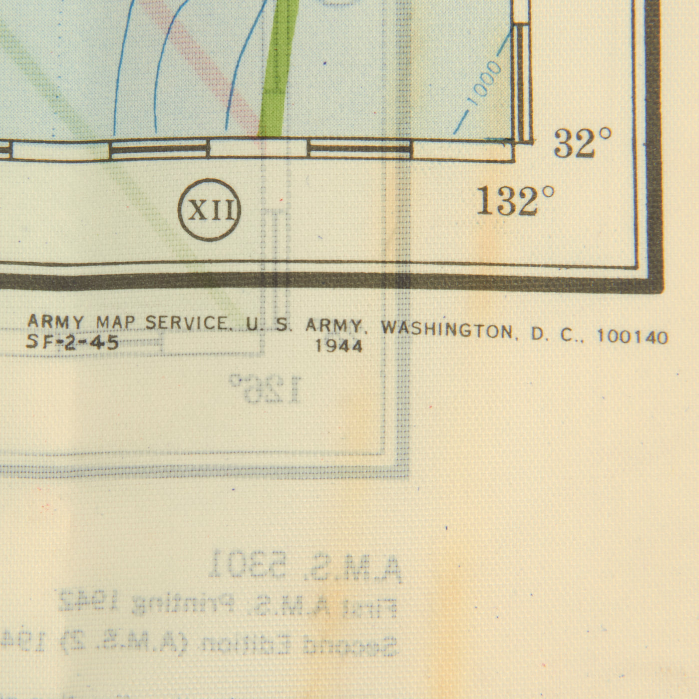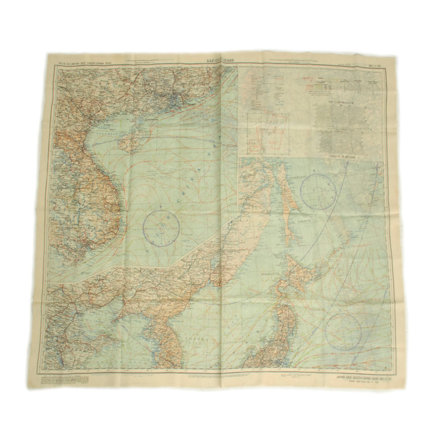 - 33 ½” x 30 ½” AAF Cloth Chart Japan and South China Seas / East China Sea (1945)