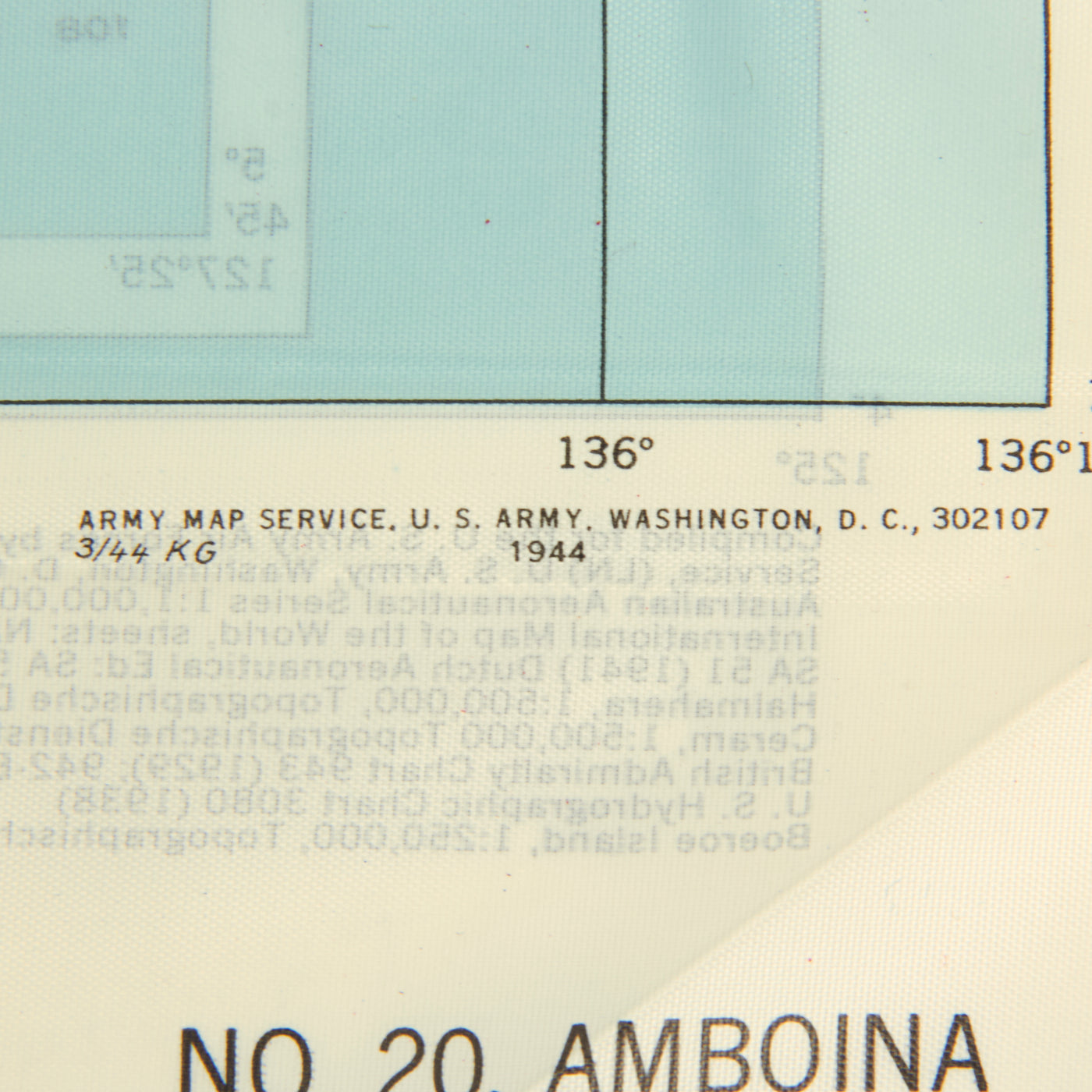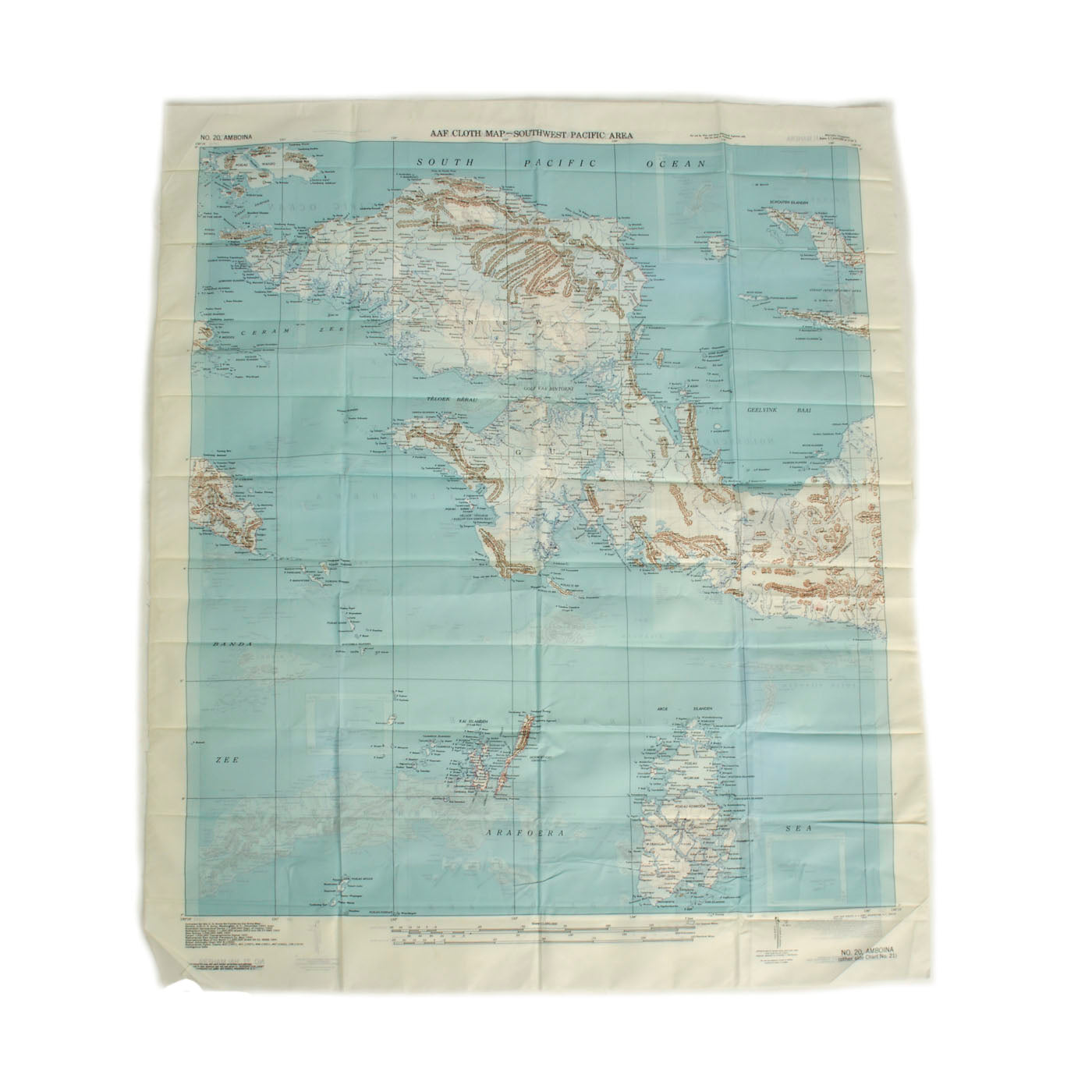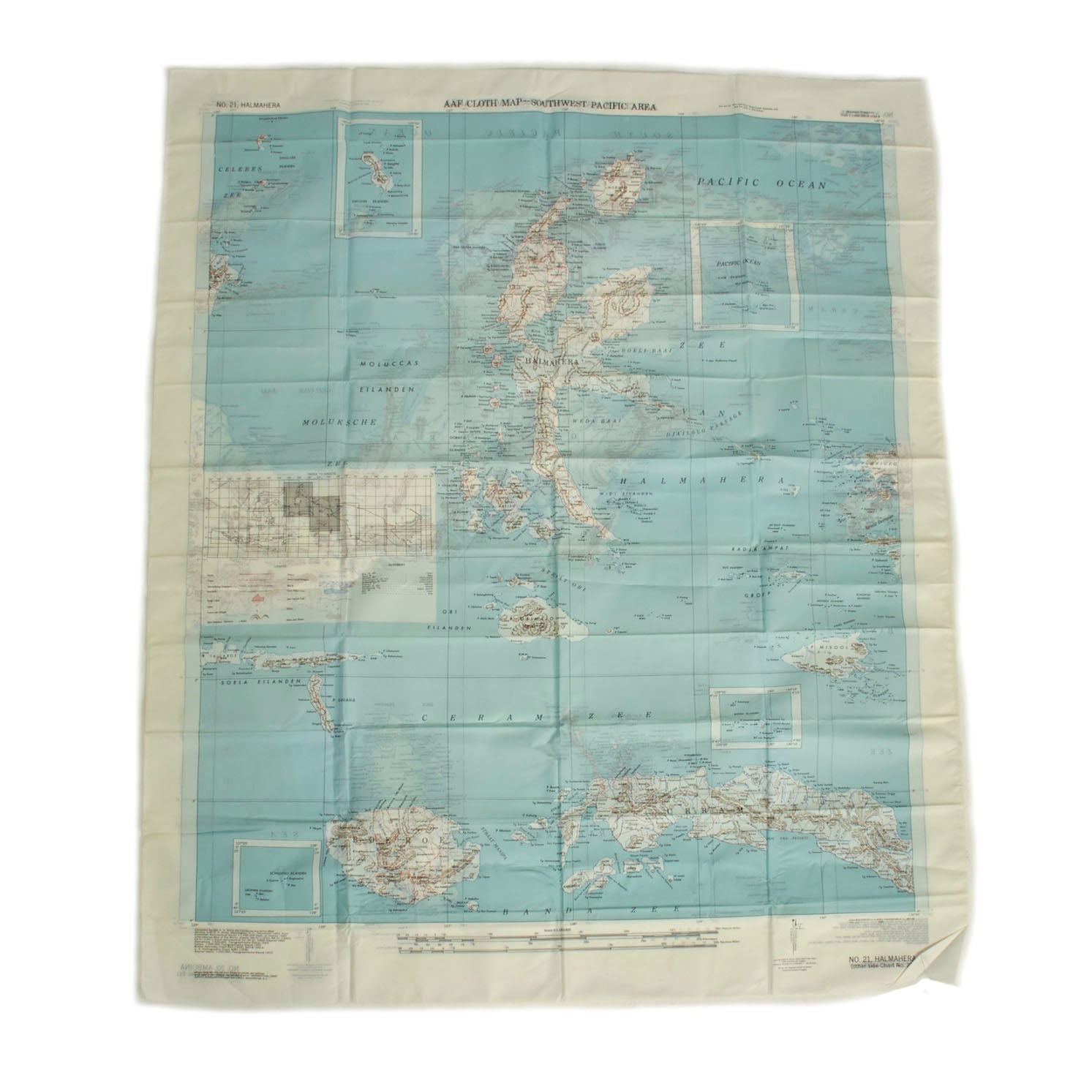 - 34 ½” x 28 ½” AAF Cloth Map - Southwest Pacific Area (1944): Amboina and Halmahera.